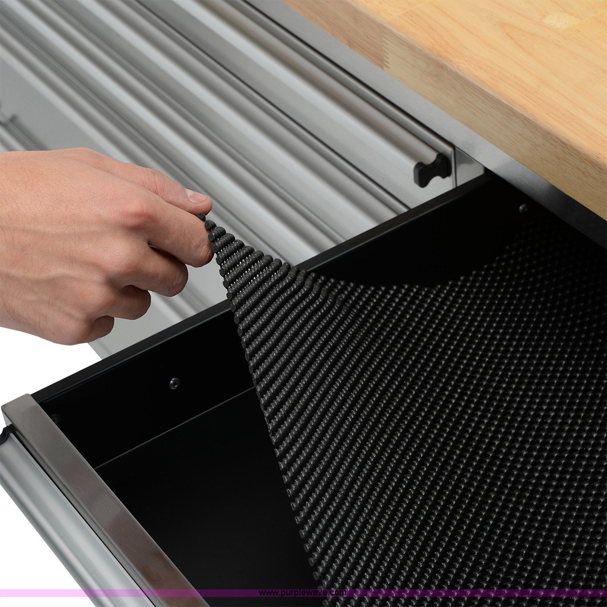 Purple Wave is selling a used Tools in Minnesota. This item is a Toolbox with the following: 96"W, (24) drawers, Master lock slider drawers, Full extension drawer slides, 100 lbs capacity, Full length aluminum drawer pulls, Anti-slip drawer liners, Anti-slip pads, 430 stainless steel construction, Anti finger print finish, 1.5" thick hardwood work surface, Dual side handles, 2,400 lbs total capacity, Unused