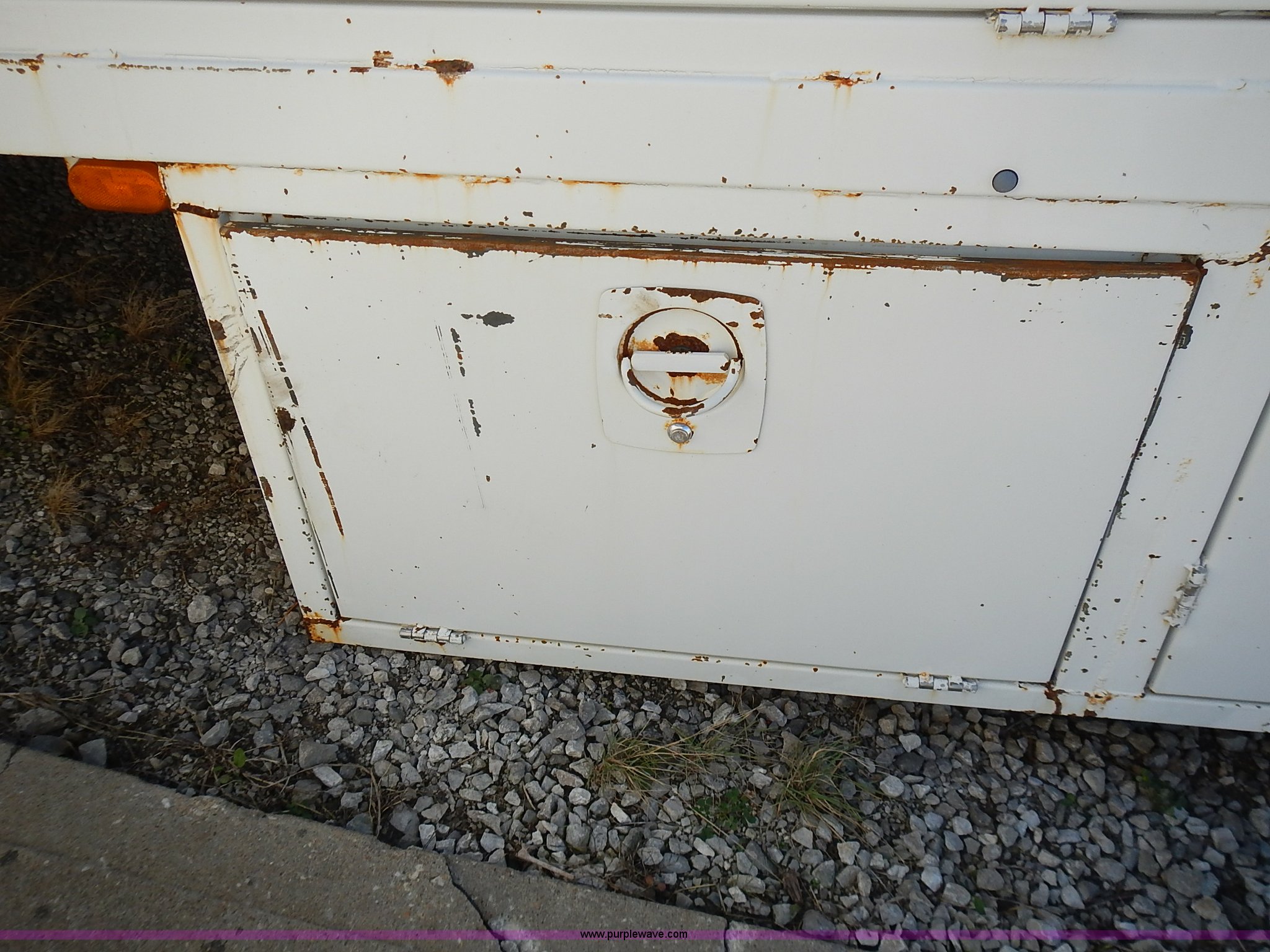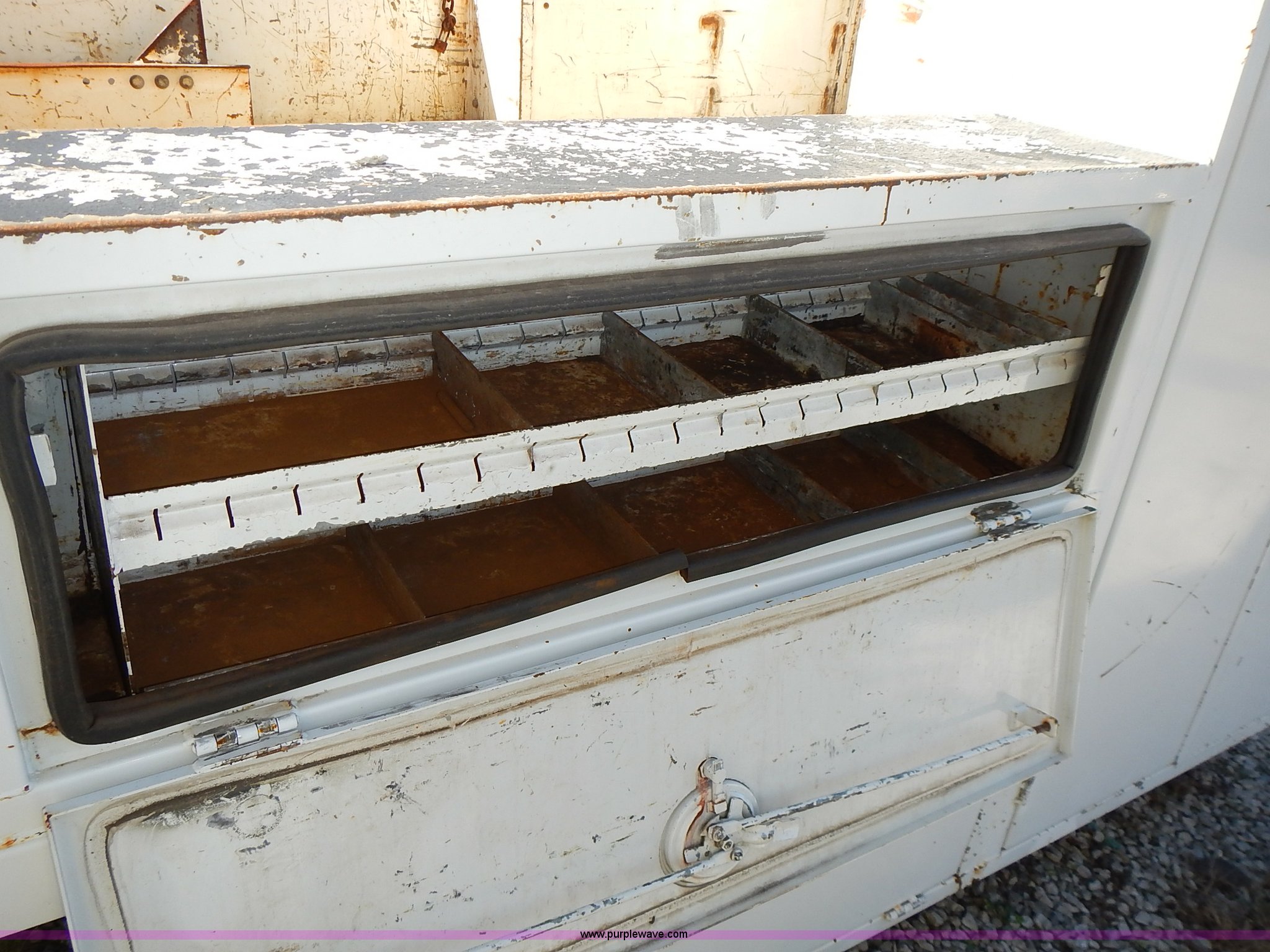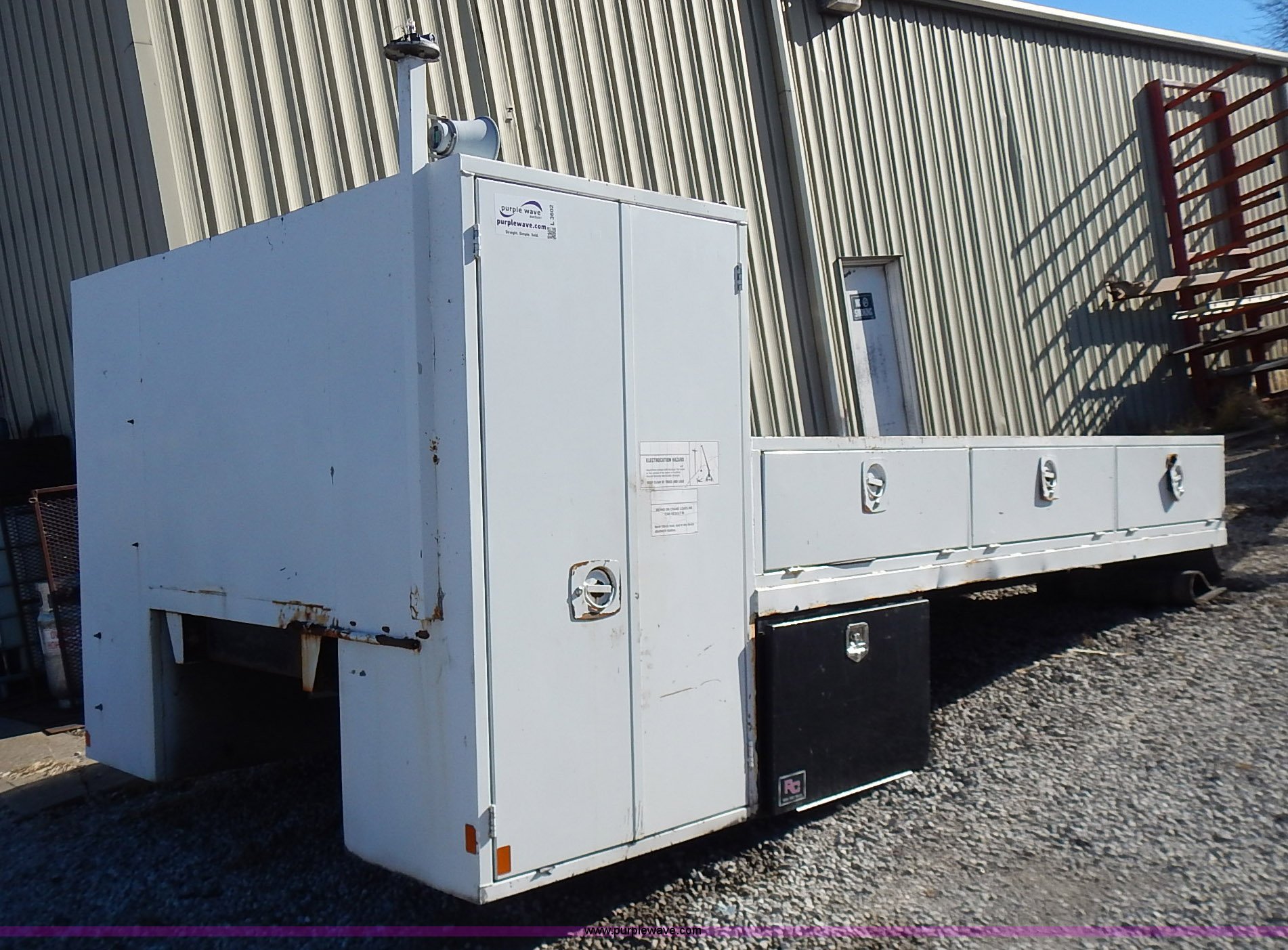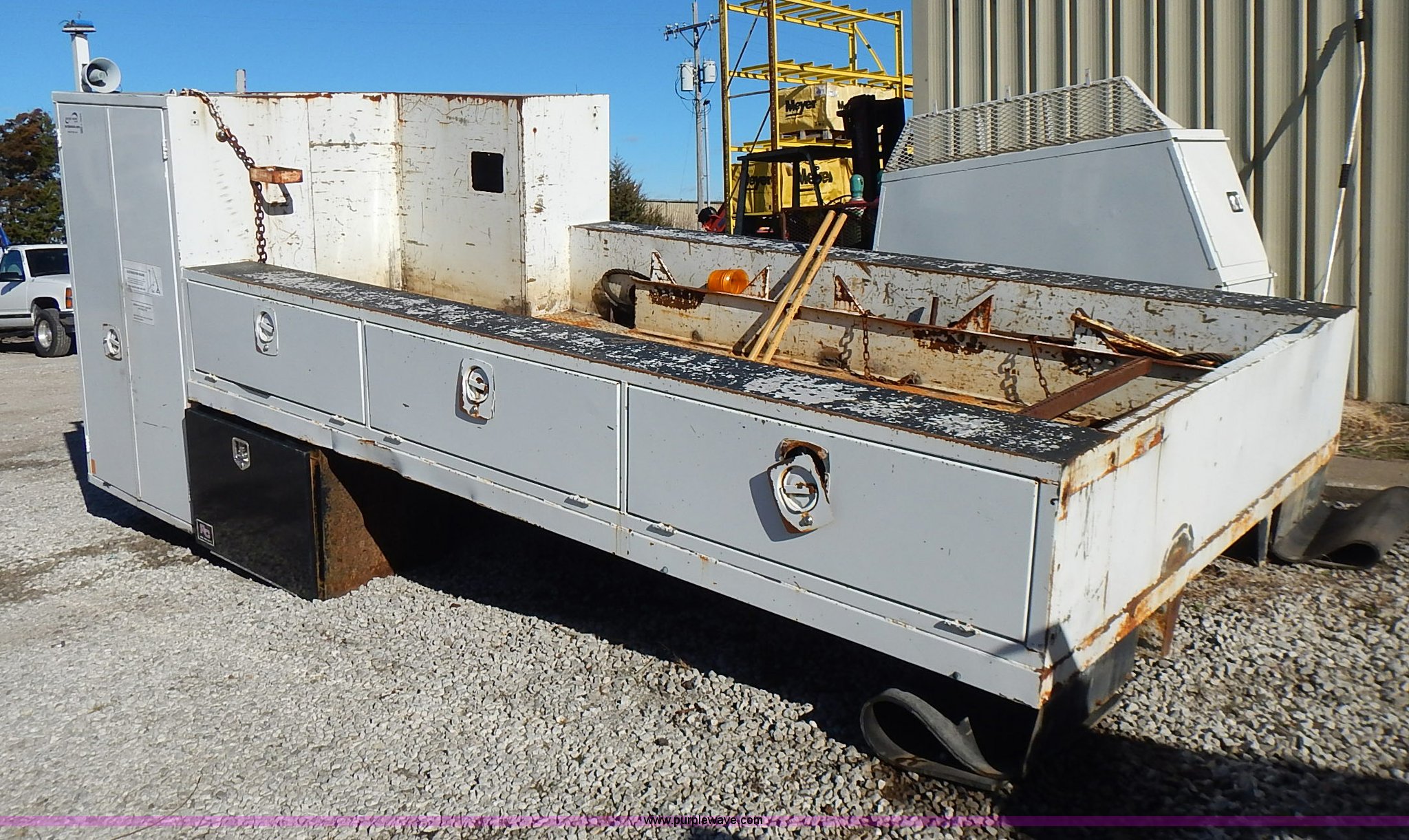 Purple Wave is selling a used Automotive Parts or Acces. in Kansas. This item is a RC service bed with the following: 15.5'L x 8'W, (10) compartments, Hydraulic oil tank, Strobe and speaker, No bumper, Rust