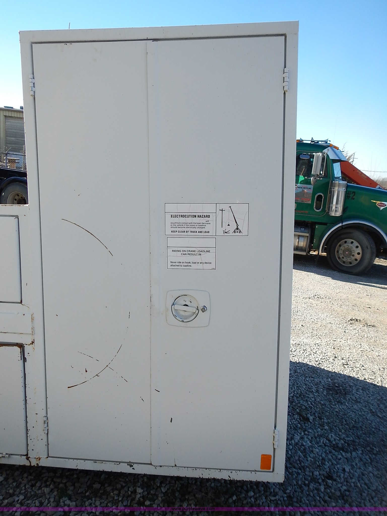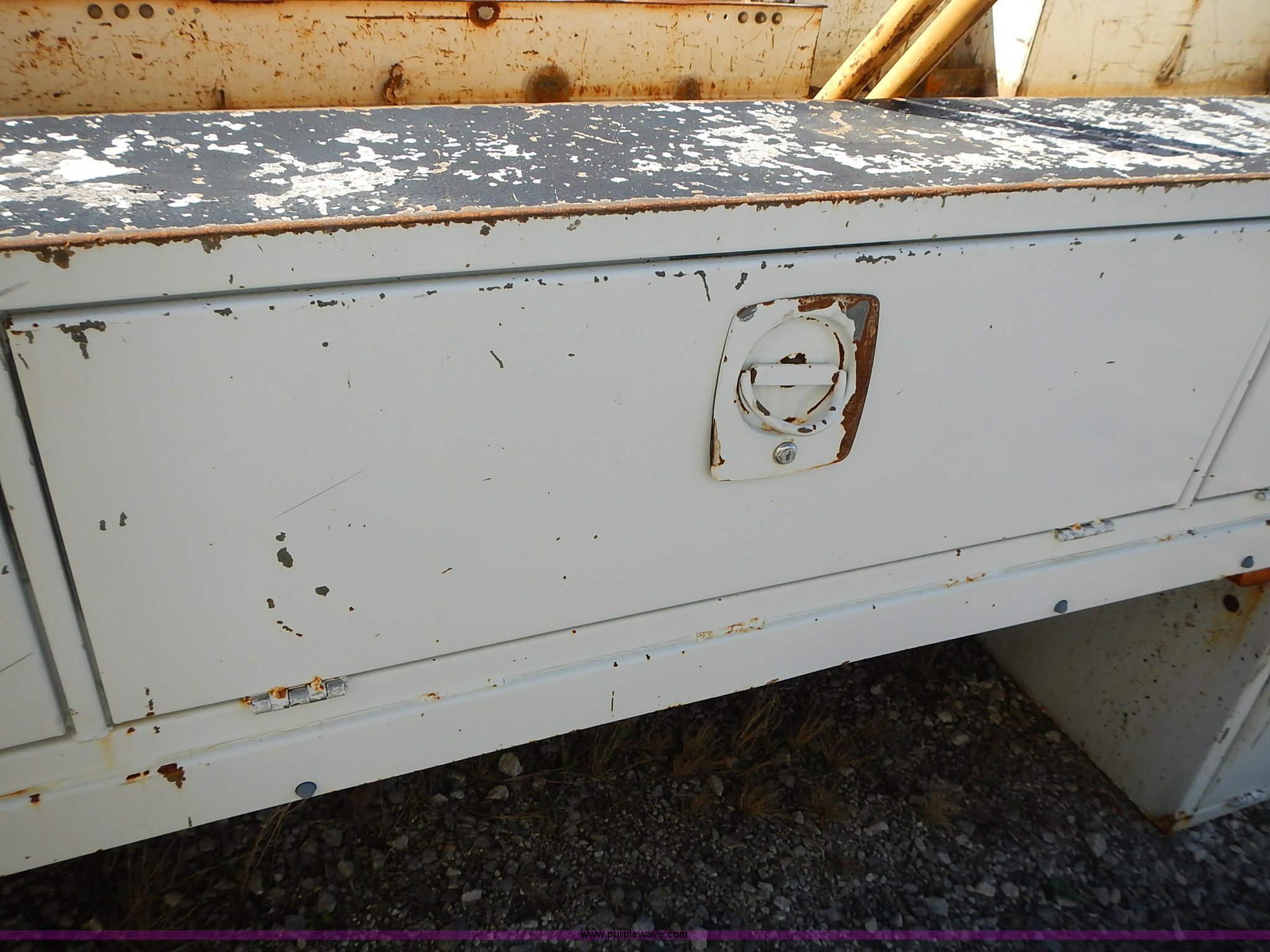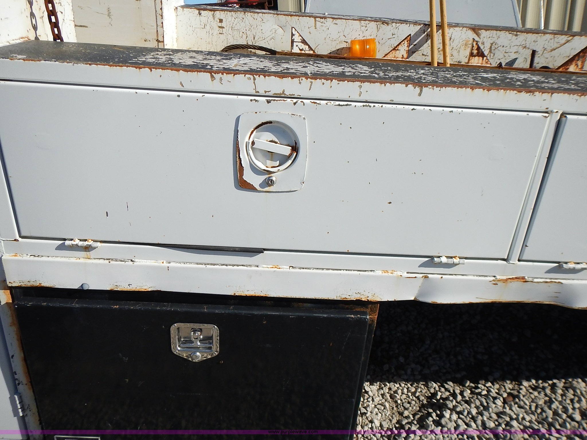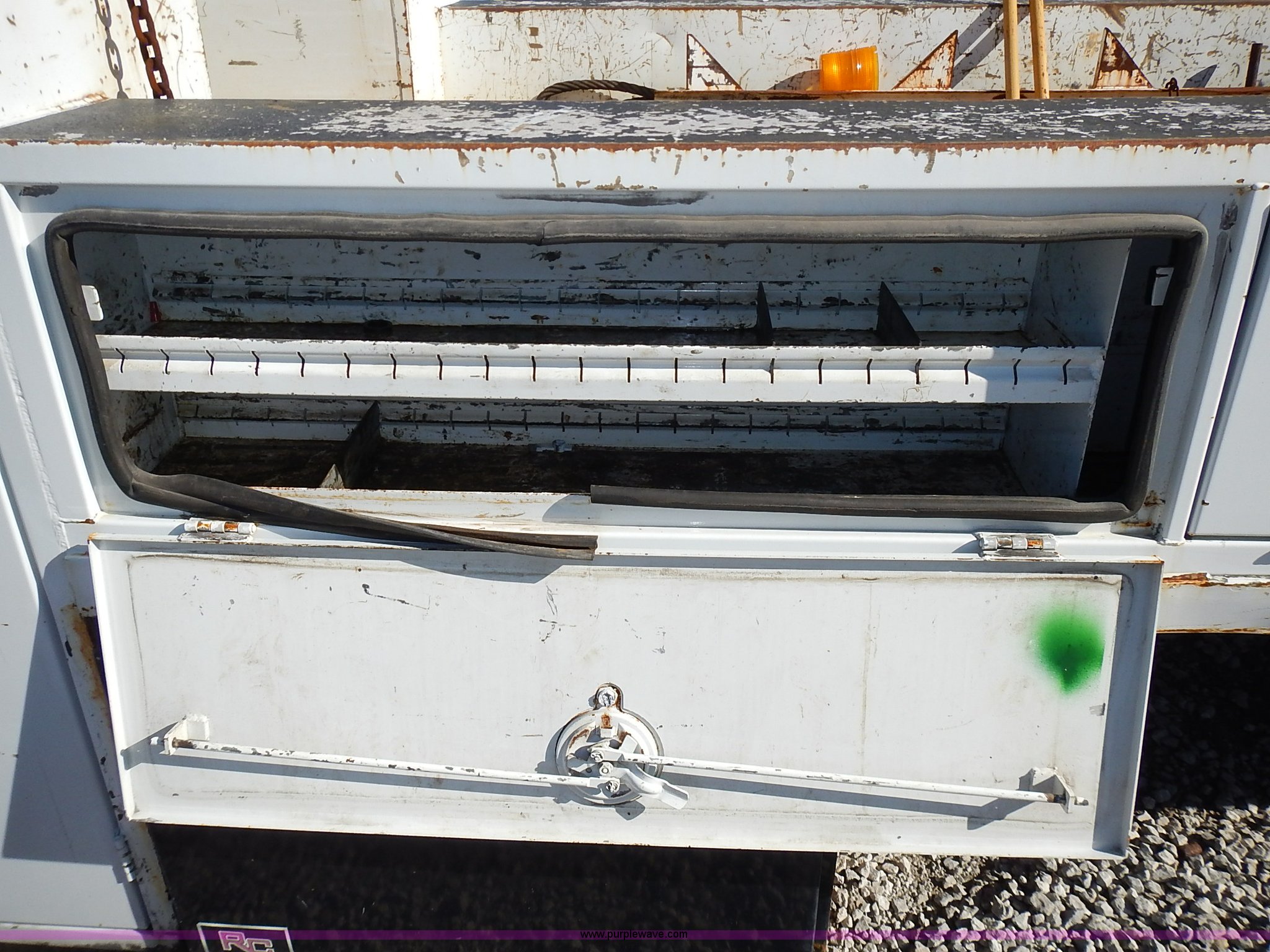 Purple Wave is selling a used Automotive Parts or Acces. in Kansas. This item is a RC service bed with the following: 15.5'L x 8'W, (10) compartments, Hydraulic oil tank, Strobe and speaker, No bumper, Rust