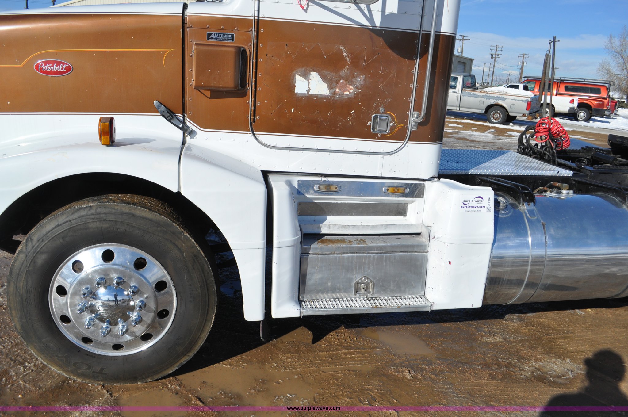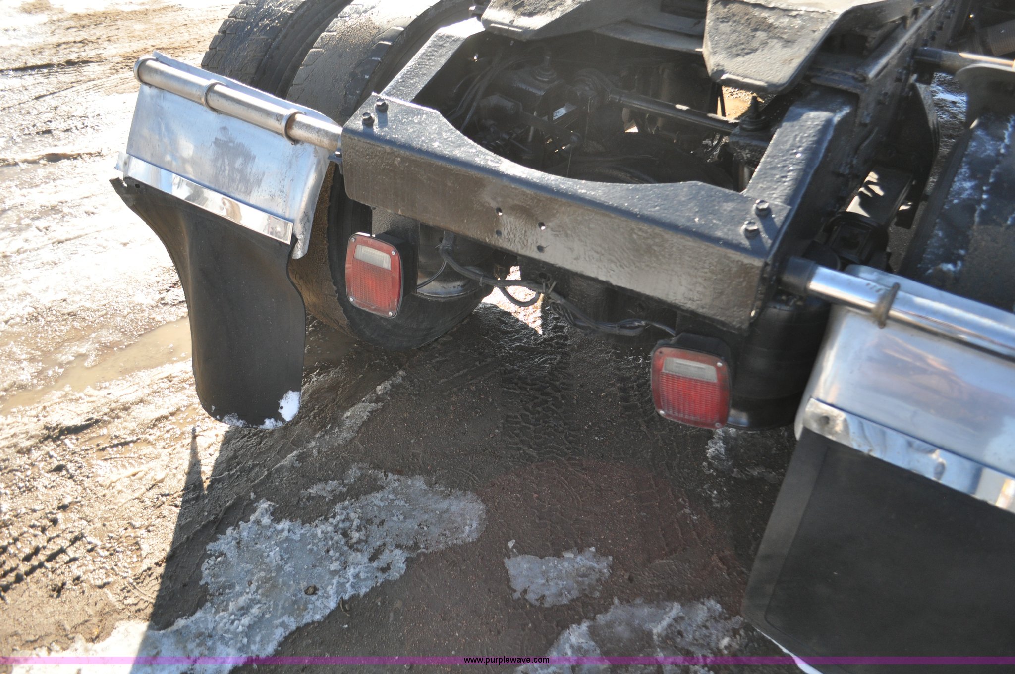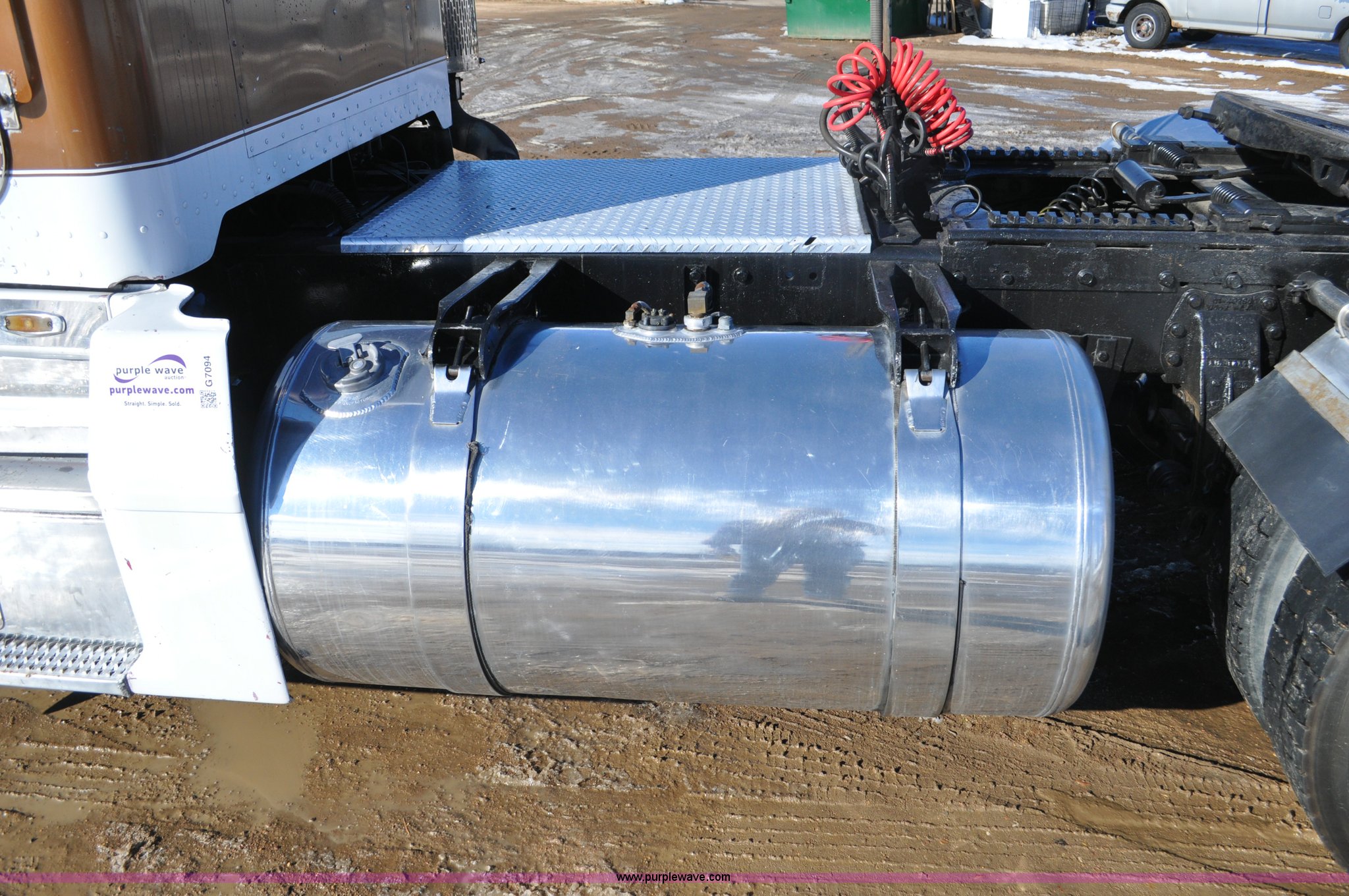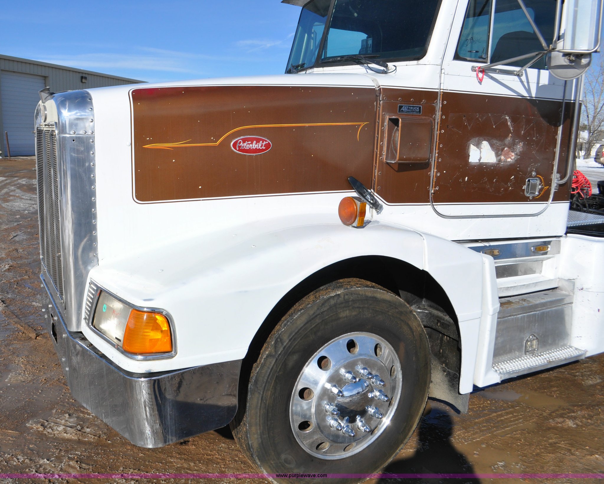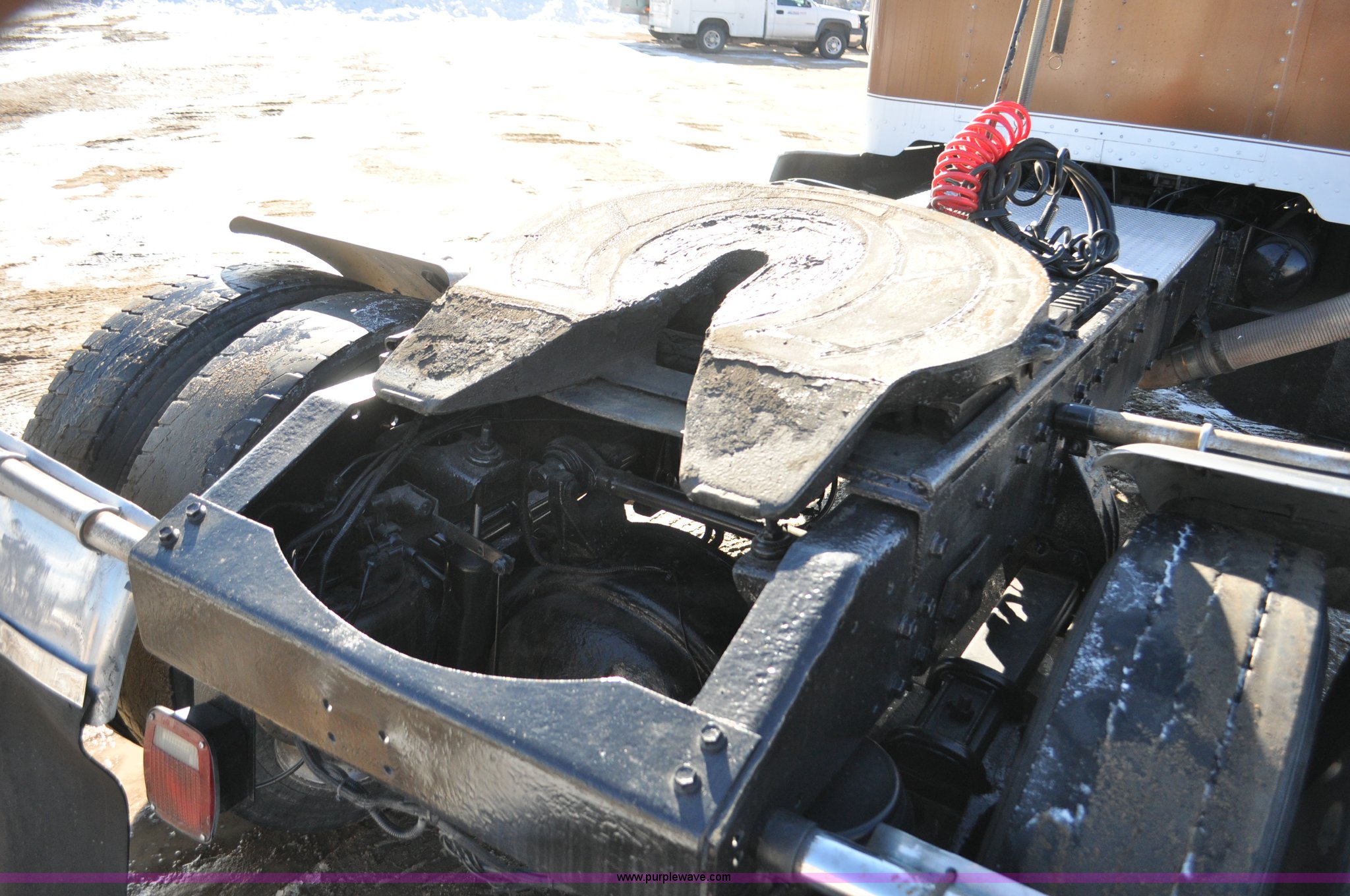 Purple Wave is selling a used Truck Chassis in Colorado. This item is a 1992 Peterbilt 377 truck cab and chassis with the following: 1,197,210 miles on odometer, Caterpillar 3406 14.6L L6 turbo diesel engine, 415 HP, Eaton Fuller eight speed manual transmission, Single axle, Inter-axle differential lock, Heat, Air suspension seat, Dump valves, Front tow hooks, Single rear exhaust stack, Aluminum deck plate, Air operated sliding fifth wheel plate, Stainless steel quarter fenders, Mud flaps, Air suspension, Air brakes, 11R24.5 tires, GVWR 34,700 lbs, FAWR 12,000 lbs, RAWR 22,700 lbs, 174" wheel base, Hood and grill damage