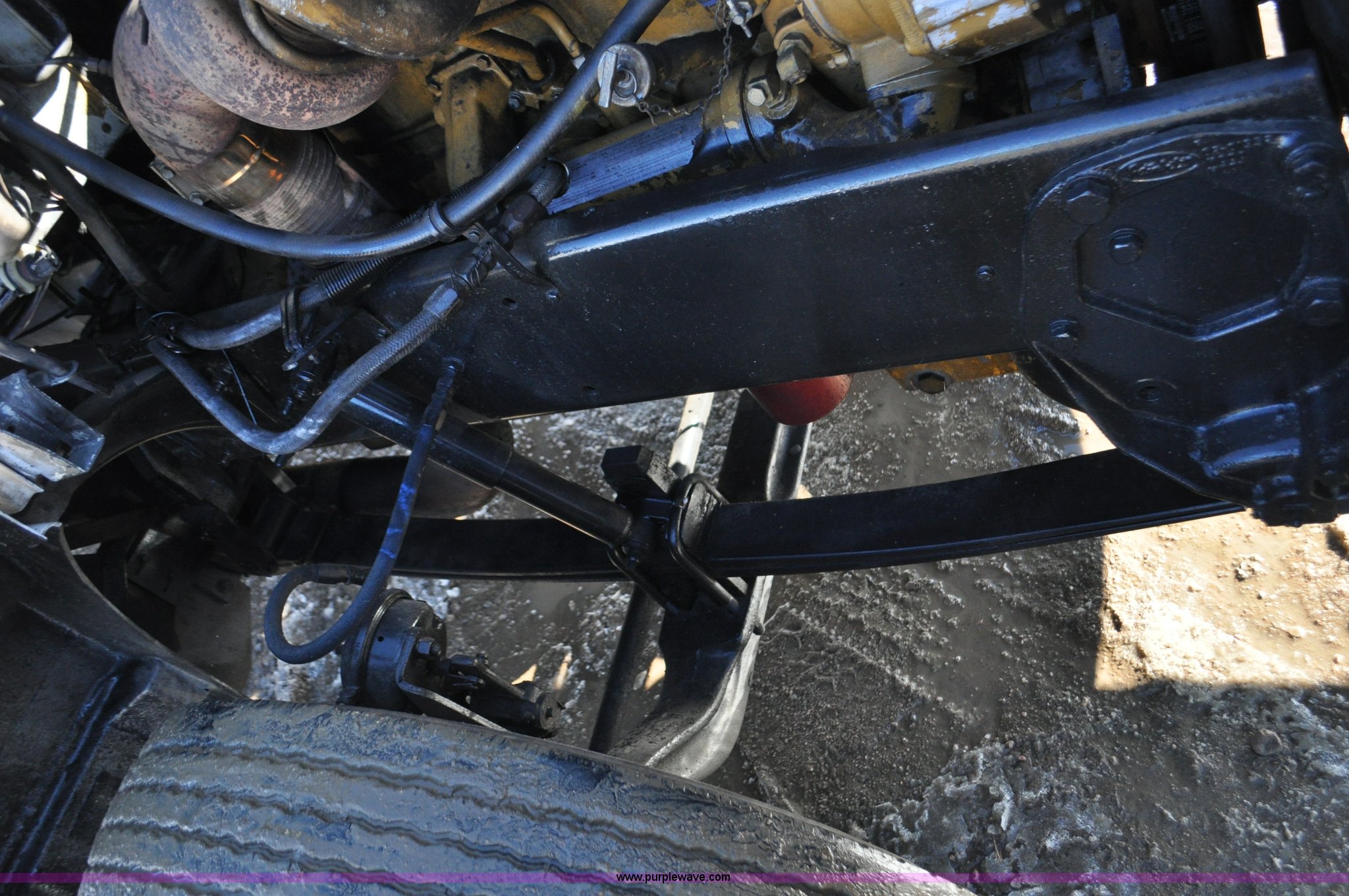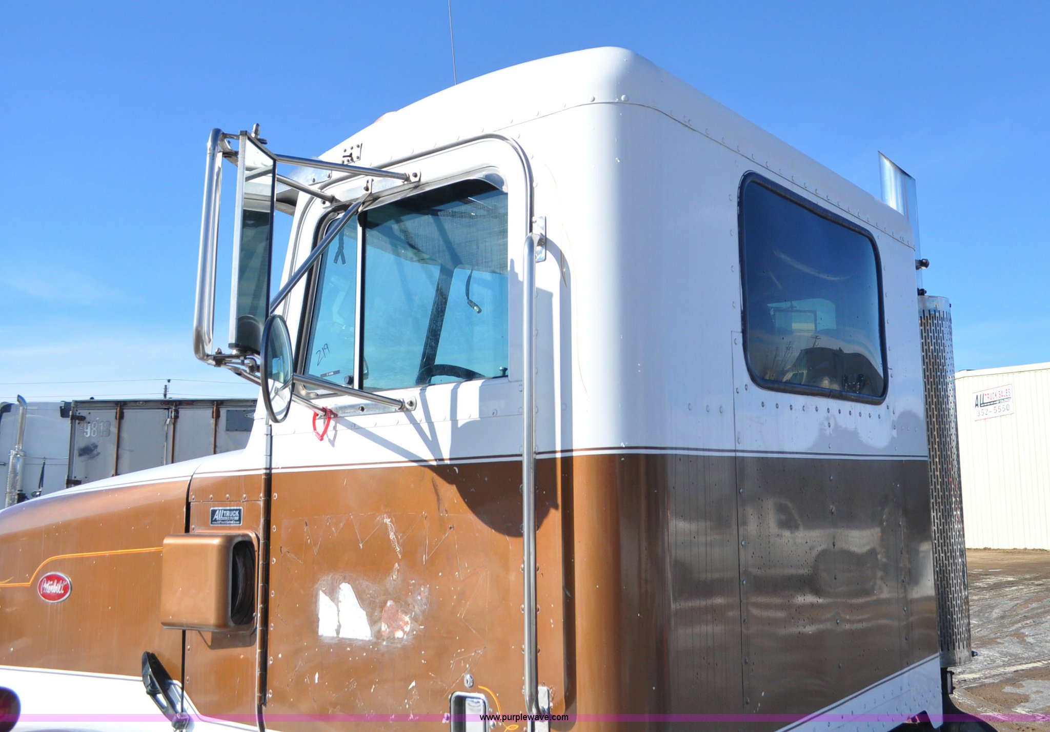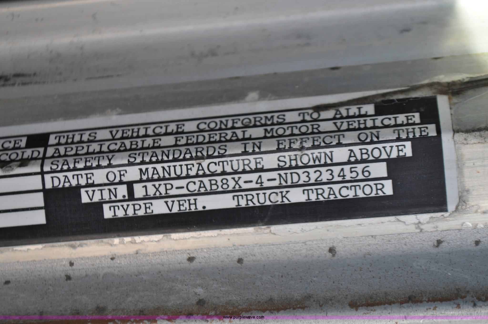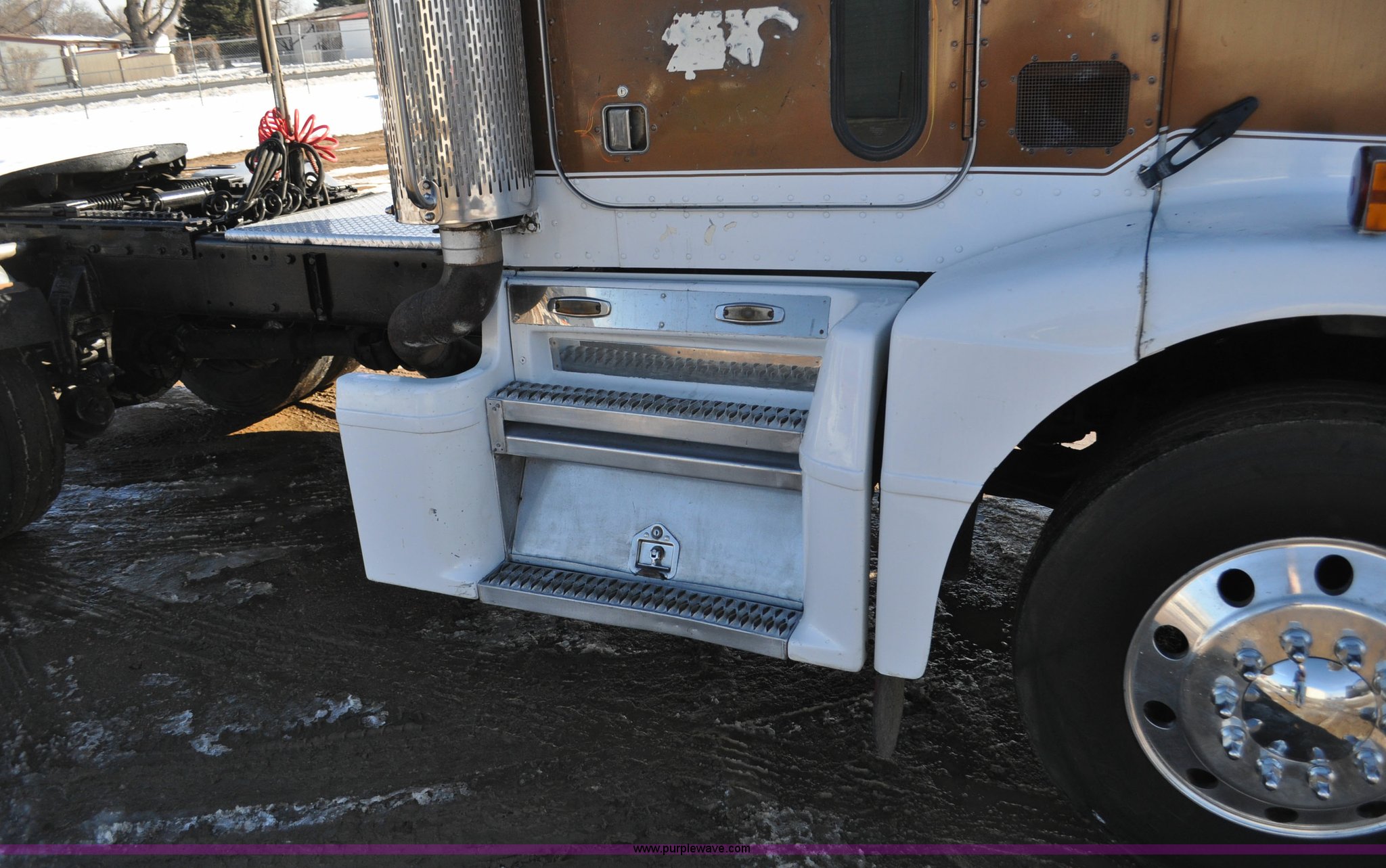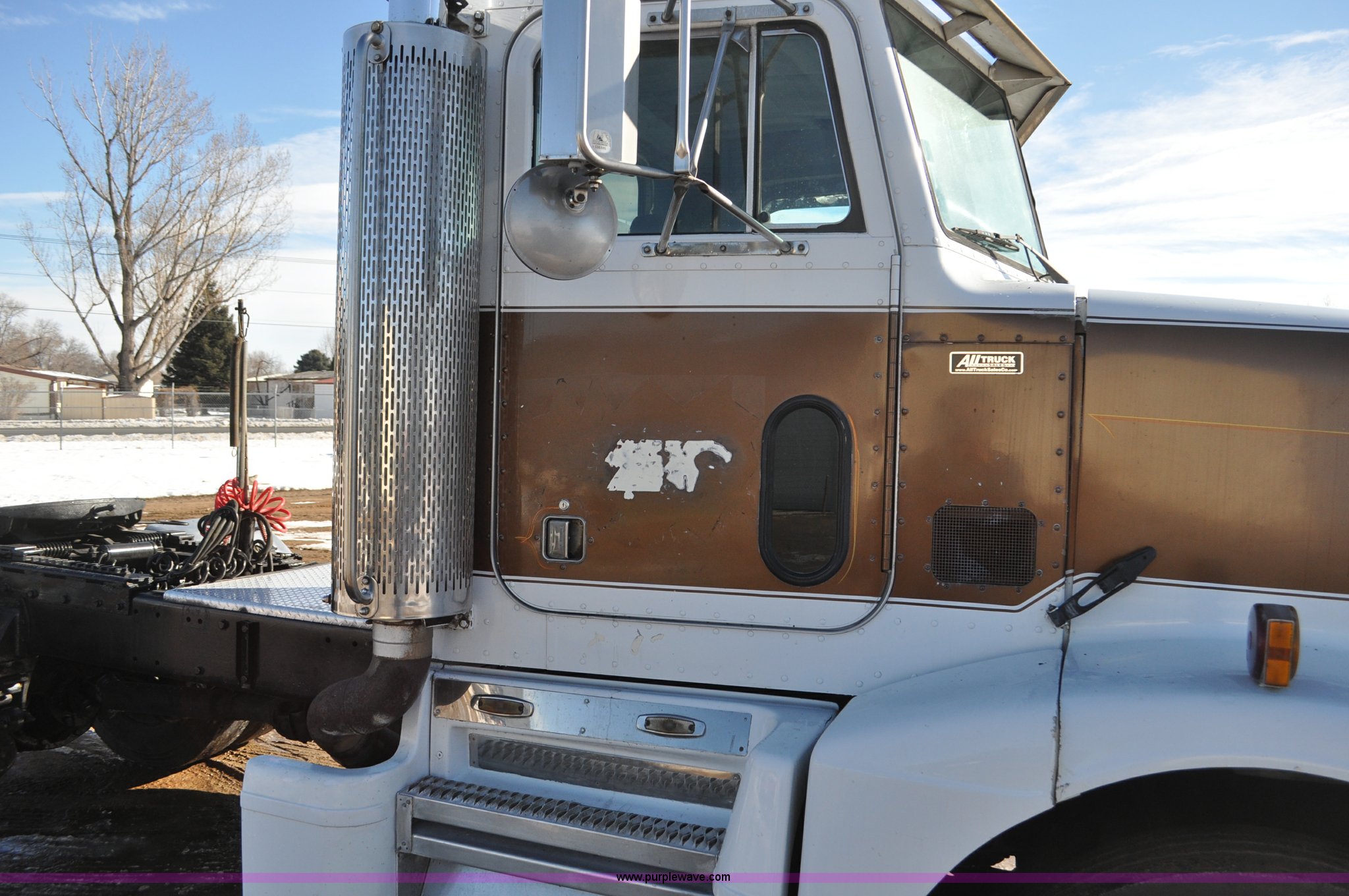 Purple Wave is selling a used Truck Chassis in Colorado. This item is a 1992 Peterbilt 377 truck cab and chassis with the following: 1,197,210 miles on odometer, Caterpillar 3406 14.6L L6 turbo diesel engine, 415 HP, Eaton Fuller eight speed manual transmission, Single axle, Inter-axle differential lock, Heat, Air suspension seat, Dump valves, Front tow hooks, Single rear exhaust stack, Aluminum deck plate, Air operated sliding fifth wheel plate, Stainless steel quarter fenders, Mud flaps, Air suspension, Air brakes, 11R24.5 tires, GVWR 34,700 lbs, FAWR 12,000 lbs, RAWR 22,700 lbs, 174" wheel base, Hood and grill damage