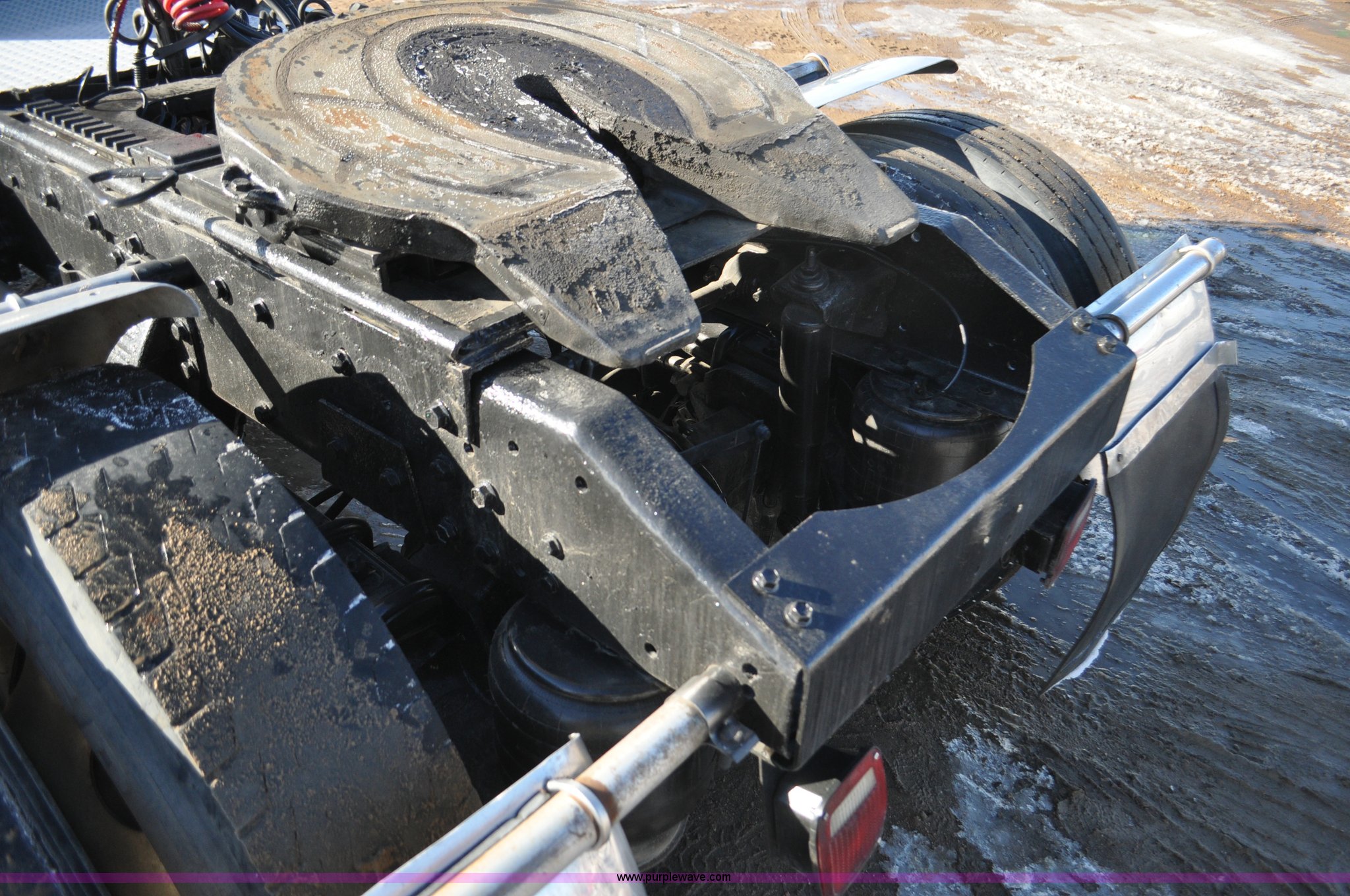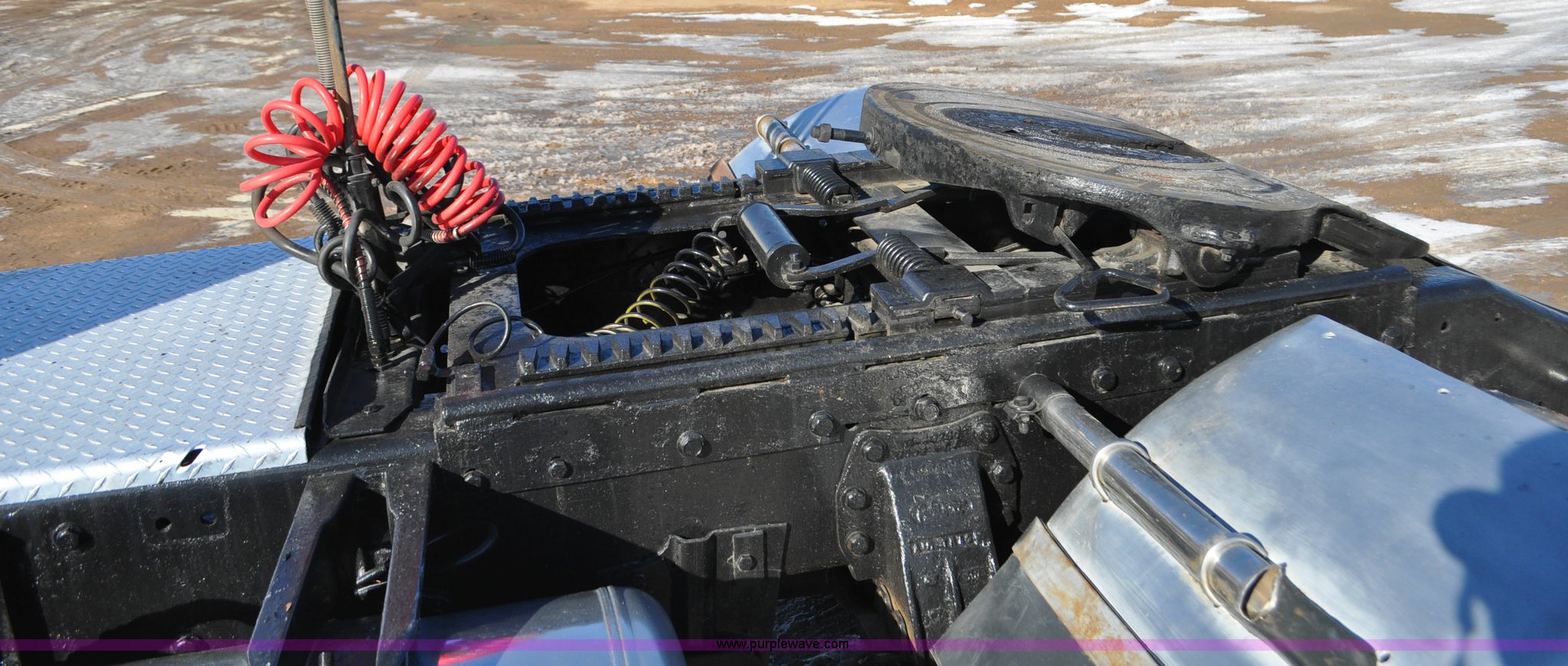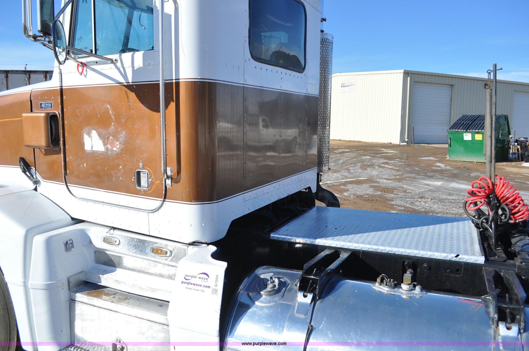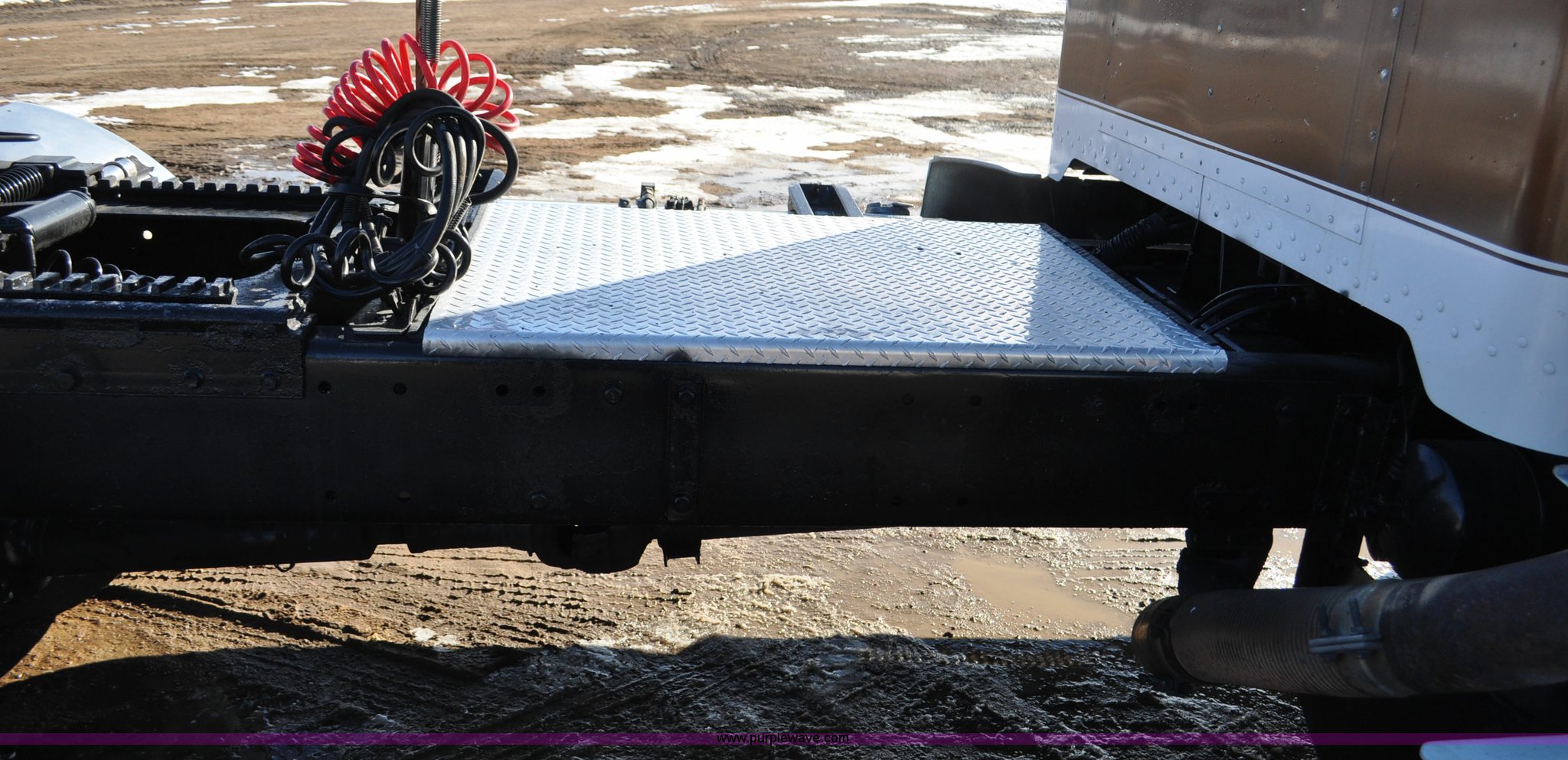 Purple Wave is selling a used Truck Chassis in Colorado. This item is a 1992 Peterbilt 377 truck cab and chassis with the following: 1,197,210 miles on odometer, Caterpillar 3406 14.6L L6 turbo diesel engine, 415 HP, Eaton Fuller eight speed manual transmission, Single axle, Inter-axle differential lock, Heat, Air suspension seat, Dump valves, Front tow hooks, Single rear exhaust stack, Aluminum deck plate, Air operated sliding fifth wheel plate, Stainless steel quarter fenders, Mud flaps, Air suspension, Air brakes, 11R24.5 tires, GVWR 34,700 lbs, FAWR 12,000 lbs, RAWR 22,700 lbs, 174" wheel base, Hood and grill damage