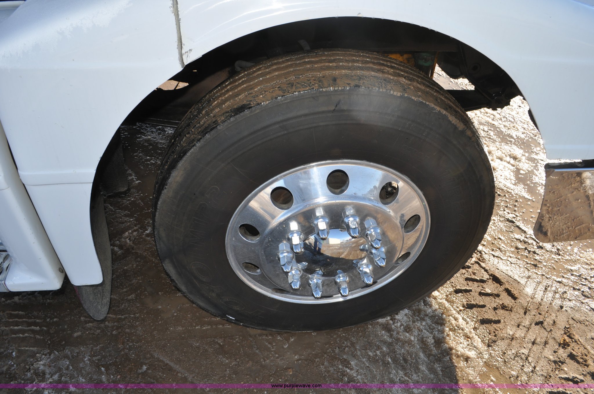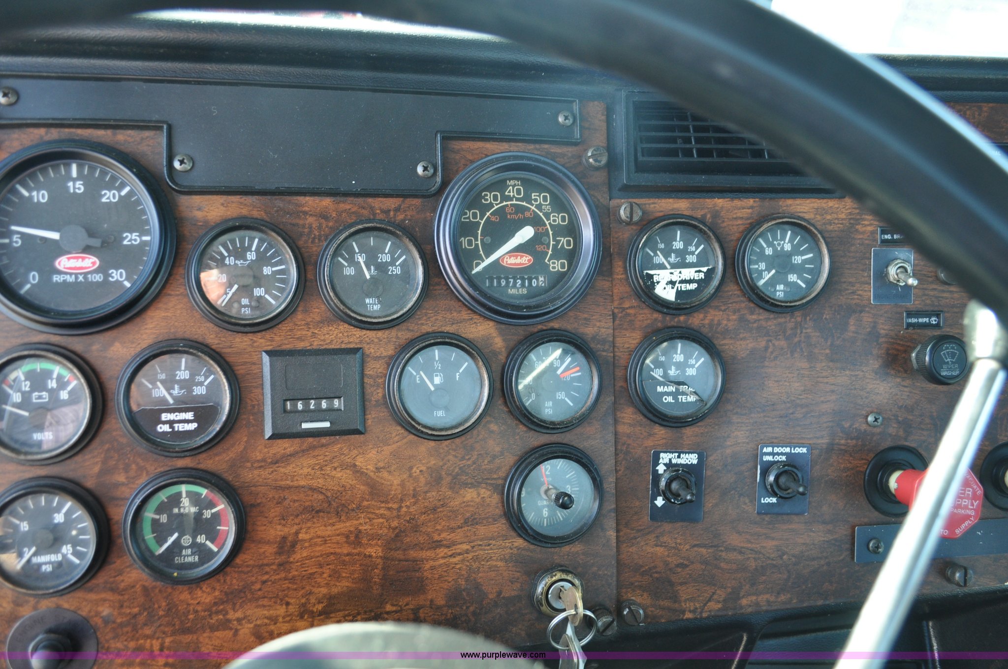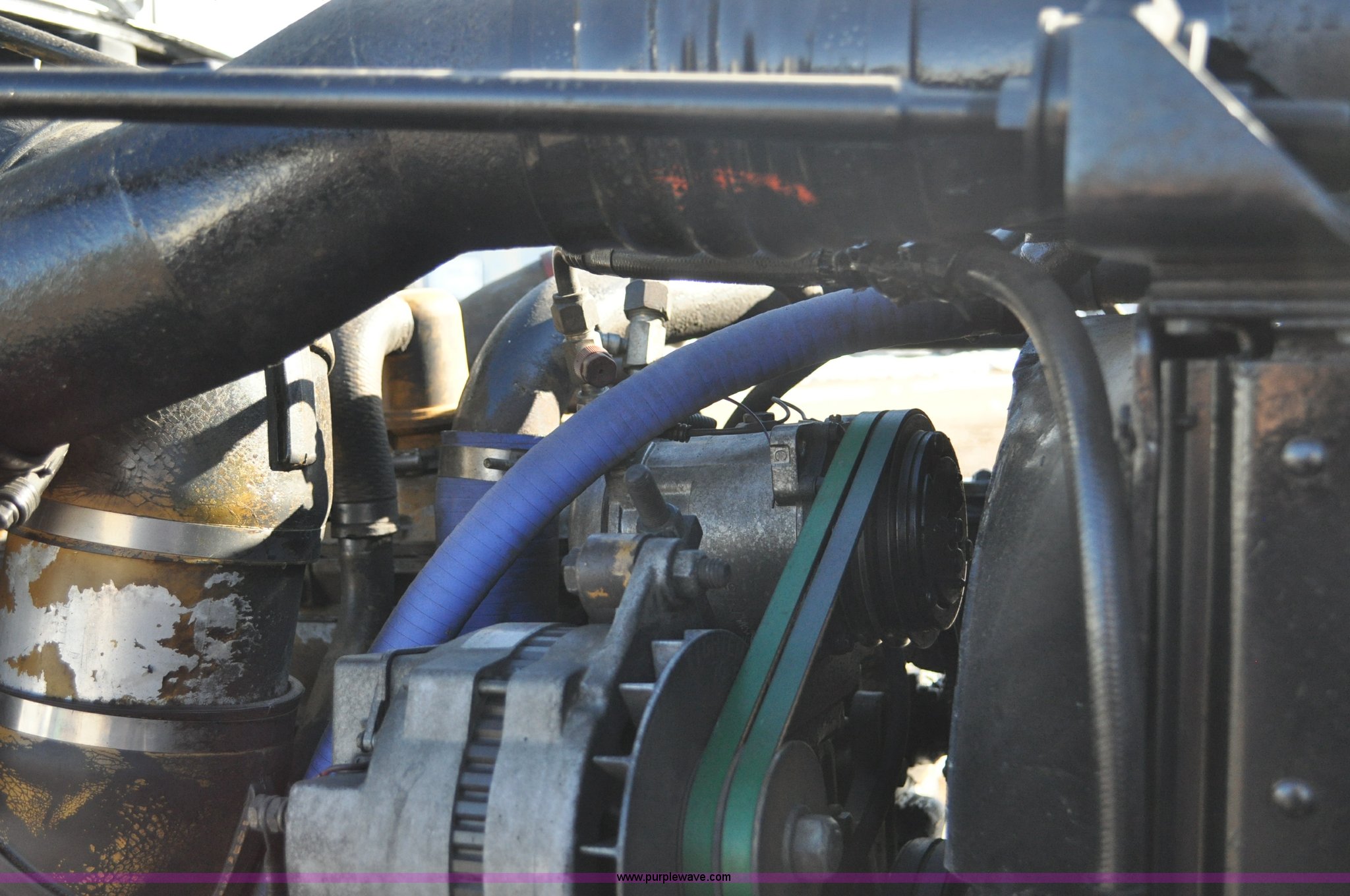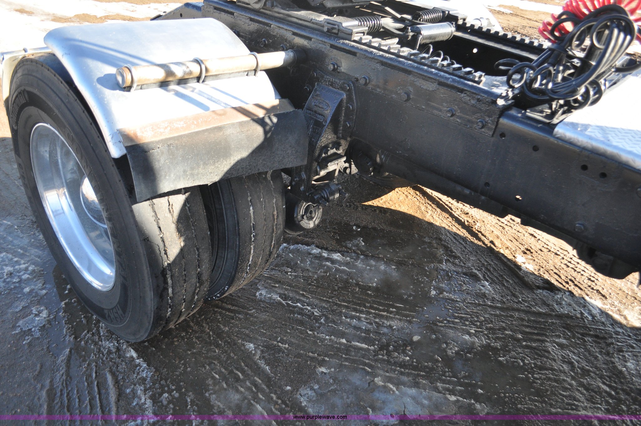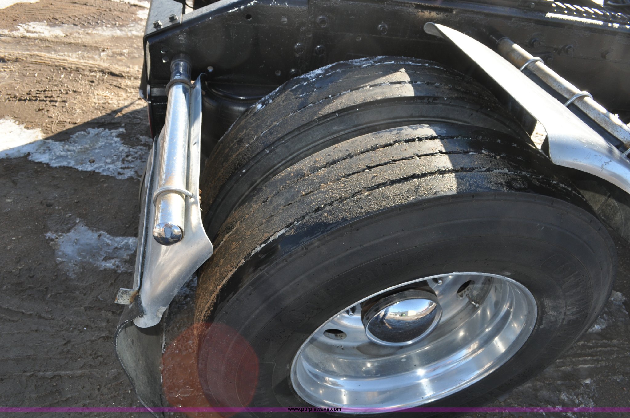 Purple Wave is selling a used Truck Chassis in Colorado. This item is a 1992 Peterbilt 377 truck cab and chassis with the following: 1,197,210 miles on odometer, Caterpillar 3406 14.6L L6 turbo diesel engine, 415 HP, Eaton Fuller eight speed manual transmission, Single axle, Inter-axle differential lock, Heat, Air suspension seat, Dump valves, Front tow hooks, Single rear exhaust stack, Aluminum deck plate, Air operated sliding fifth wheel plate, Stainless steel quarter fenders, Mud flaps, Air suspension, Air brakes, 11R24.5 tires, GVWR 34,700 lbs, FAWR 12,000 lbs, RAWR 22,700 lbs, 174" wheel base, Hood and grill damage