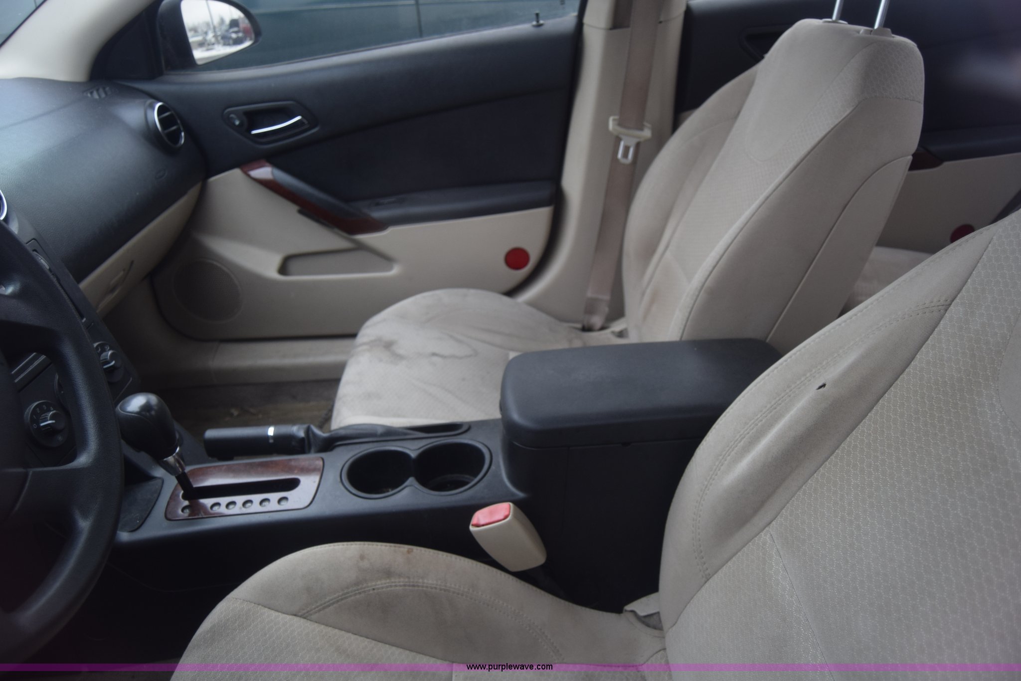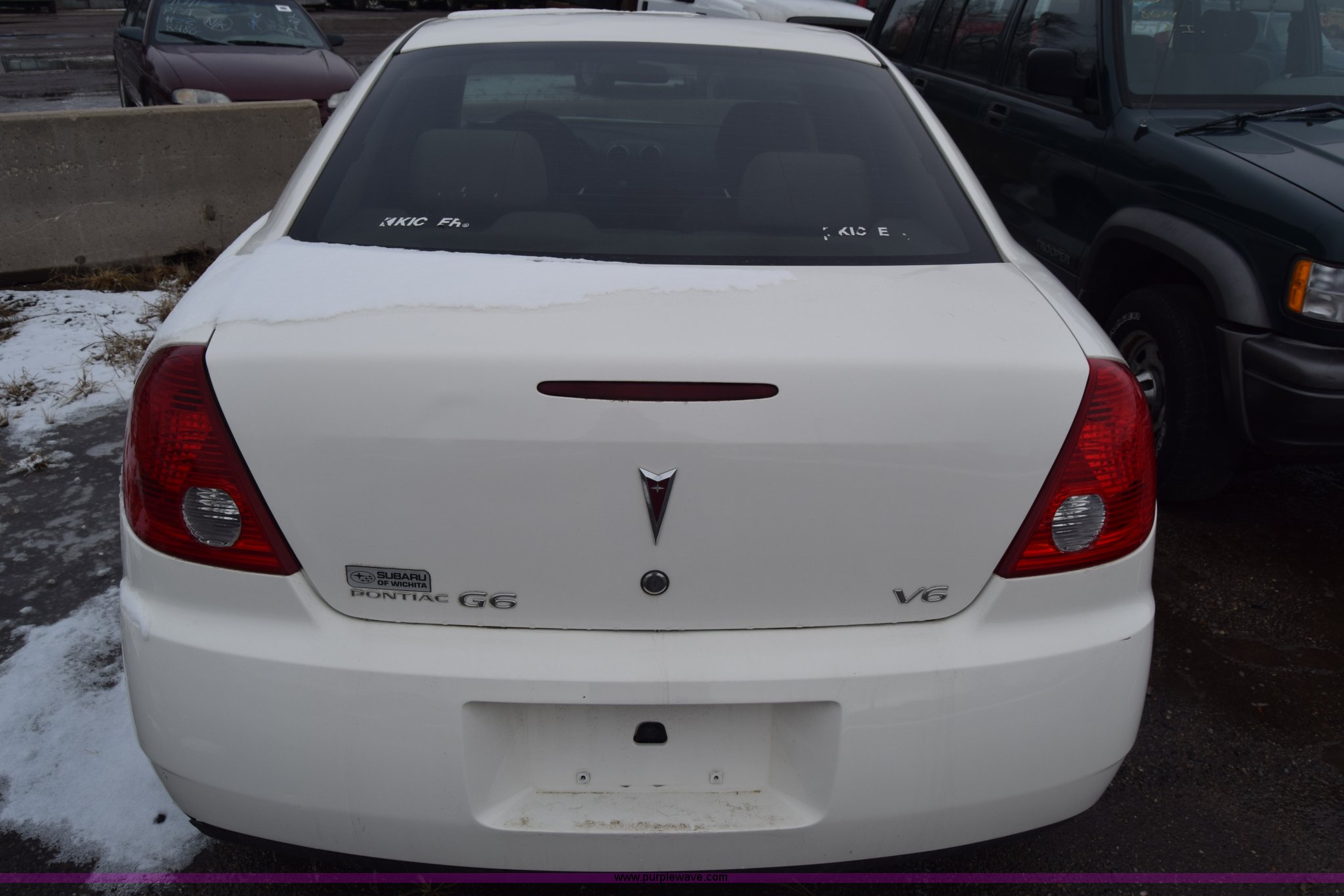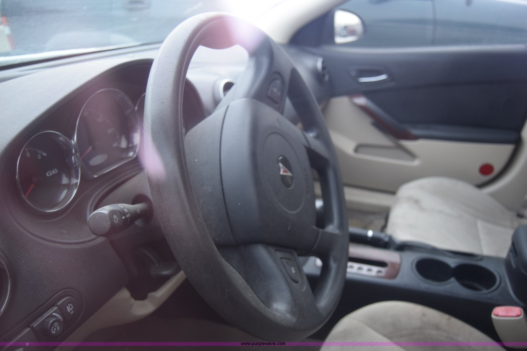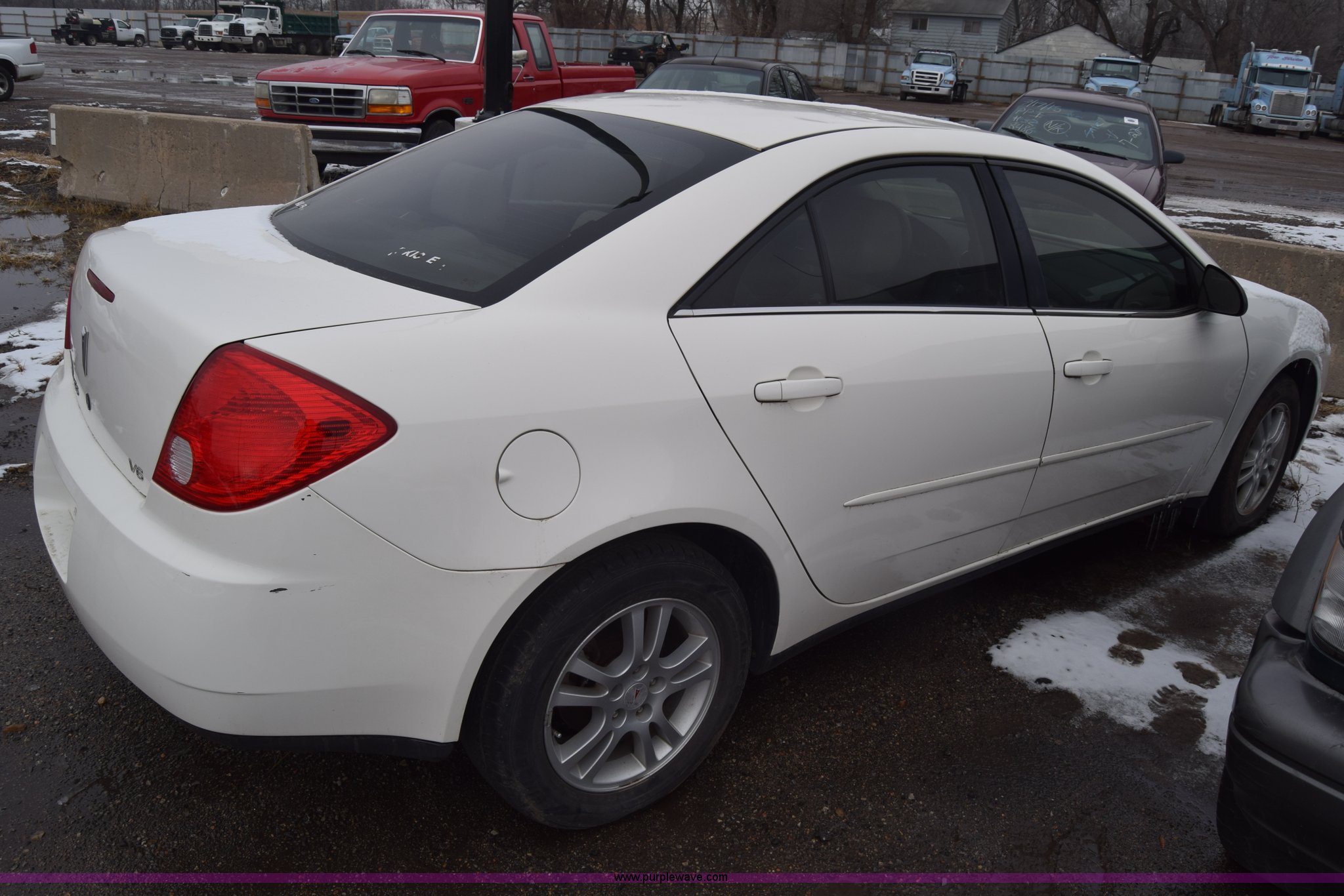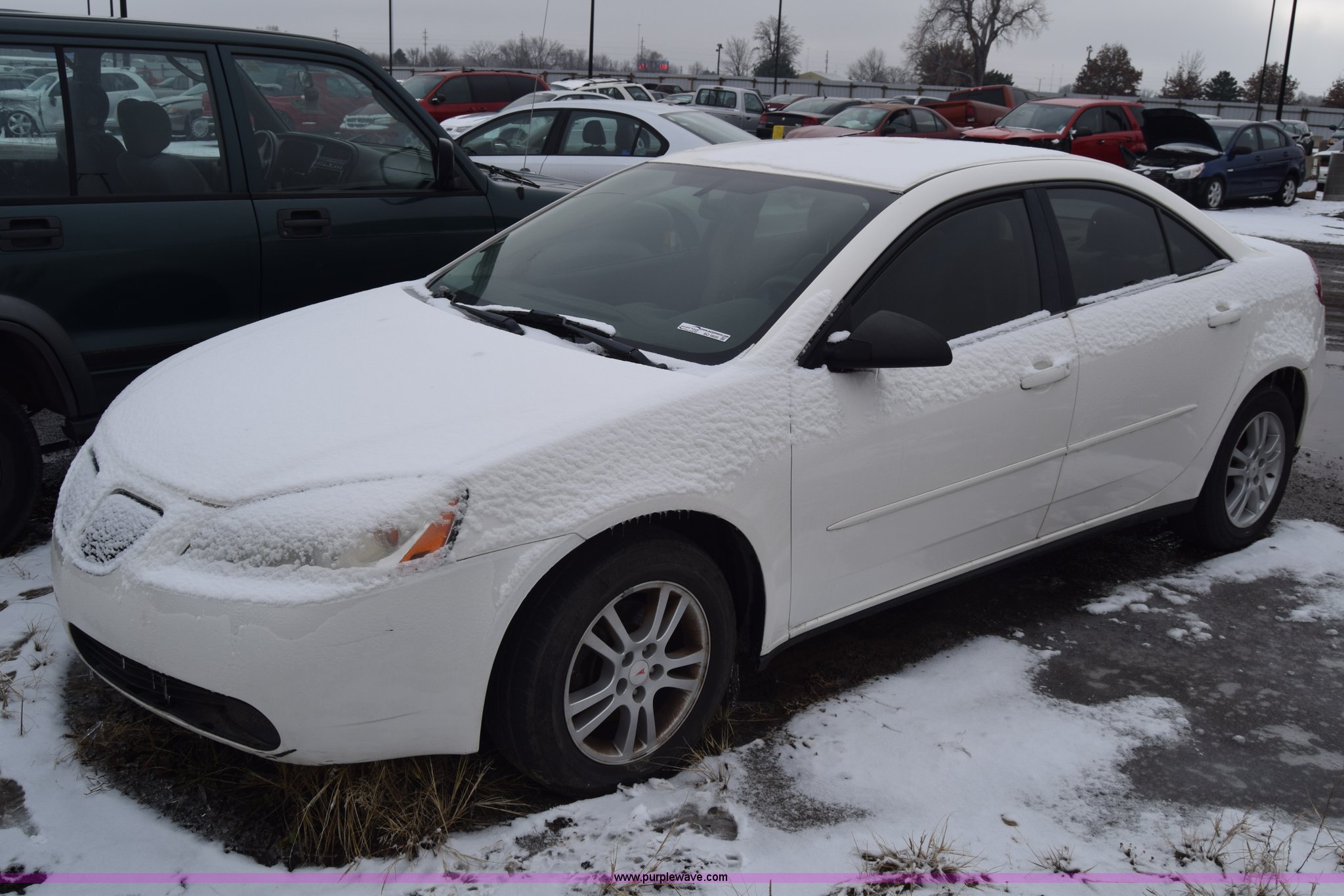 Purple Wave is selling a used Passenger Vehicle in Kansas. This item is a 2005 Pontiac G6 with the following: Unknown miles on odometer, 3.5L V6 OHV 12V gas engine, Automatic transmission, AC and heat, Tilt, Cruise, AM/FM, Power windows and locks, Cloth interior, 215/60R15 tires, Doors locked, Scratches, Interior/exterior cosmetic damage, Case# 15C501341