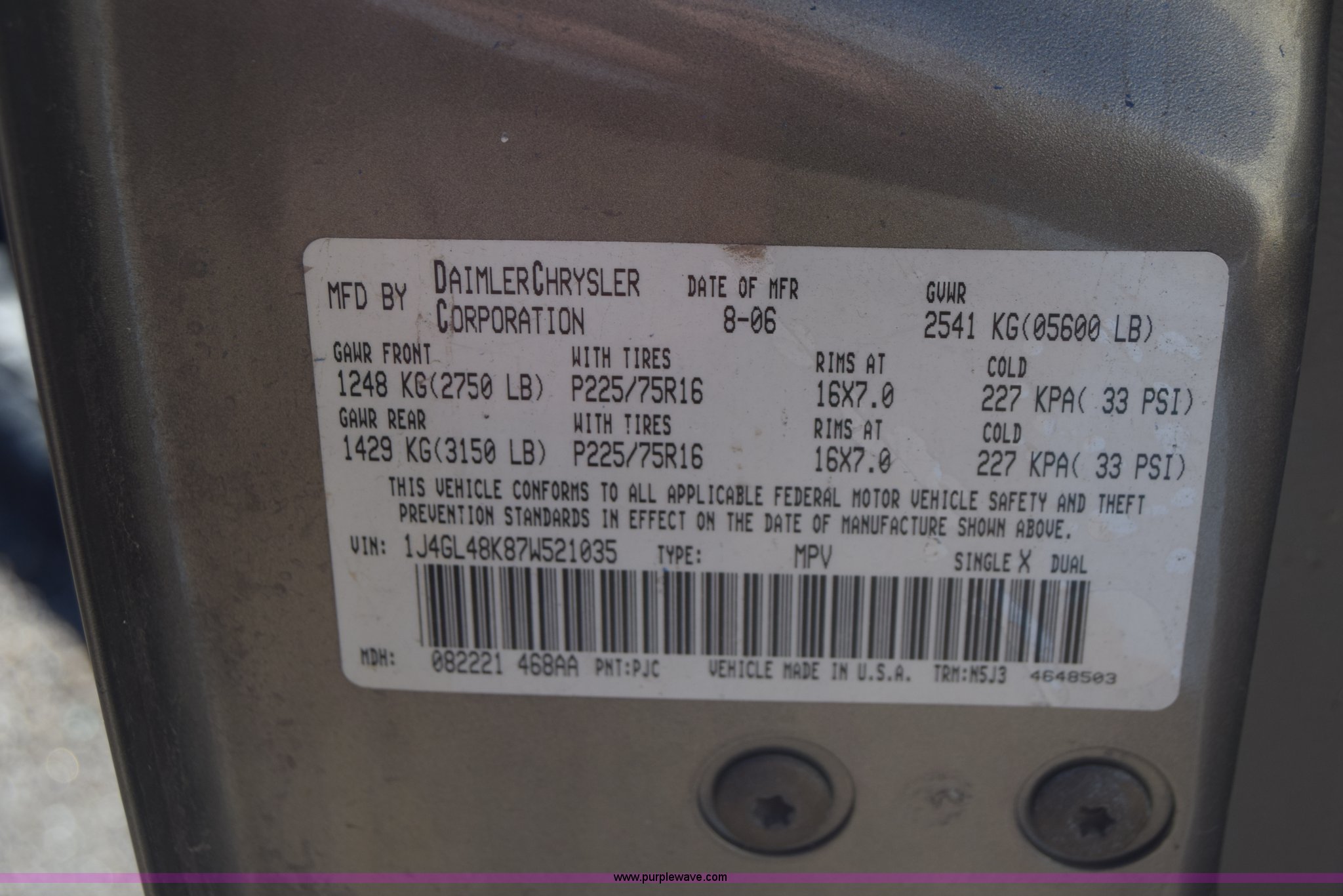 Purple Wave is selling a used Passenger Vehicle in Kansas. This item is a 2007 Jeep Liberty Sport SUV with the following: Unknown miles on odometer, 3.7L V6 SOHC 12V gas engine, Automatic transmission, Four wheel drive, AC and heat, Tilt, Cruise, AM/FM/CD, Power windows, locks, and mirrors, Vinyl interior, Substantial body damage, Interior/exterior cosmetic damage, Dents and scratches, 225/75R16 tires, Case# 15C058714
