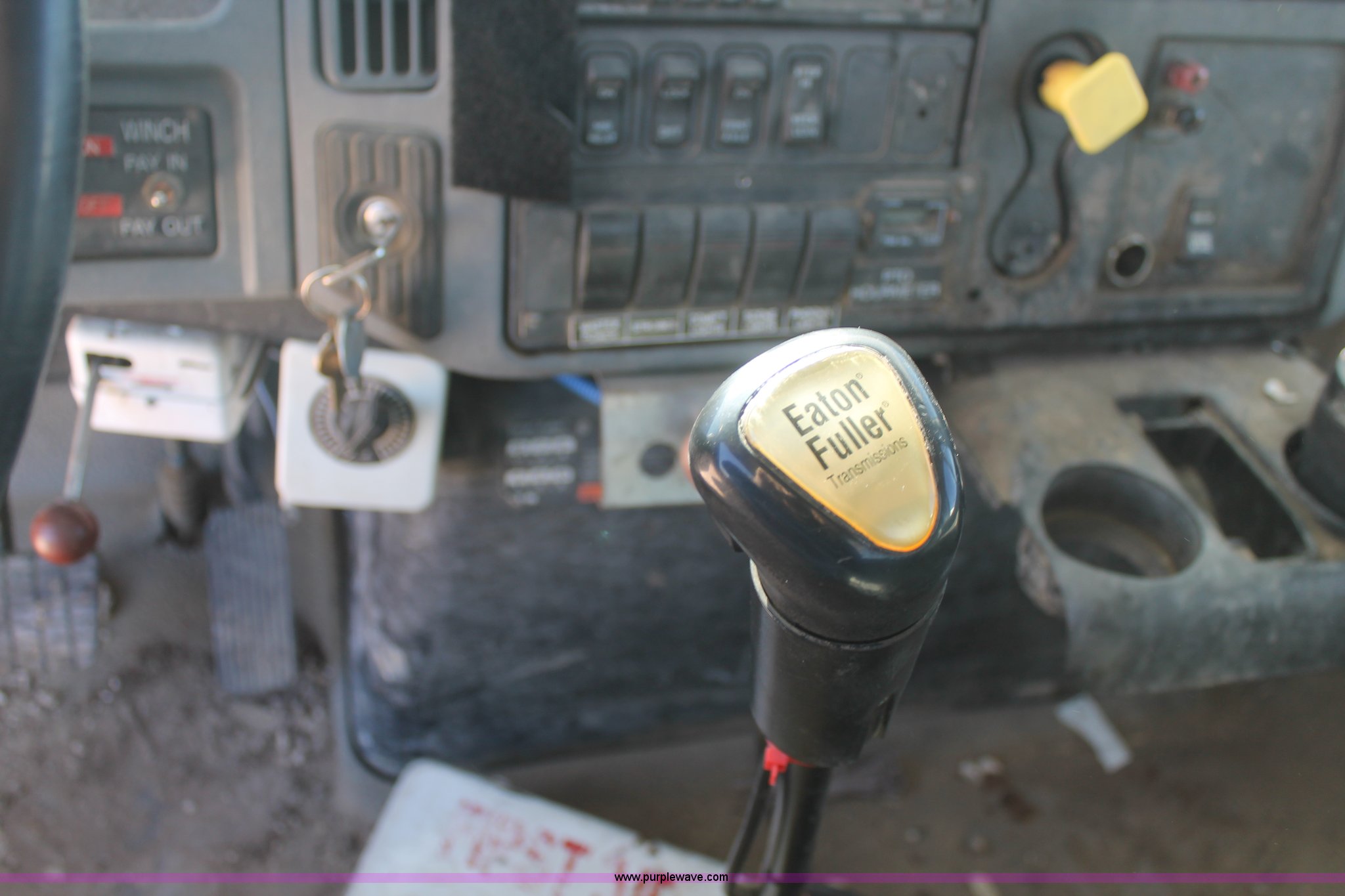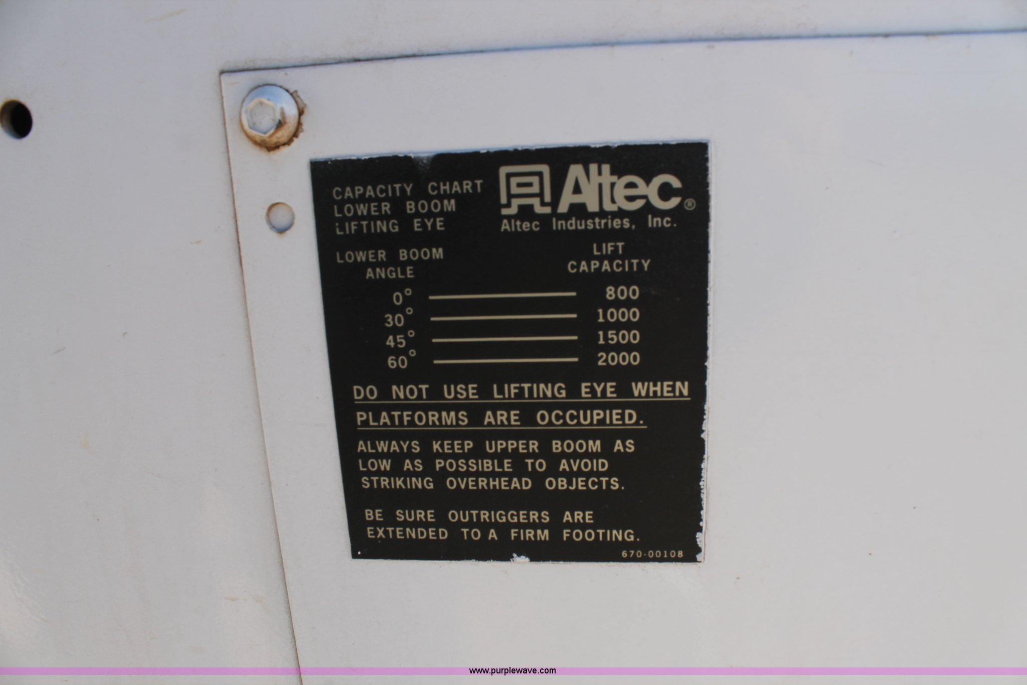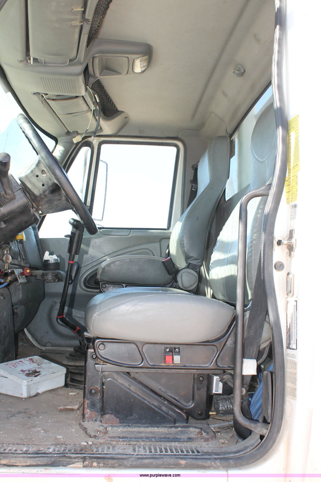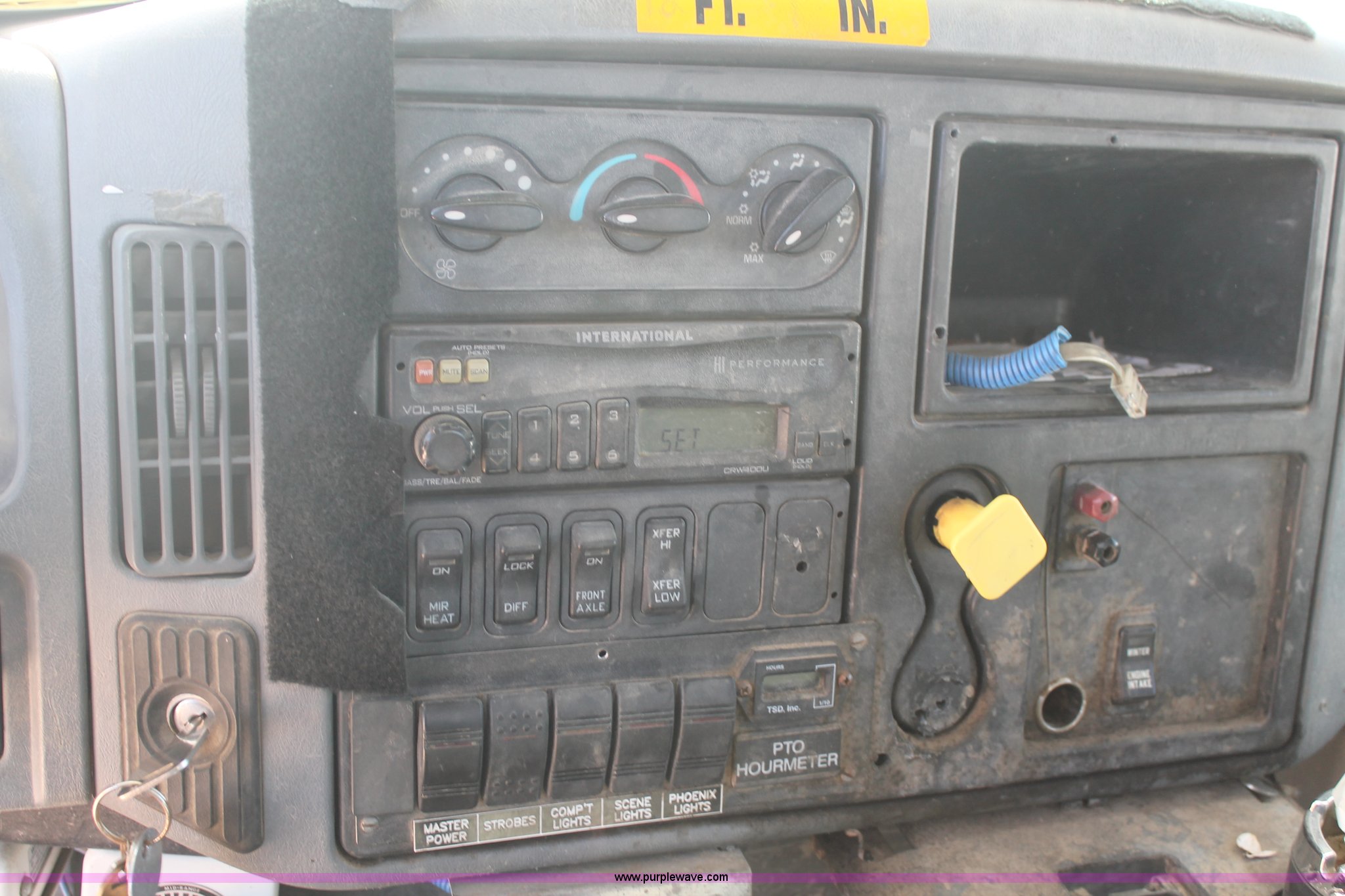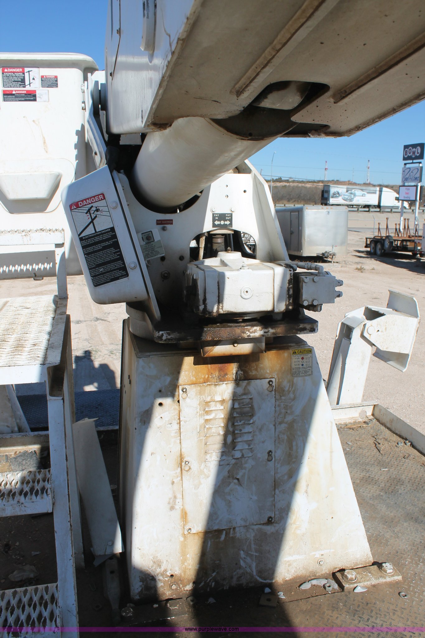 Purple Wave is selling a used Bucket Truck in Texas. This item is a 2002 International 7400 bucket truck with the following: 140,452 miles on odometer, International DT466 7.6L L6 turbo diesel engine, Eaton Fuller 10 speed manual transmission, AC and heat, AM/CD, Air suspension seat, Beacon light, Backup alarm, PTO, Service bed, Shelving, Utility rack, Work lights, Pintle hitch, Trailer wiring, Altec AM855 boom, Serial 0302BB2931, 350 lbs maximum lift capacity, 55' maximum lift height, Boom rotation, Material handler, Articulating insulated boom, (4) outriggers, Winch, Single exhaust stack, Single fuel tank, Spring suspension, Air brakes, 315/80R22.5 front tires, 12R22.5 rear tires, GVWR 37,000 lbs, Unit# 508