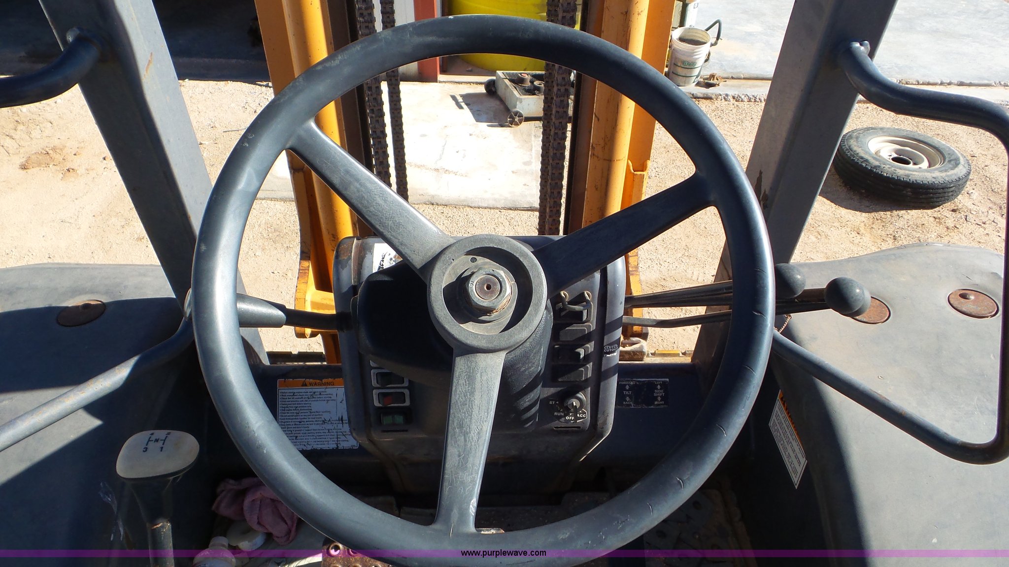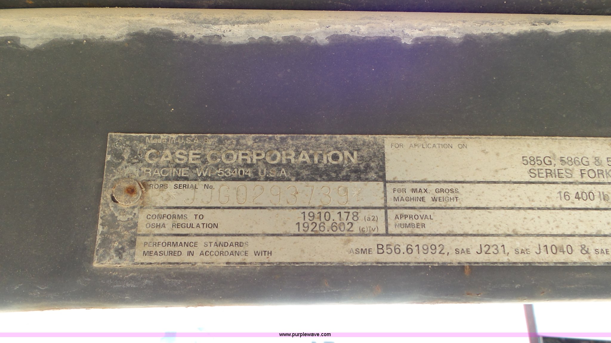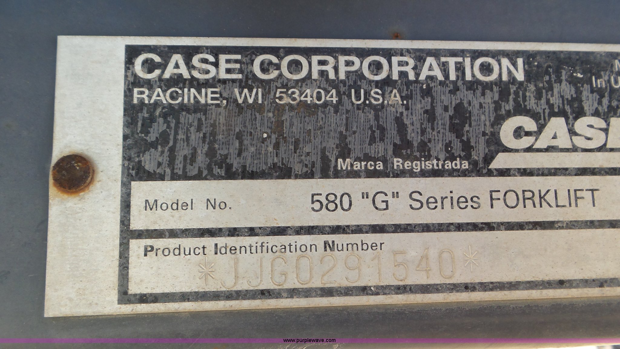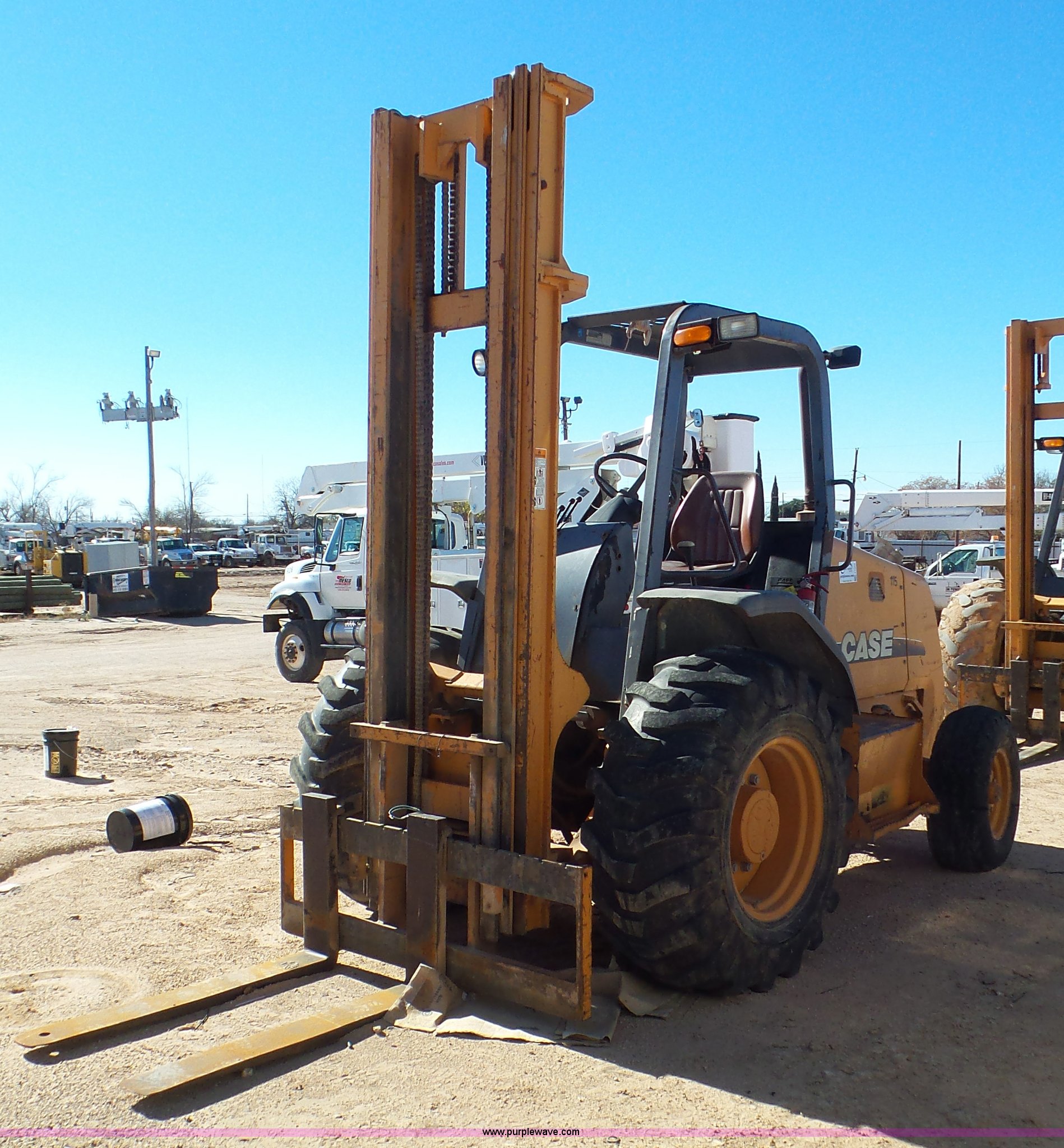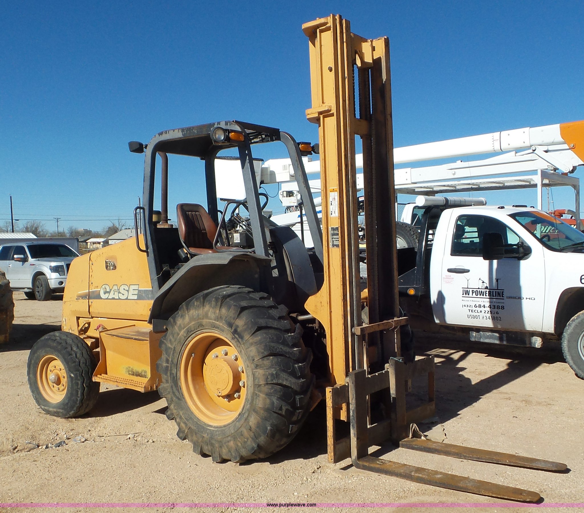 Purple Wave is selling a used Strt. Mast Rough Terr. Forklift in Texas. This item is a 2000 Case 586G forklift with the following: 1,694 hours on meter, Case New Holland 3.9L four cylinder diesel engine, Powershift transmission, 4F-4R gears, OROPS, Canopy, Work lights, 6,000 lbs maximum lift capacity, 15' maximum lift height, Three stage mast, Side shift, Tilt, 48"L forks, 19.5-24 front tires, 11-16 rear tires, Shut off solenoid must be pulled to start unit, Serial JJG0291540, Unit# 115