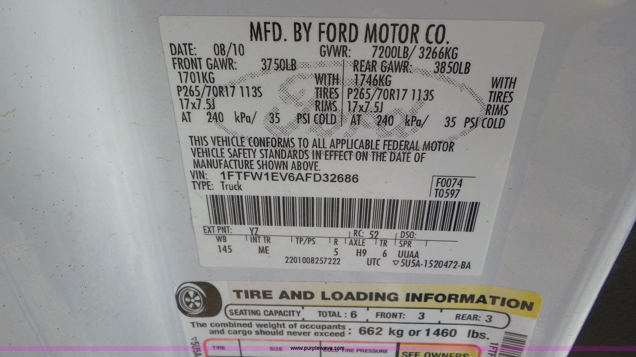 Purple Wave is selling a used 1/2 Ton Pickup or Van in Texas. This item is a 2010 Ford F150 SuperCab pickup truck with the following: 139,689 miles on odometer, 5.4L V8 SOHC 24V FFV gas engine, Automatic transmission, Four wheel drive, AC and heat, Tilt, Cruise, AM/FM/CD, Power windows, locks, mirrors, and seat, Cloth interior, Fog lights, Front tow hook, Bed cover, Bed liner, Receiver hitch, 265/70R17 tires, Dents, Unit# 231
