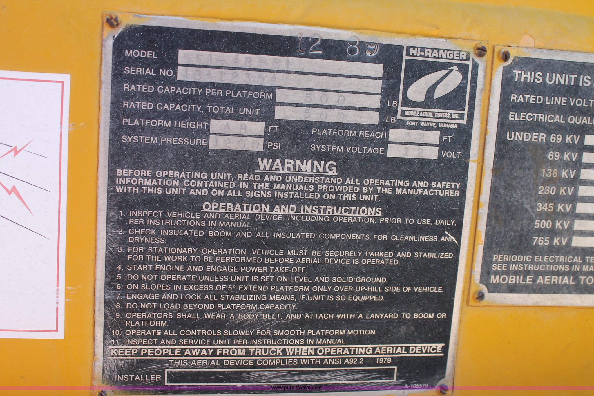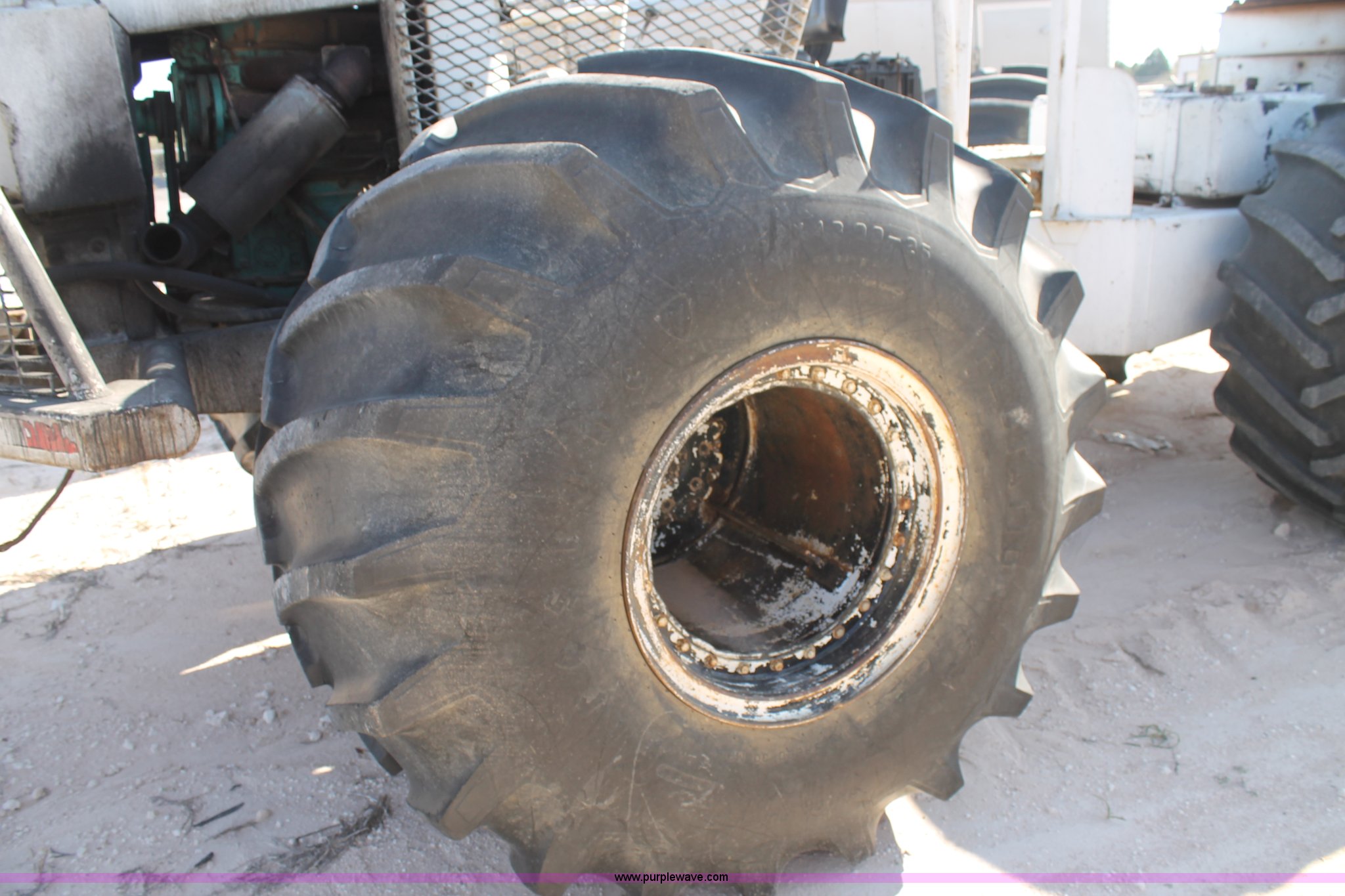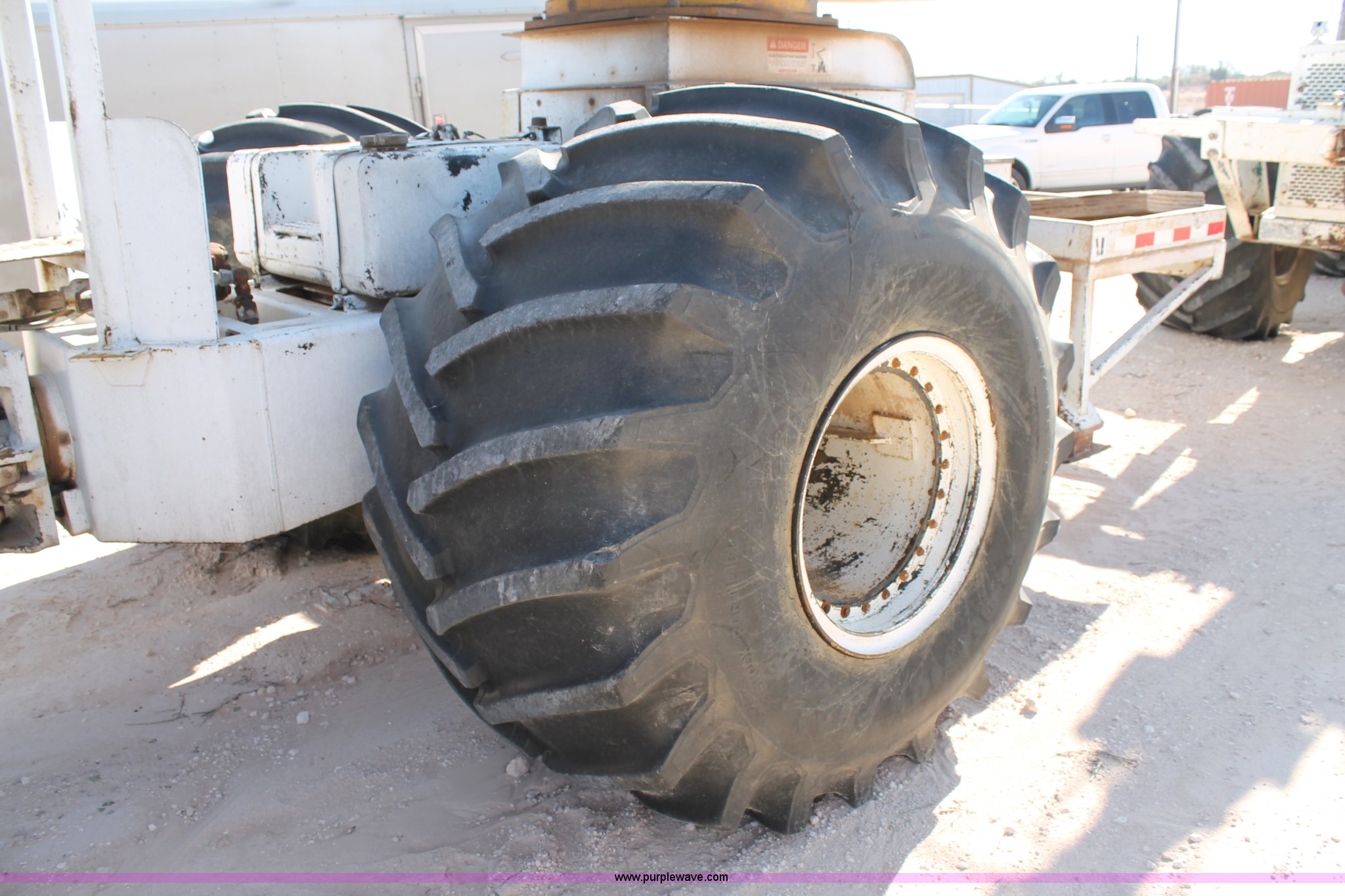 Mudd Buggy 5F1-48PB1 boom lift. 2,133 hours on meter, Detroit Diesel six cylinder diesel engine, Four speed manual transmission, Hi Ranger insulated folding boom, 500 lbs maximum lift capacity, 48' maximum lift height, 32' maximum reach, Hydraulic articulating turn, 25'L x 11.5'W overall dimensions, Front winch, 66 x 43.00-25 tires, Serial 18412354. JW Powerline. 3310 E I-20. Big Spring, TX 79720