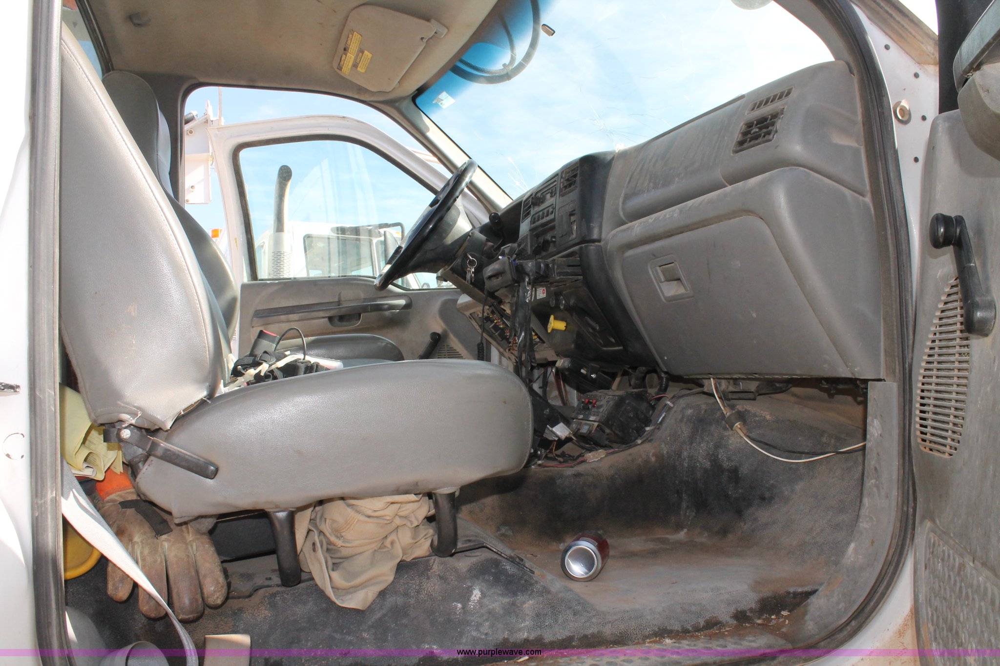 This 2005 Ford F750 Super Duty bucket truck will sell to the highest bidder regardless of price.