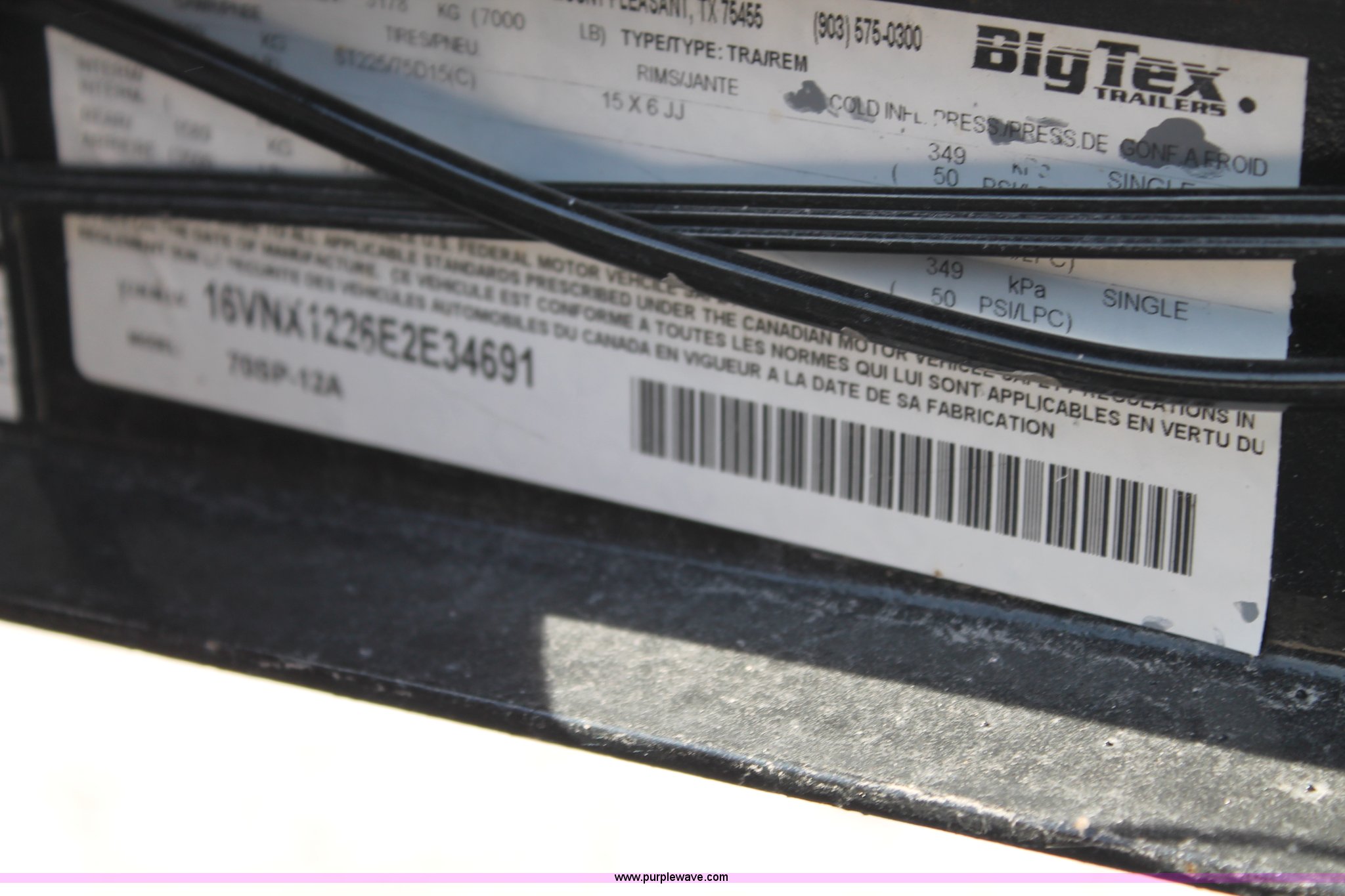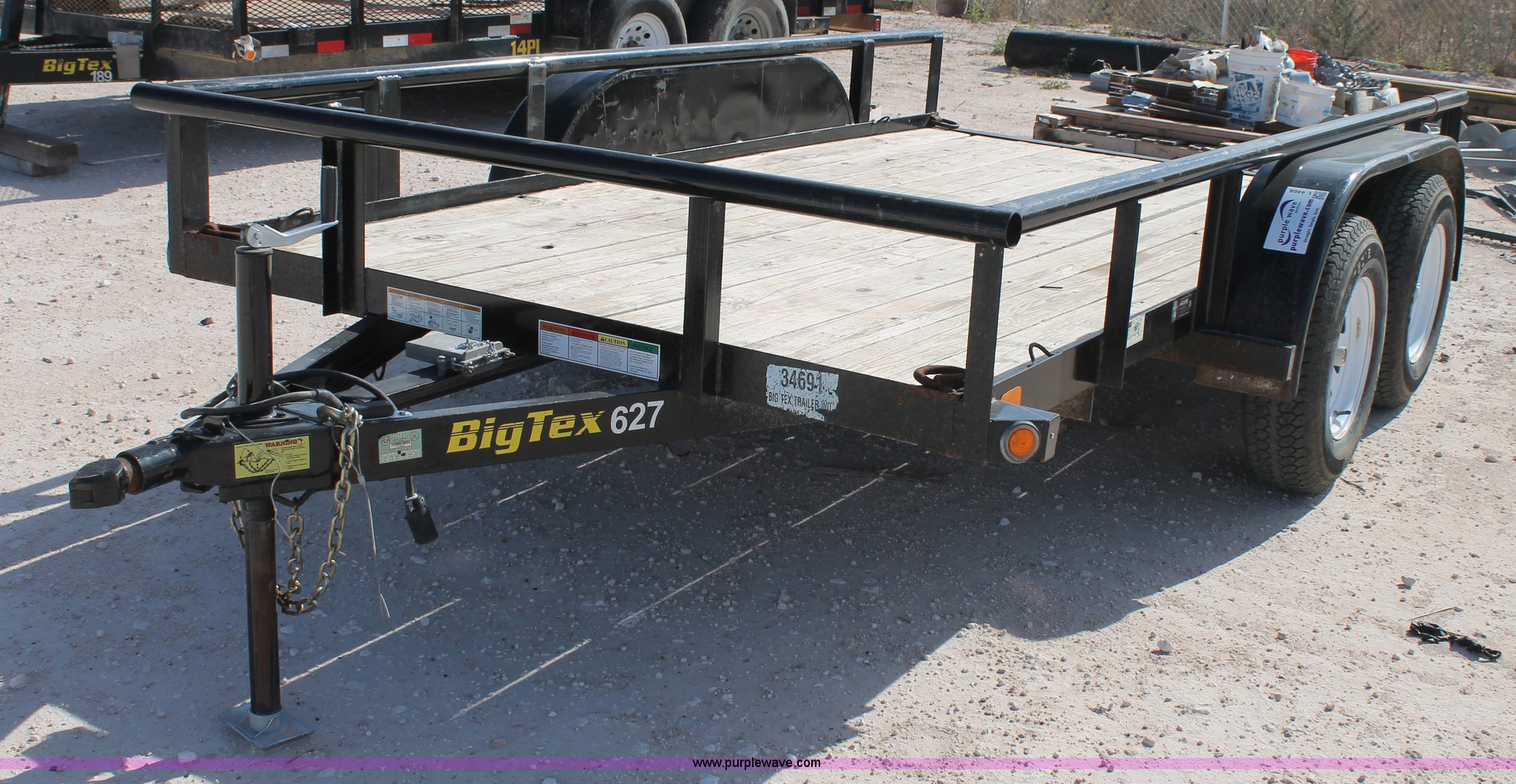 Purple Wave is selling a used Car or Utility Trailer in Texas. This item is a 2014 Big Tex utility trailer with the following: 12'L x 7'W, Pipe top rail, 2" ball hitch, Tandem axle, Electric brakes, 7.00R15 tires, GVWR 7,000 lbs, Unit# 627