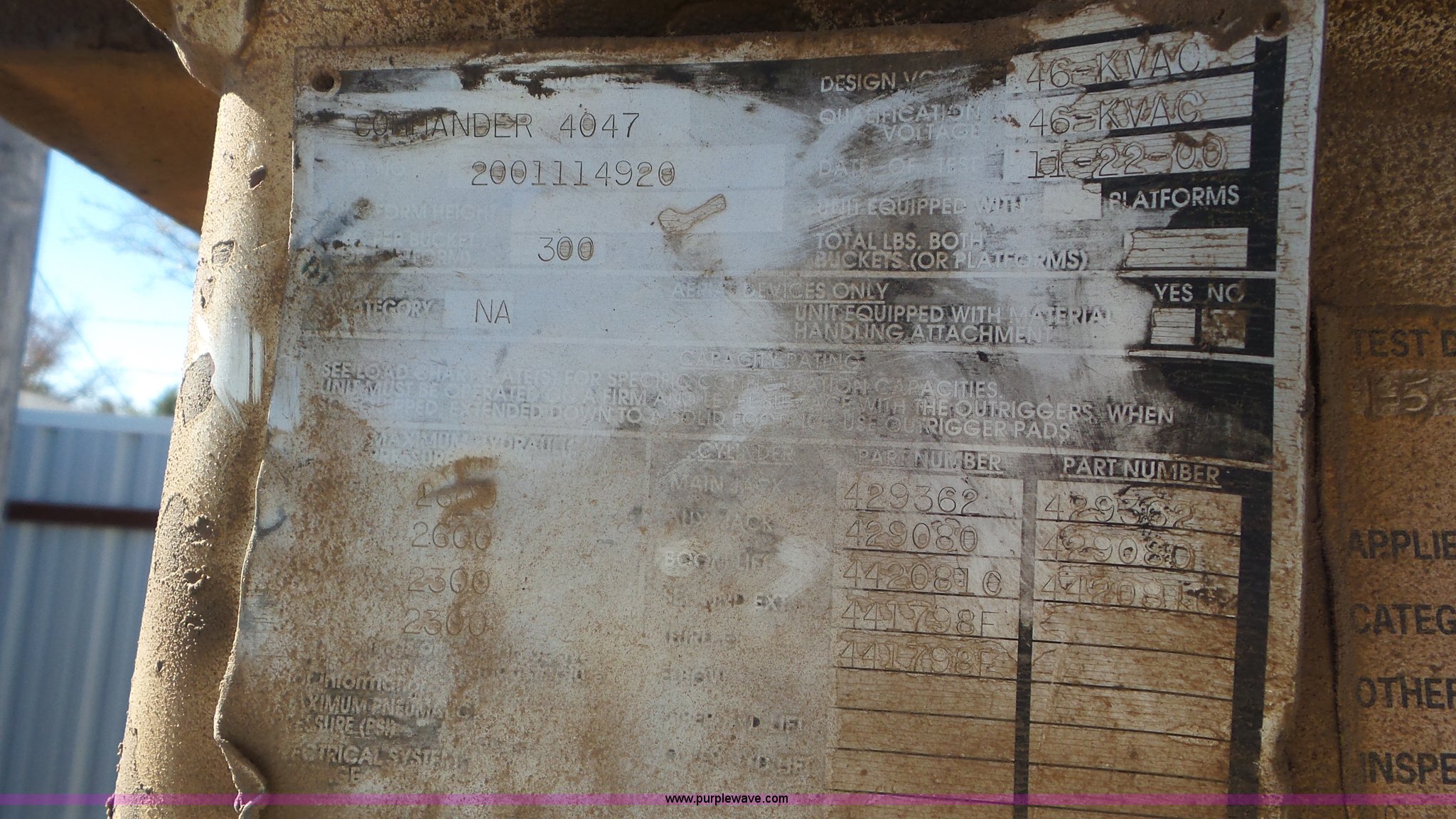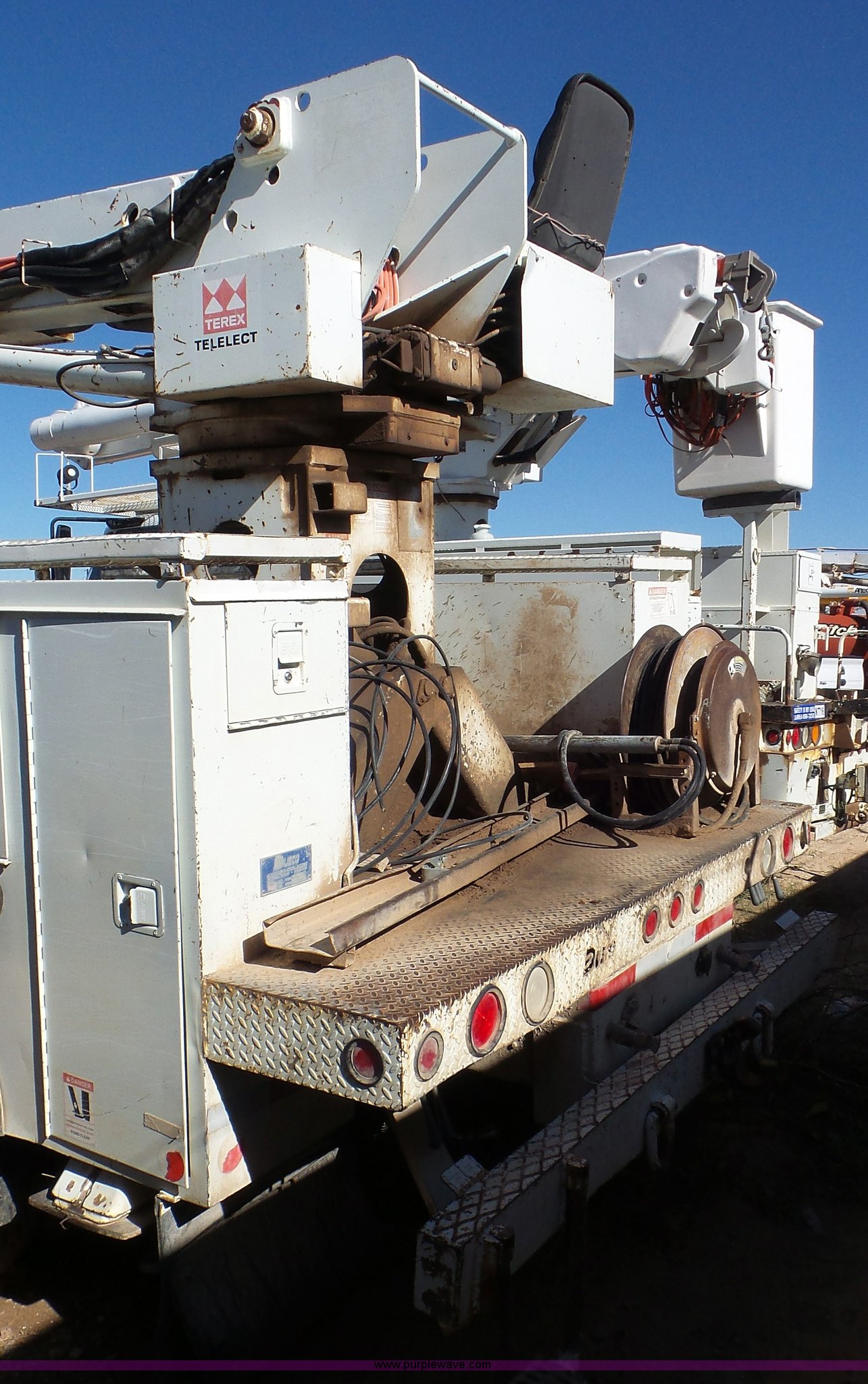 Purple Wave is selling a used Digger Derrick Truck in Texas. This item is a 2001 International 4900 digger derrick truck with the following: 23,845 miles on odometer, 2,743 hours on meter, International DT466 7.6L L6 turbo diesel engine, Automatic transmission, AC and heat, Cruise, AM/FM/cassette, PTO, Front tow hooks, Dueco DSL-111 service bed, 13'L, Shelving, Serial 0101320, Terex Commander 4047 boom, Serial 2001114920, Ground and platform controls, Boom rotation, Material handler, Telescopic boom, 18" auger diameter, (4) outriggers, Single exhaust stack, Single fuel tank, 188" wheelbase, Trailer wiring, Pintle hitch, Spring suspension, Air brakes, 11R22.5 tires, Unit# 49