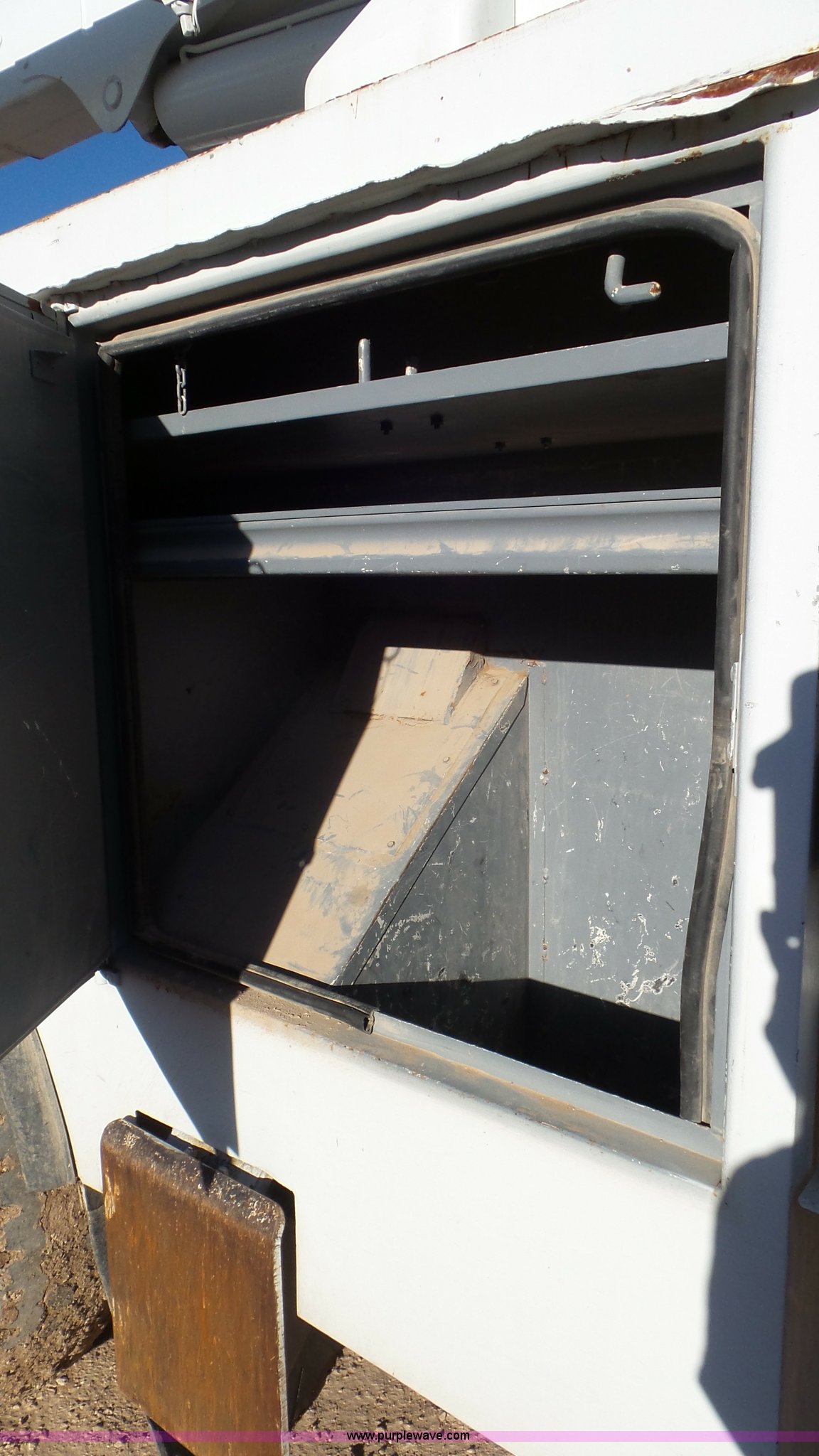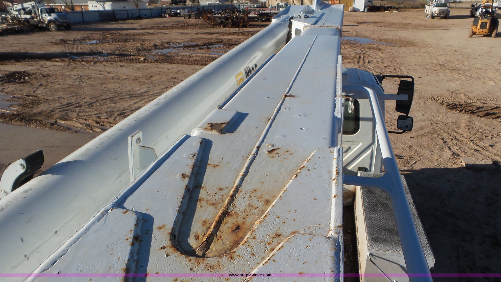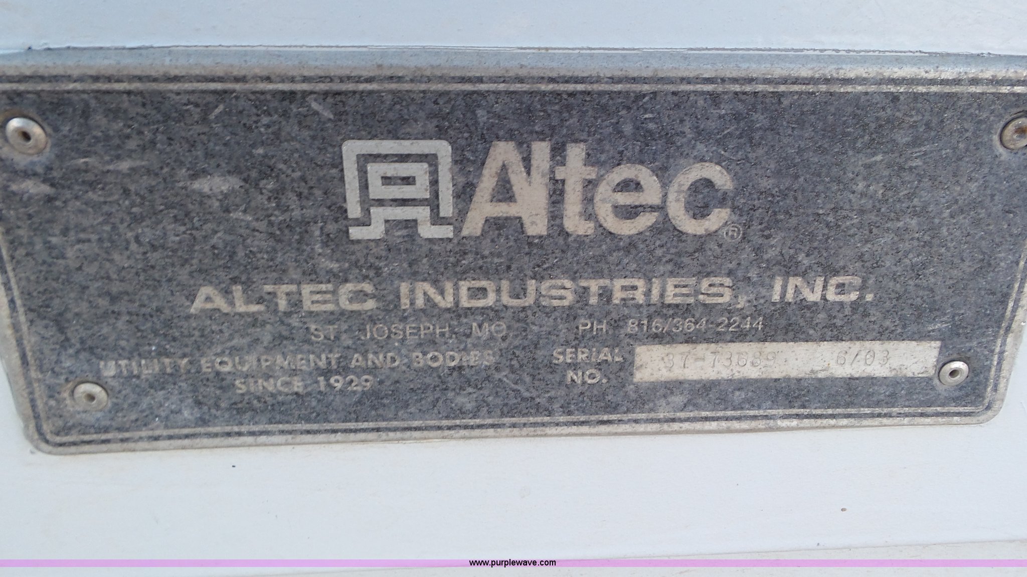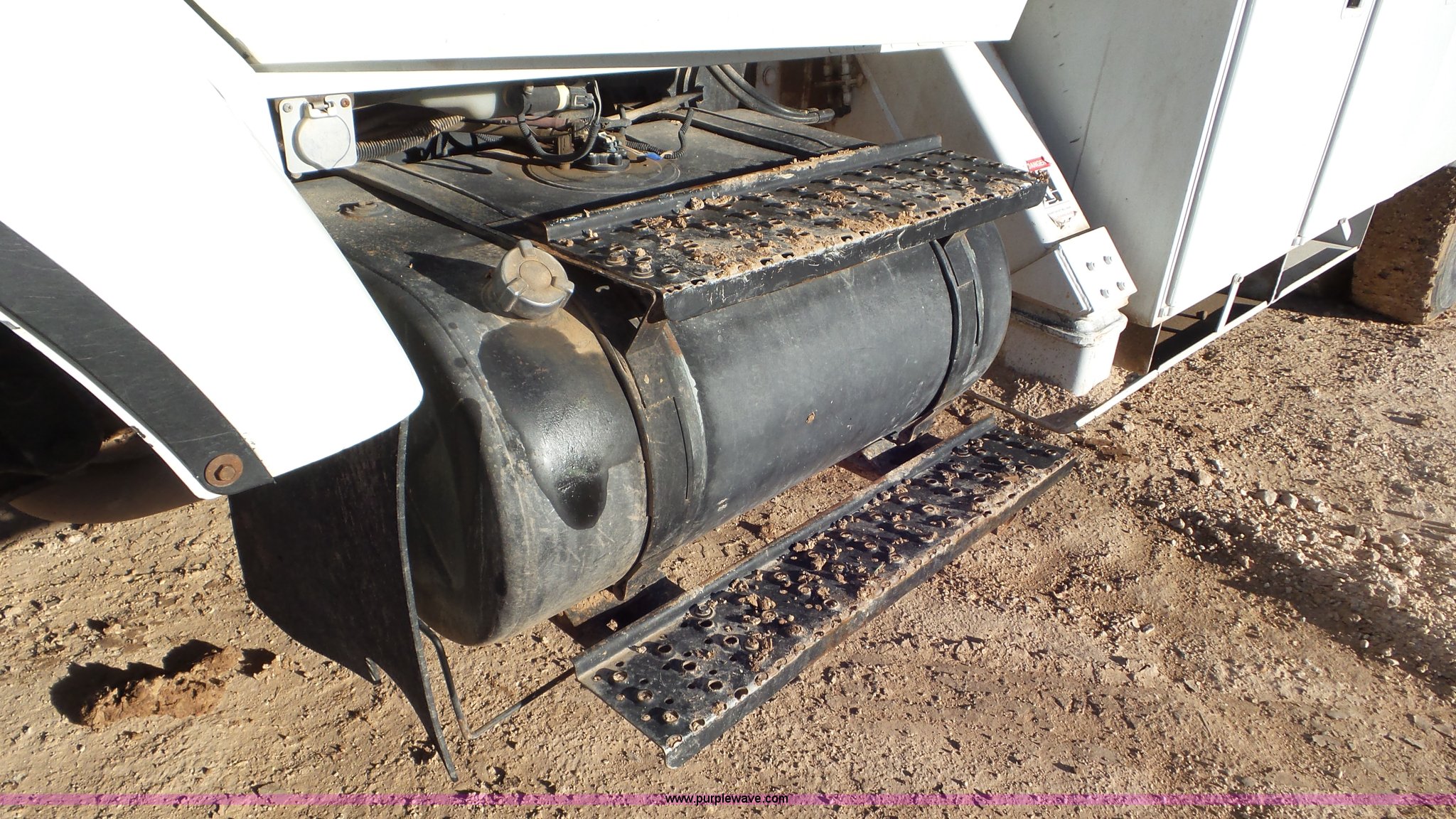 Purple Wave is selling a used Bucket Truck in Texas. This item is a 2004 International 7300 bucket truck with the following: 86,821 miles on odometer, 13,580 hours on meter, International DT466 7.6L L6 turbo diesel engine, Automatic transmission, Four wheel drive, AC and heat, Cruise, AM/FM/cassette, Cruise, Beacon light, PTO, Altec 16'L service bed, Shelving, 2003 Altec AM55 boom, Serial 0503DM0237, 600 lbs maximum lift capacity, 55' maximum lift height, Ground and platform controls, Boom rotation, Man basket, Articulating insulated boom, (4) outriggers, Single fuel tank, 195" wheelbase, Pintle hitch, Spring suspension, Air brakes, Trailer wiring, 11R22.5 front tires, 12R22.5 rear tires, Unit# 38