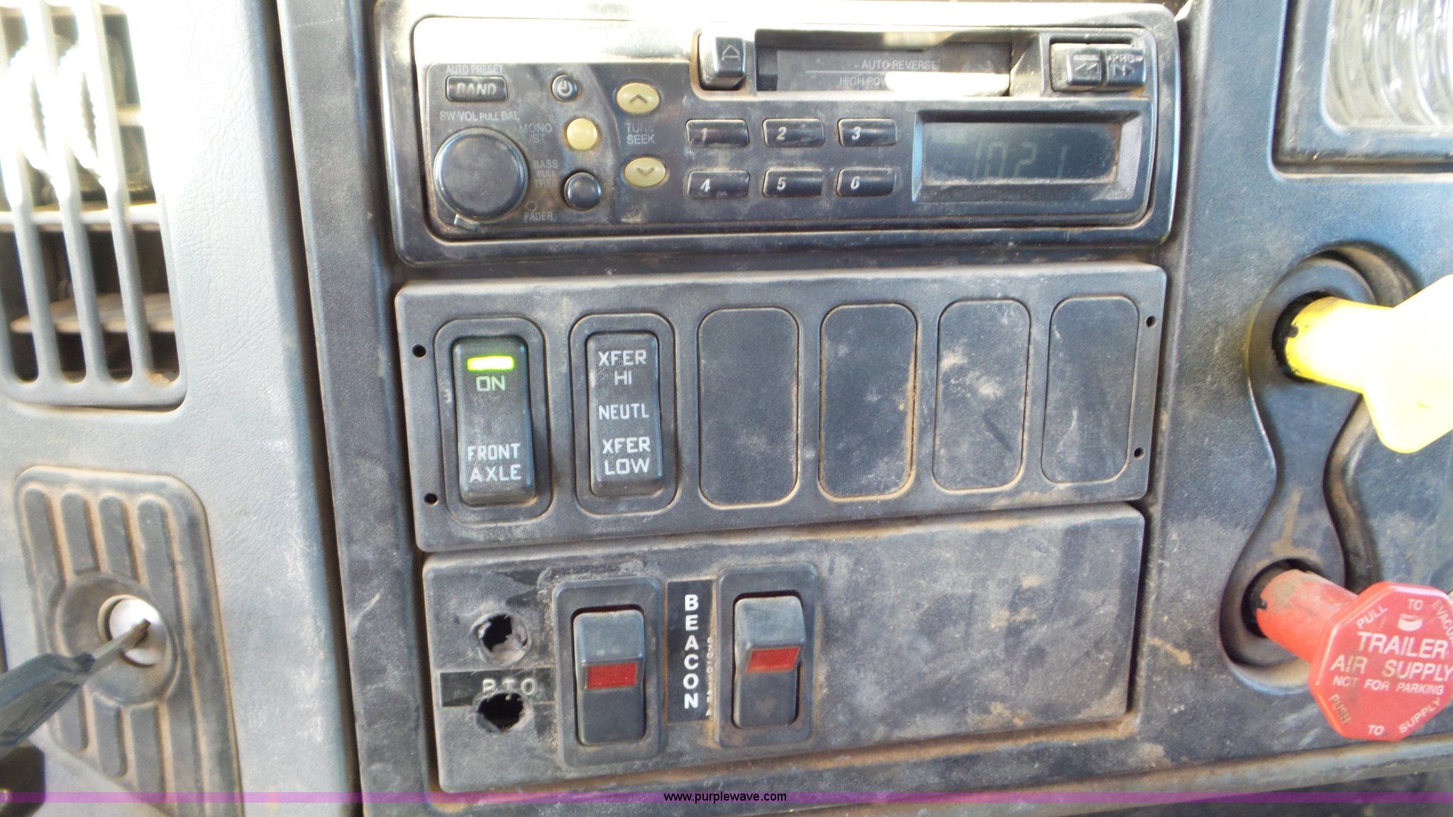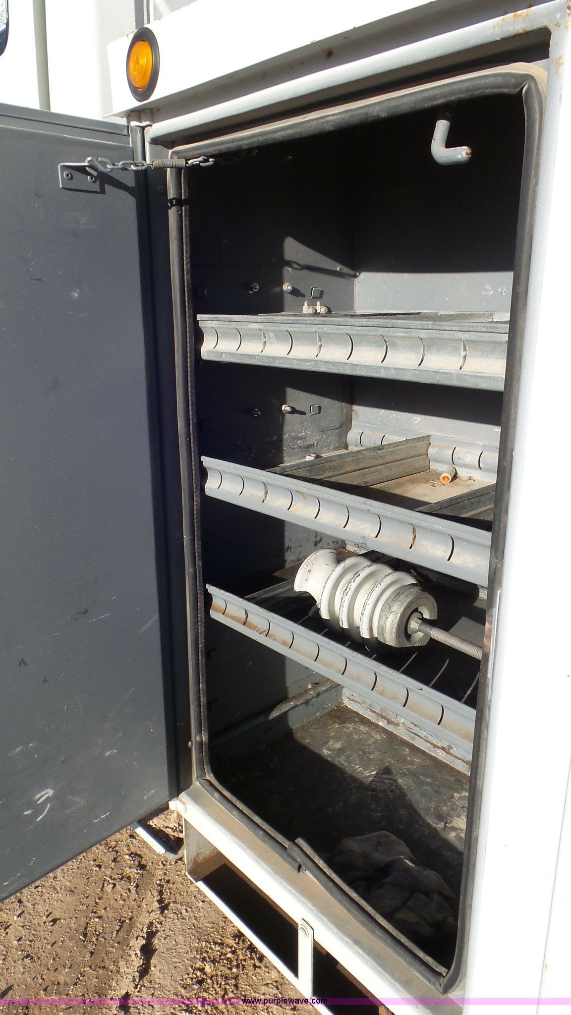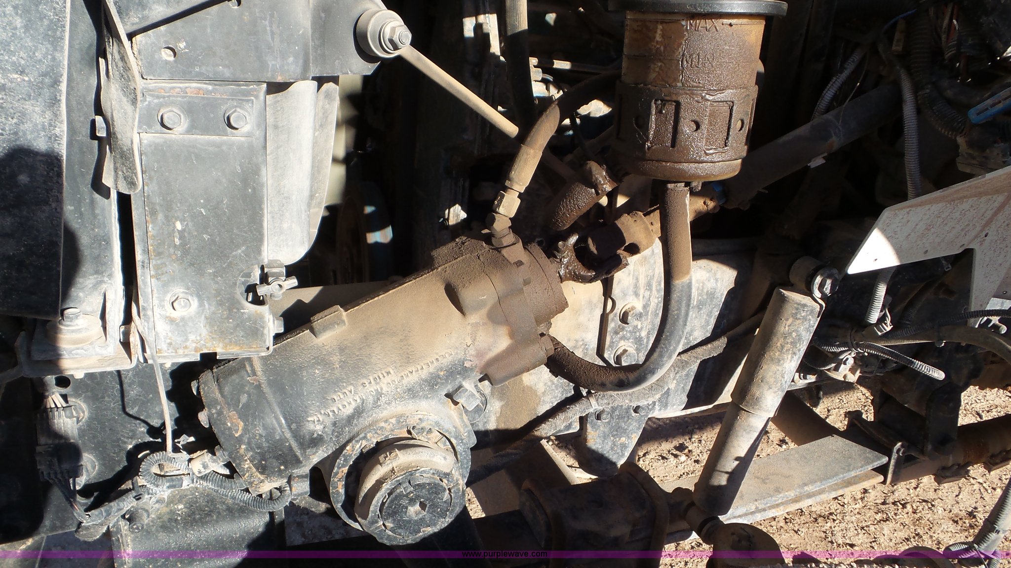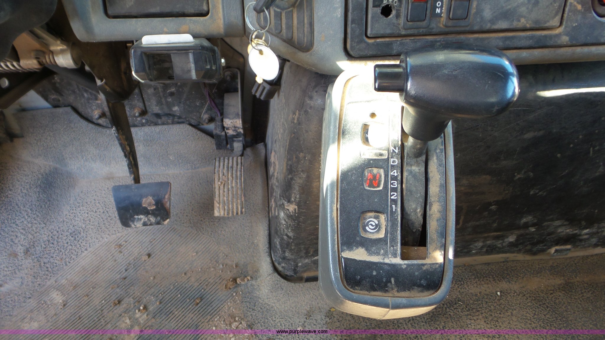 Purple Wave is selling a used Bucket Truck in Texas. This item is a 2004 International 7300 bucket truck with the following: 86,821 miles on odometer, 13,580 hours on meter, International DT466 7.6L L6 turbo diesel engine, Automatic transmission, Four wheel drive, AC and heat, Cruise, AM/FM/cassette, Cruise, Beacon light, PTO, Altec 16'L service bed, Shelving, 2003 Altec AM55 boom, Serial 0503DM0237, 600 lbs maximum lift capacity, 55' maximum lift height, Ground and platform controls, Boom rotation, Man basket, Articulating insulated boom, (4) outriggers, Single fuel tank, 195" wheelbase, Pintle hitch, Spring suspension, Air brakes, Trailer wiring, 11R22.5 front tires, 12R22.5 rear tires, Unit# 38