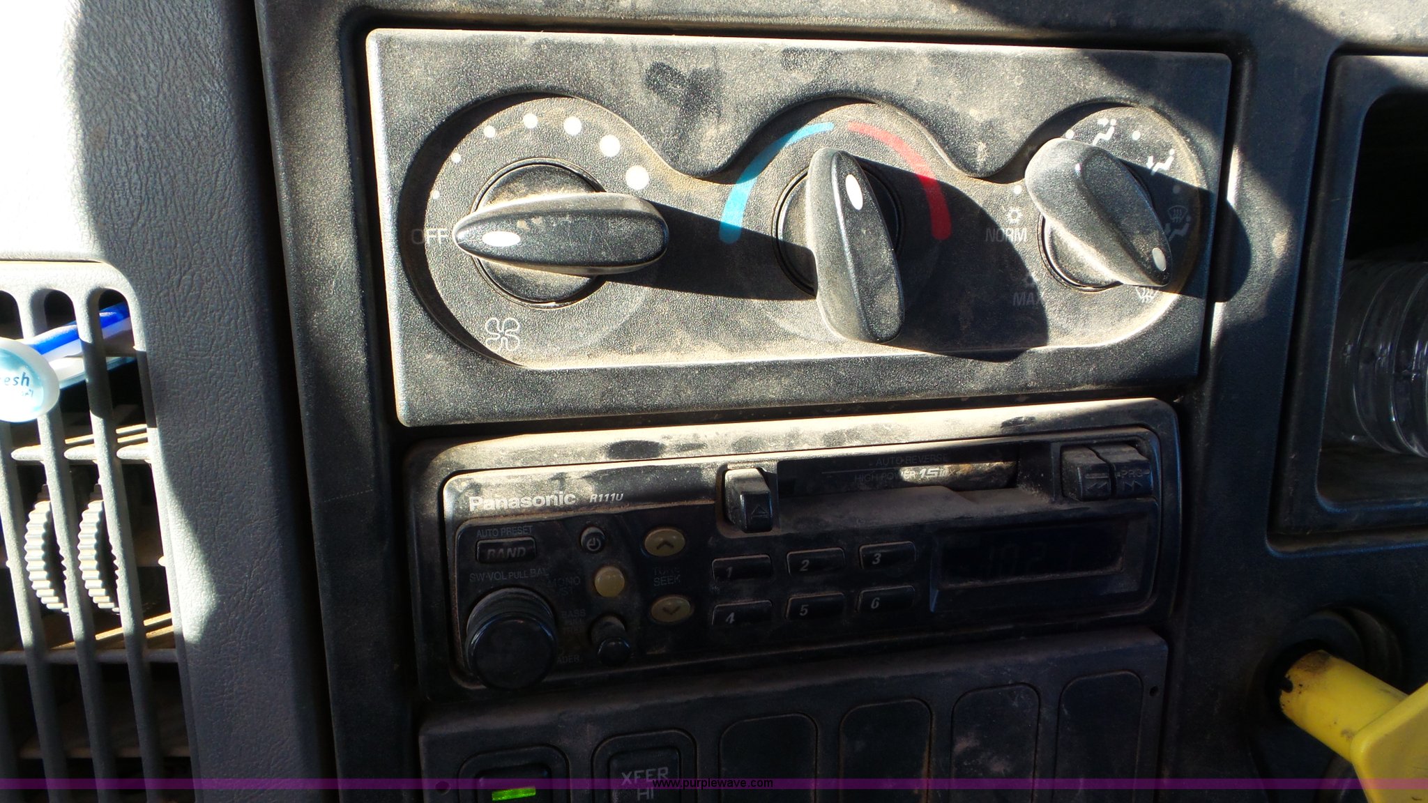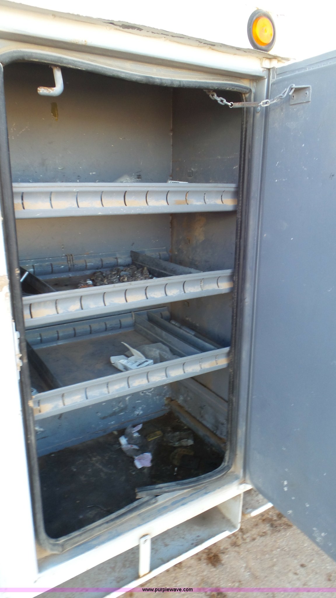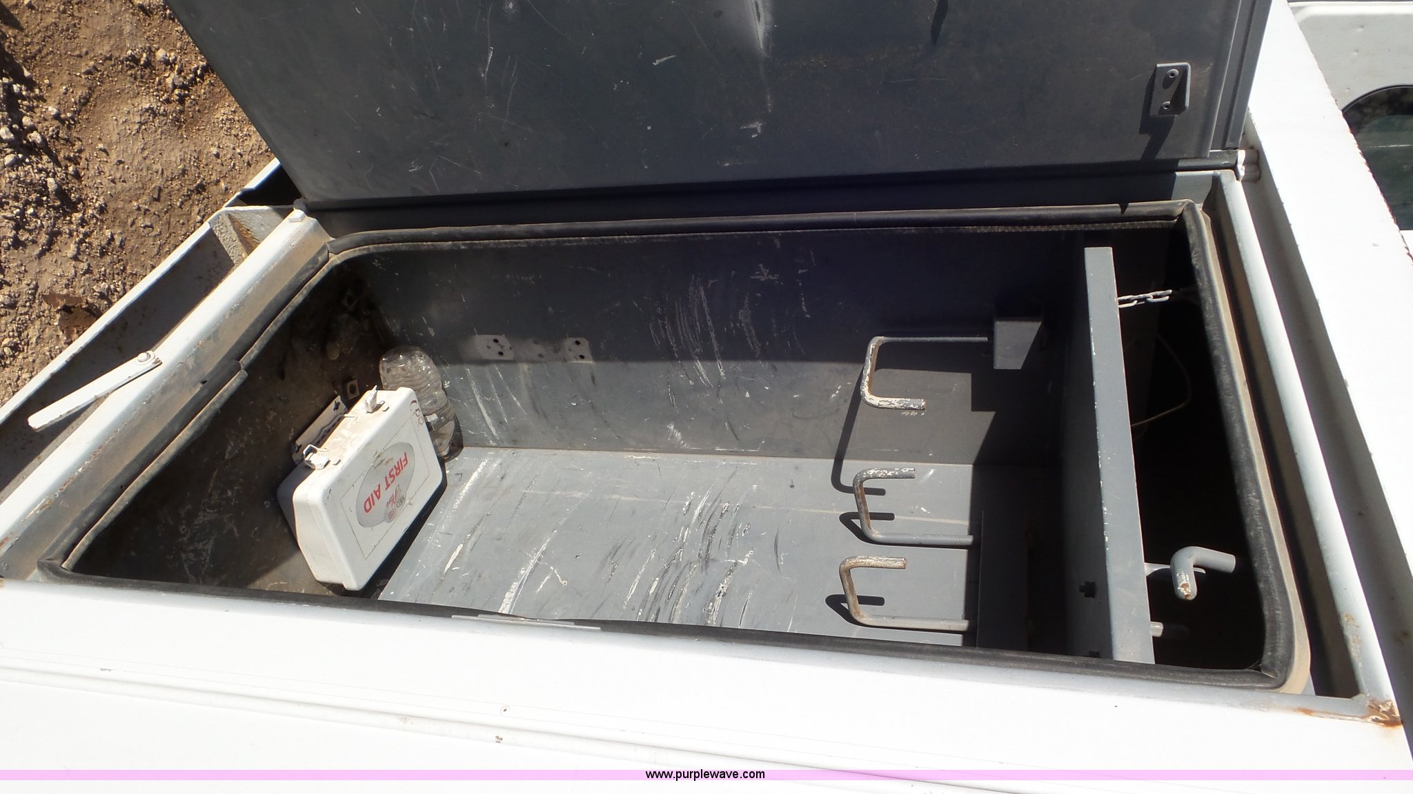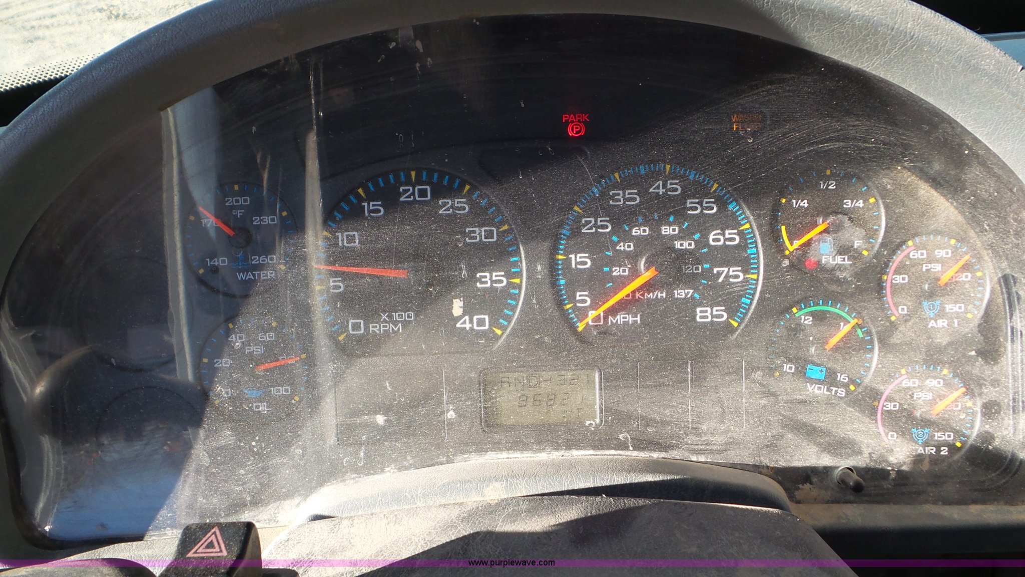 Purple Wave is selling a used Bucket Truck in Texas. This item is a 2004 International 7300 bucket truck with the following: 86,821 miles on odometer, 13,580 hours on meter, International DT466 7.6L L6 turbo diesel engine, Automatic transmission, Four wheel drive, AC and heat, Cruise, AM/FM/cassette, Cruise, Beacon light, PTO, Altec 16'L service bed, Shelving, 2003 Altec AM55 boom, Serial 0503DM0237, 600 lbs maximum lift capacity, 55' maximum lift height, Ground and platform controls, Boom rotation, Man basket, Articulating insulated boom, (4) outriggers, Single fuel tank, 195" wheelbase, Pintle hitch, Spring suspension, Air brakes, Trailer wiring, 11R22.5 front tires, 12R22.5 rear tires, Unit# 38