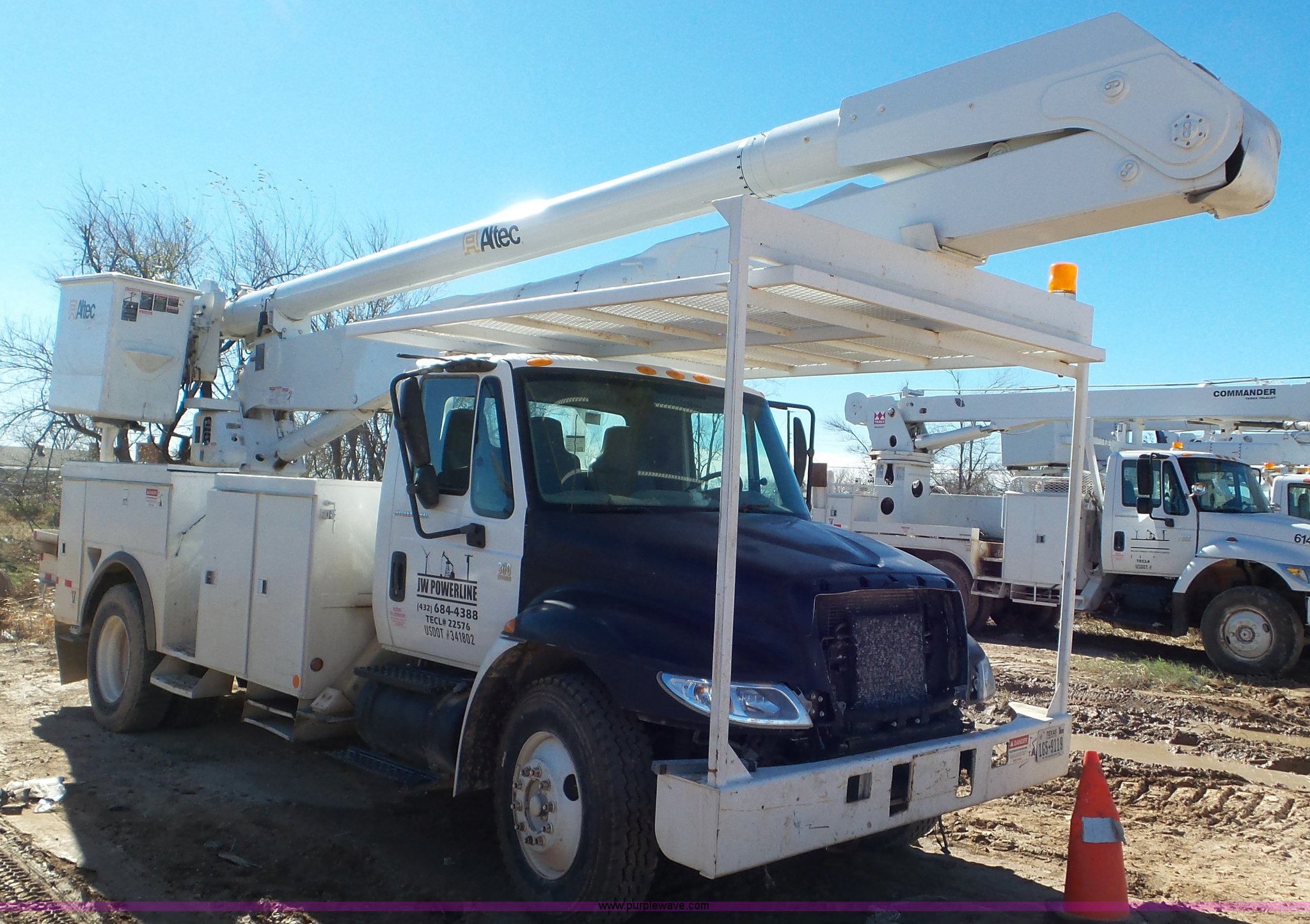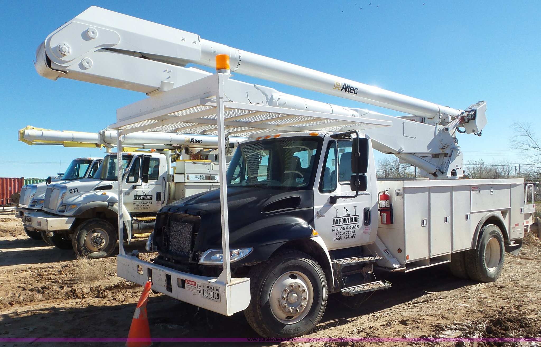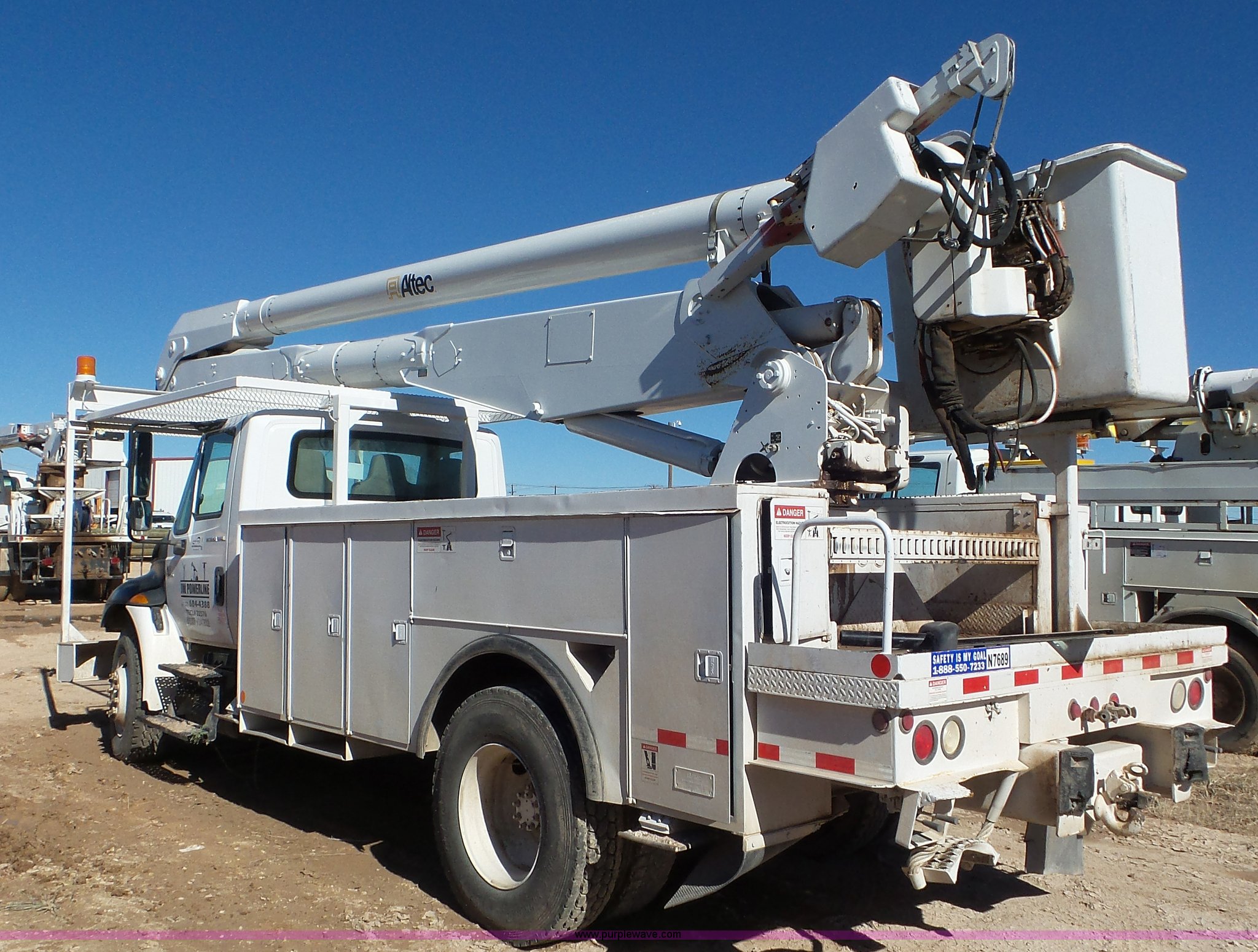 Purple Wave is selling a used Digger Derrick Truck in Texas. This item is a 2003 International DuraStar 4300 digger derrick truck with the following: International DT466 7.6L L6 turbo diesel engine, Automatic transmission, Single axle, AC and heat, Cruise, AM/FM/cassette, Front tow hooks, Beacon light, PTO, Altec service bed, 15'L, Shelving, 2003 Altec AA755L boom, 700 lbs max lift capacity, Man basket, 55' max lift height, Ground and platform boom controls, Boom rotation, Articulating insulated boom, (4) outriggers, Serial 0303BZ2388, Pintle hitch, Spring suspension, Air brakes, 192" wheelbase, 11R22.5 tires, Non-operational unit, Unit# 580