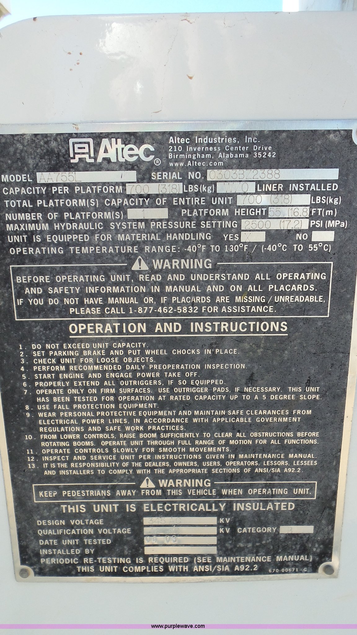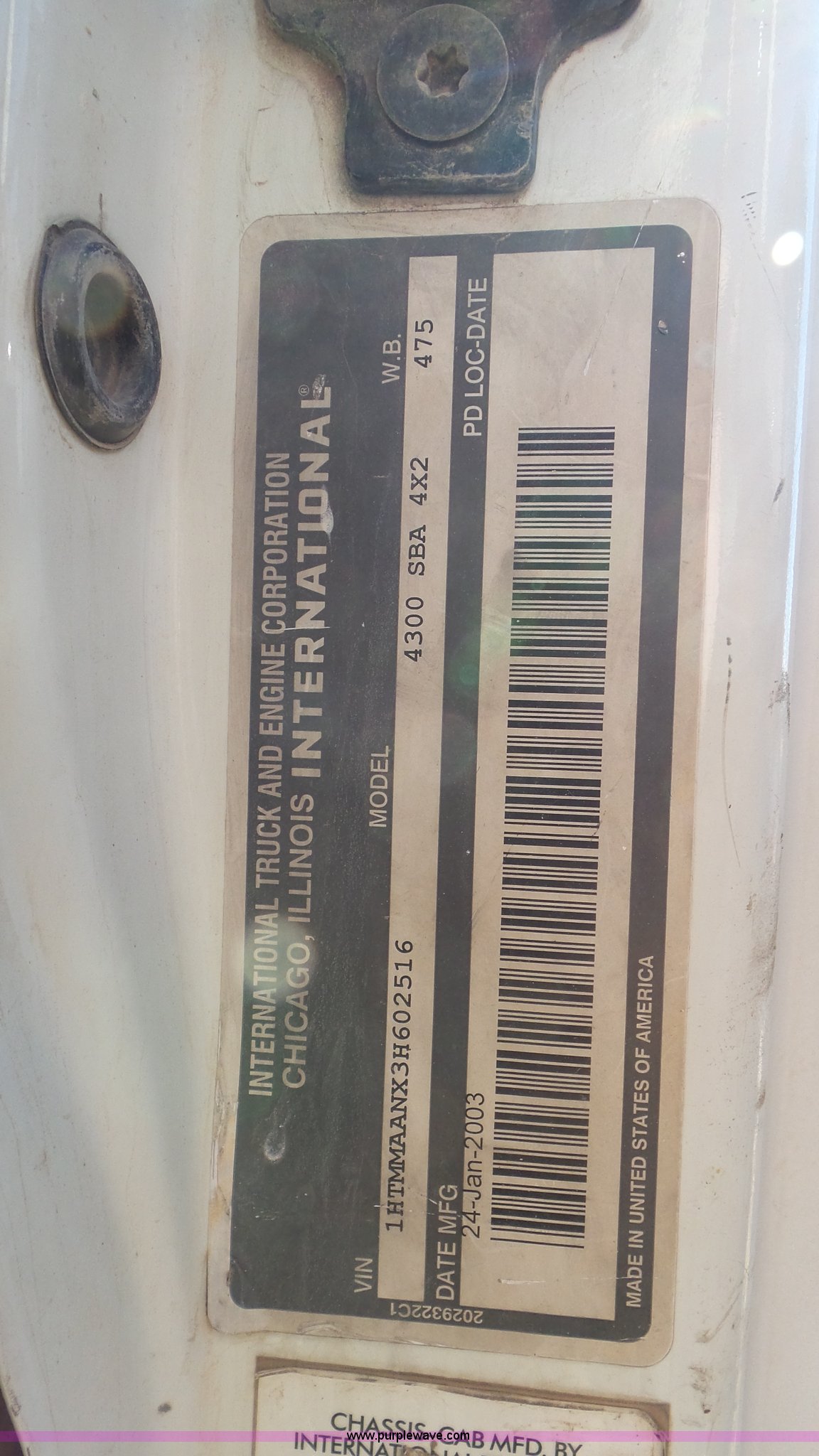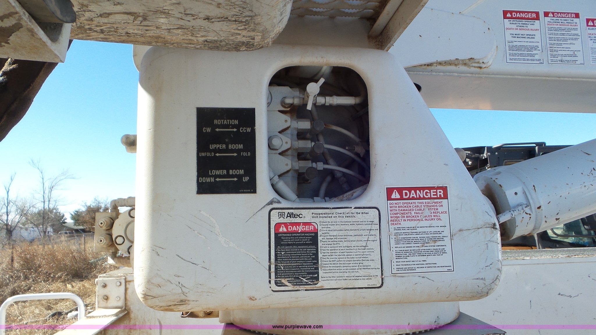 Purple Wave is selling a used Digger Derrick Truck in Texas. This item is a 2003 International DuraStar 4300 digger derrick truck with the following: International DT466 7.6L L6 turbo diesel engine, Automatic transmission, Single axle, AC and heat, Cruise, AM/FM/cassette, Front tow hooks, Beacon light, PTO, Altec service bed, 15'L, Shelving, 2003 Altec AA755L boom, 700 lbs max lift capacity, Man basket, 55' max lift height, Ground and platform boom controls, Boom rotation, Articulating insulated boom, (4) outriggers, Serial 0303BZ2388, Pintle hitch, Spring suspension, Air brakes, 192" wheelbase, 11R22.5 tires, Non-operational unit, Unit# 580