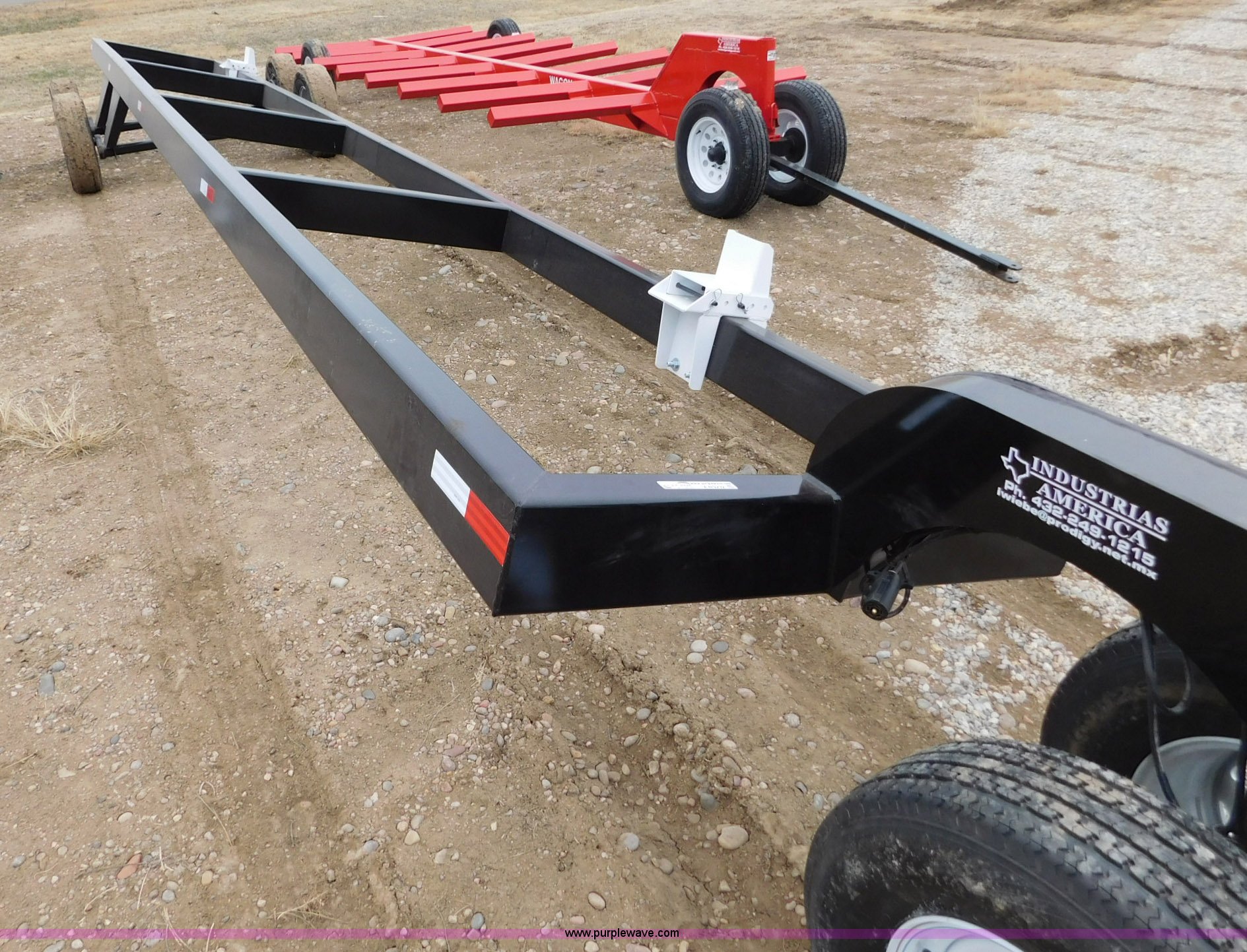 Purple Wave is selling a used Ag Equip. or Header Trailer in Kansas. This item is a Industries America 835 header trailer with the following: 44'L x 54"W overall, 35'L head capacity, 4" x 8" frame stand, Lights, Brakes, Torsion axles, Keter ST235/80R16 tires