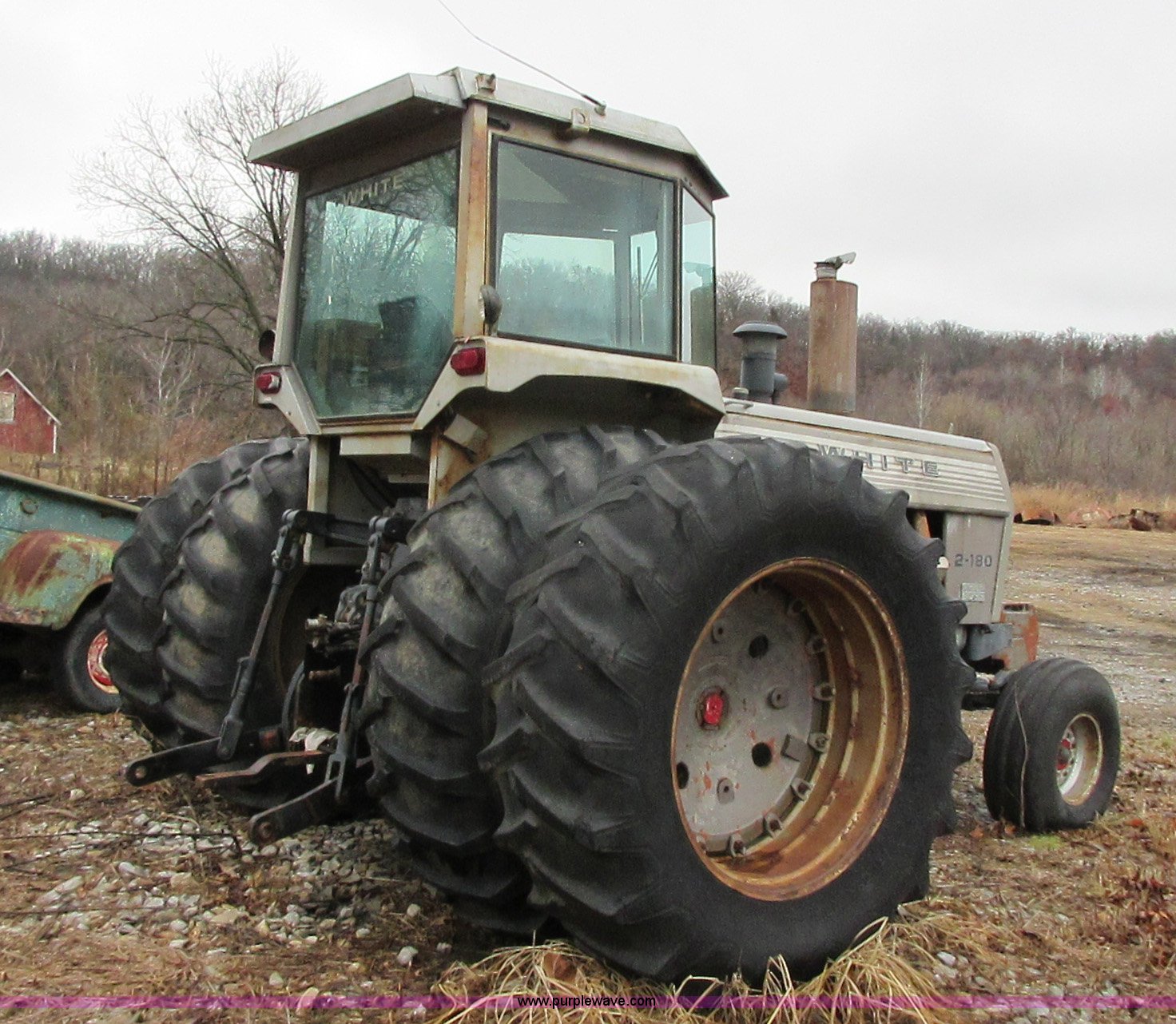 Purple Wave is selling a used Tractor in Oklahoma. This item is a 1980 White 2-180 tractor with the following: 4,168 hours on meter, Caterpillar 3208 eight cylinder diesel engine, Serial 90N45775, 18F-3R gears, Differential lock, AC and heat, Tilt steering wheel, AM/FM, Suspension seat, Three point, Top link, 1000 PTO, (2) rear hydraulic remote sets, (6) suitcase weights, 11.00-16 front tires, 20.8-38 dual rear tires, Serial 294679-417