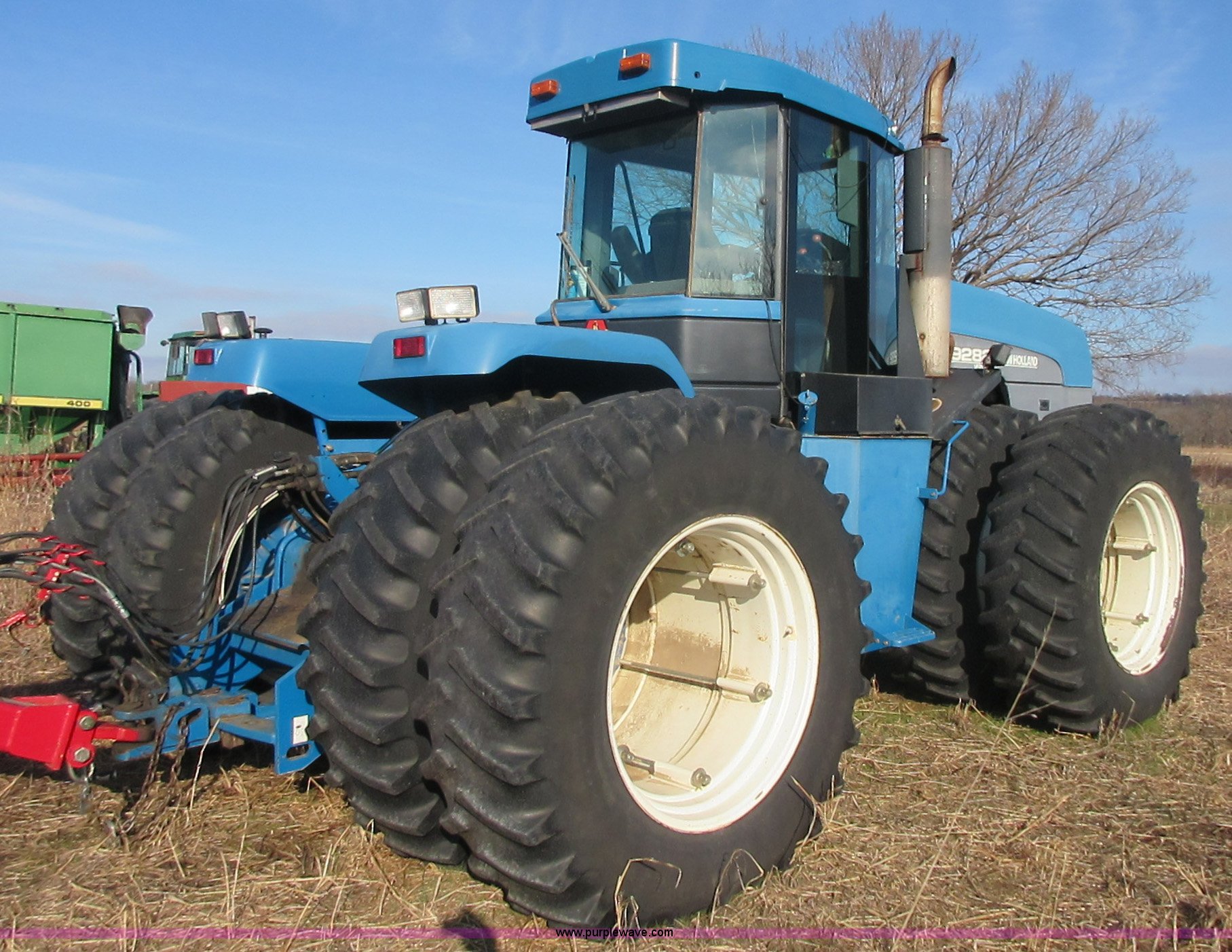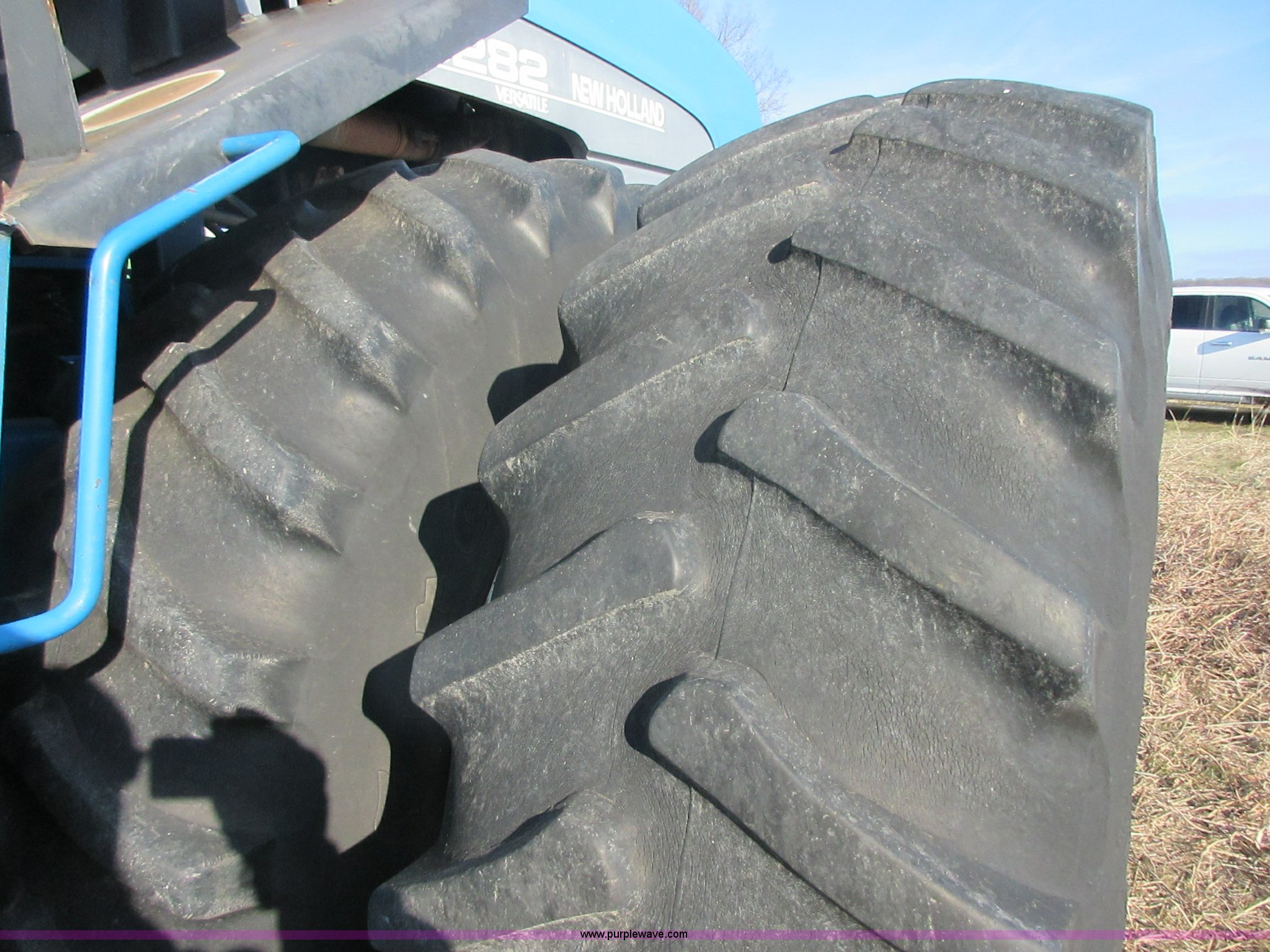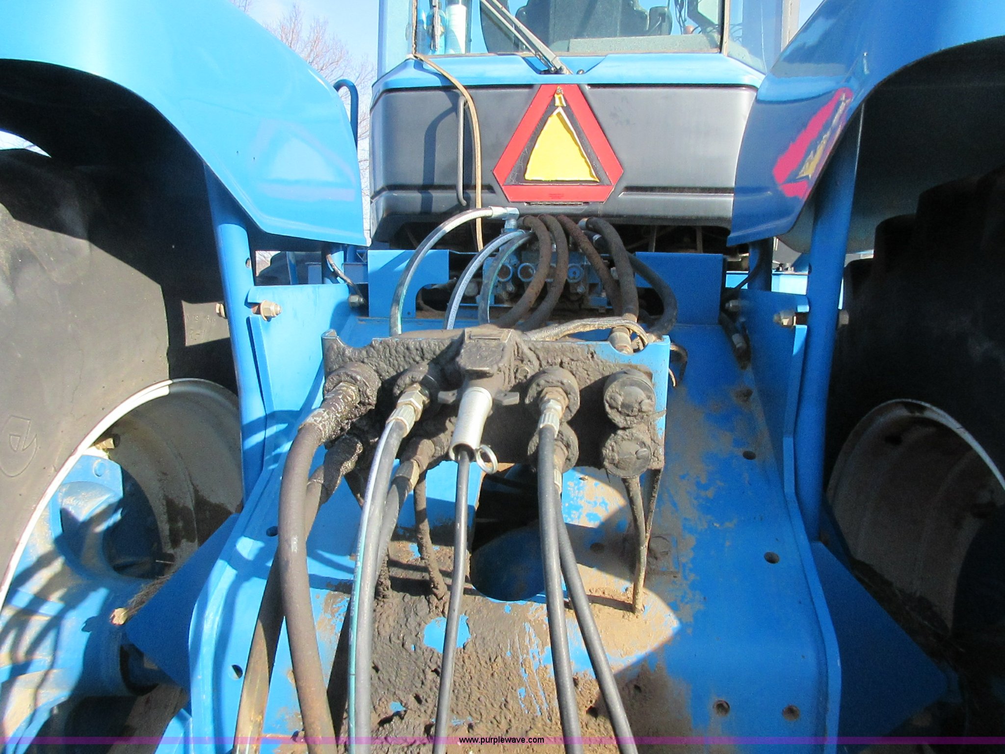 Purple Wave is selling a used Articulated 4-Wheel Drive Tractor in Oklahoma. This item is a 1997 New Holland 9282 4WD tractor with the following: 5,822 hours on meter, Cummins 8.3L six cylinder turbo diesel engine, Serial 45482774, Quadra-Sync transmission, 12F-4R gears, AC and heat, Tilt steering wheel, AM/FM/CD, Suspension seat, Ether start, Seven pin outlet, (4) rear hydraulic remote sets, Firestone 20.8R38 dual tires, Serial D105475