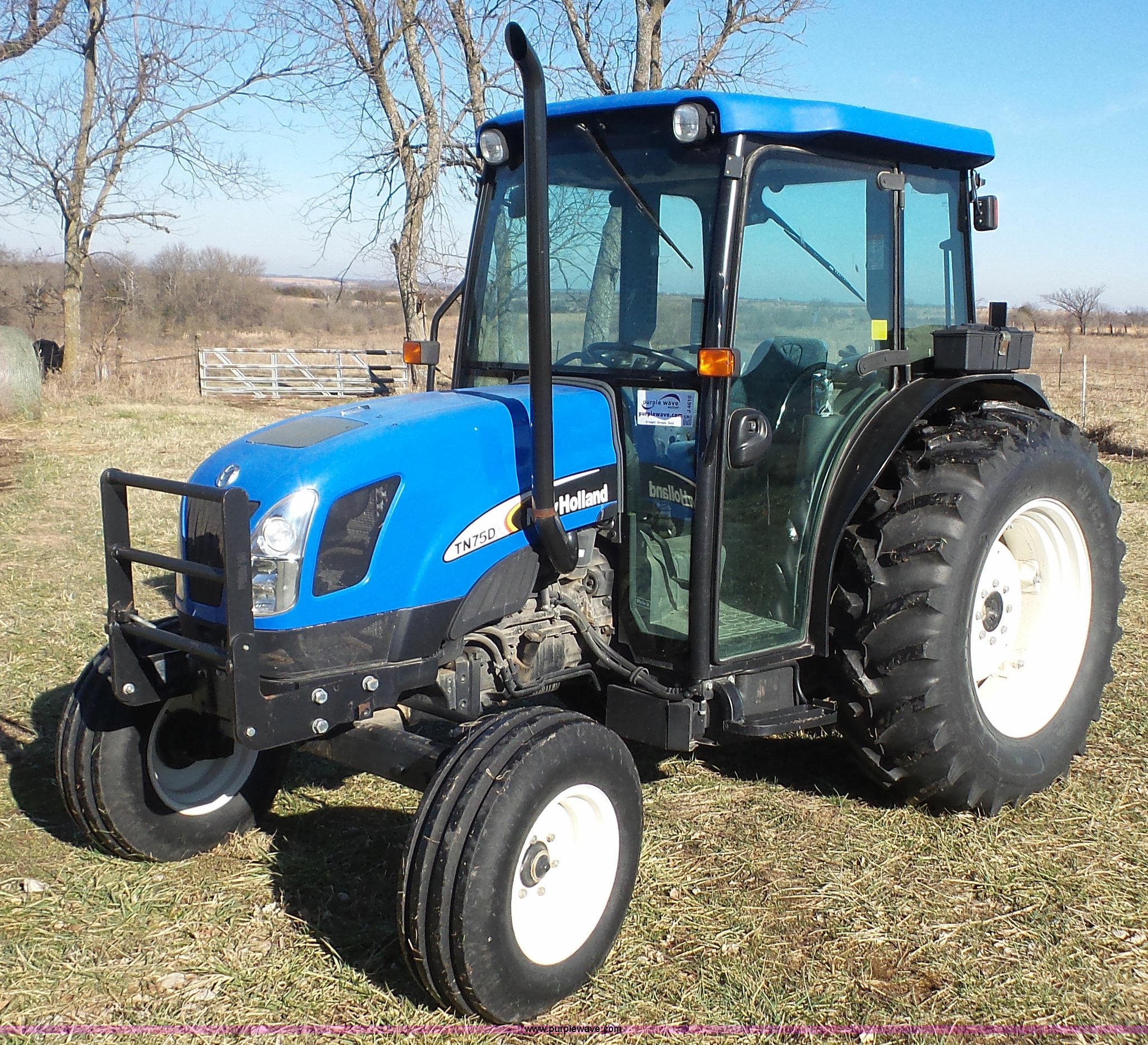 Purple Wave is selling a used Tractor in Kansas. This item is a 2004 New Holland TN75DA tractor with the following: 428 hours on meter, Iveco 2.9L three cylinder turbo diesel engine, 75 HP, Synchro transmission, 16F-16R gears, Left-Hand reverser, AC and heat, AM/FM, Non-operational, Loader joystick controls, No valve body, Grill guard, Three point, Top link, 540 PTO, (2) rear hydraulic remote sets, 9.5L-15 front tires, 16.9-30 rear tires, Non-operational radio, Serial HJE000508