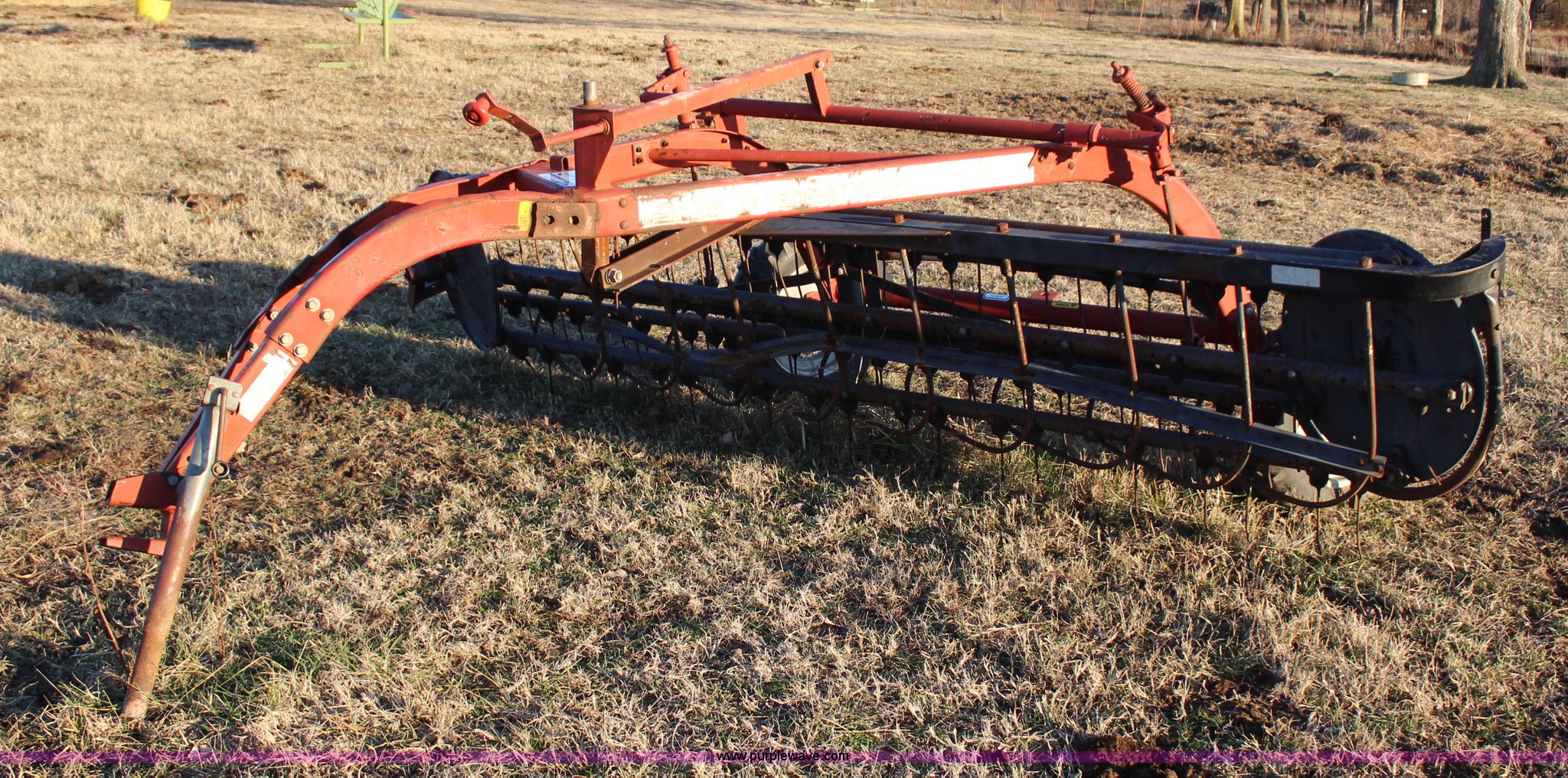 Purple Wave is selling a used Hay Rake in Oklahoma. This item is a Case IH hay rake with the following: 24" wheels, Jack stand, Pin hitch, Rear pin hitch, 5.00-15 tires, Serial CCB0004166
