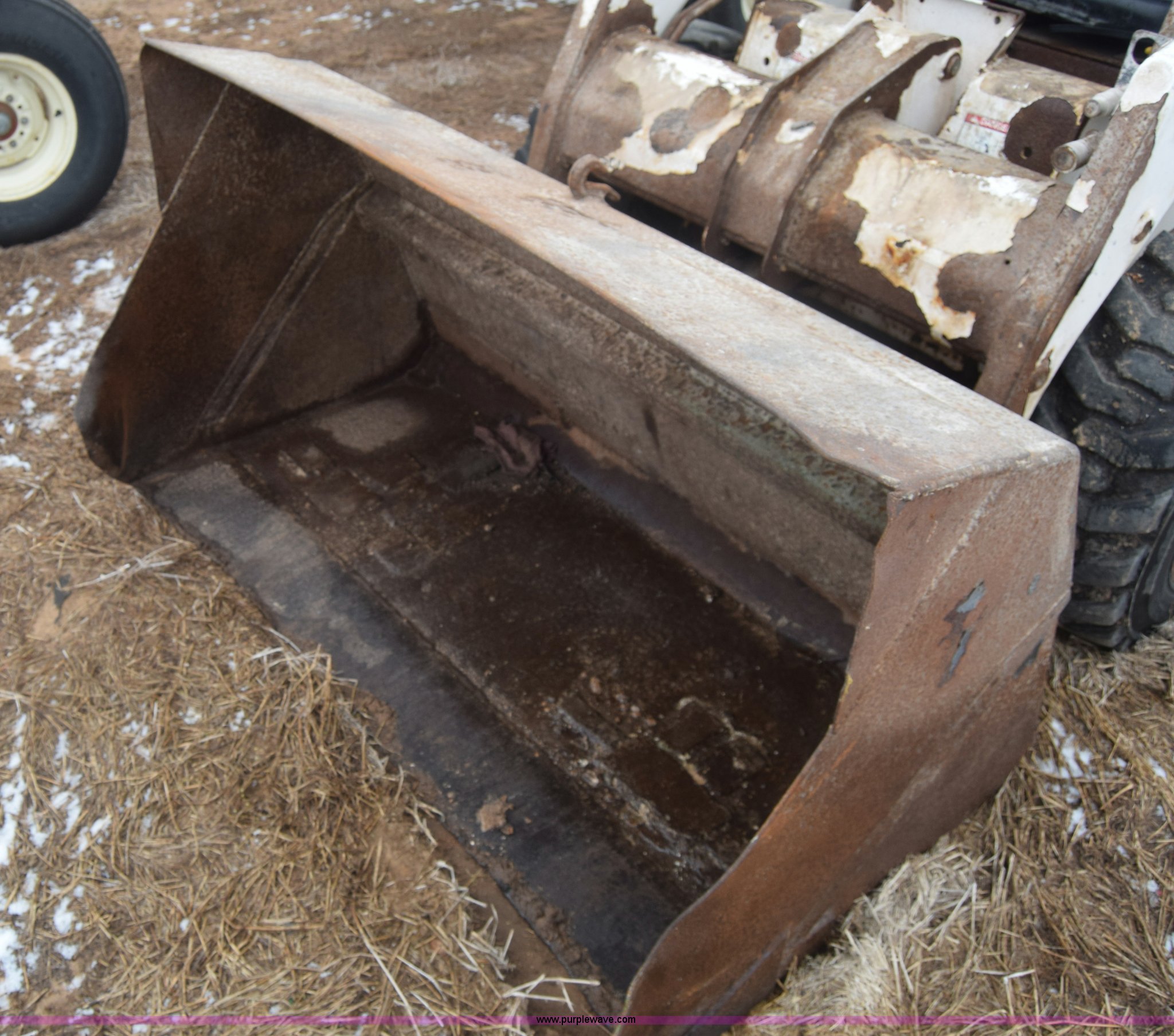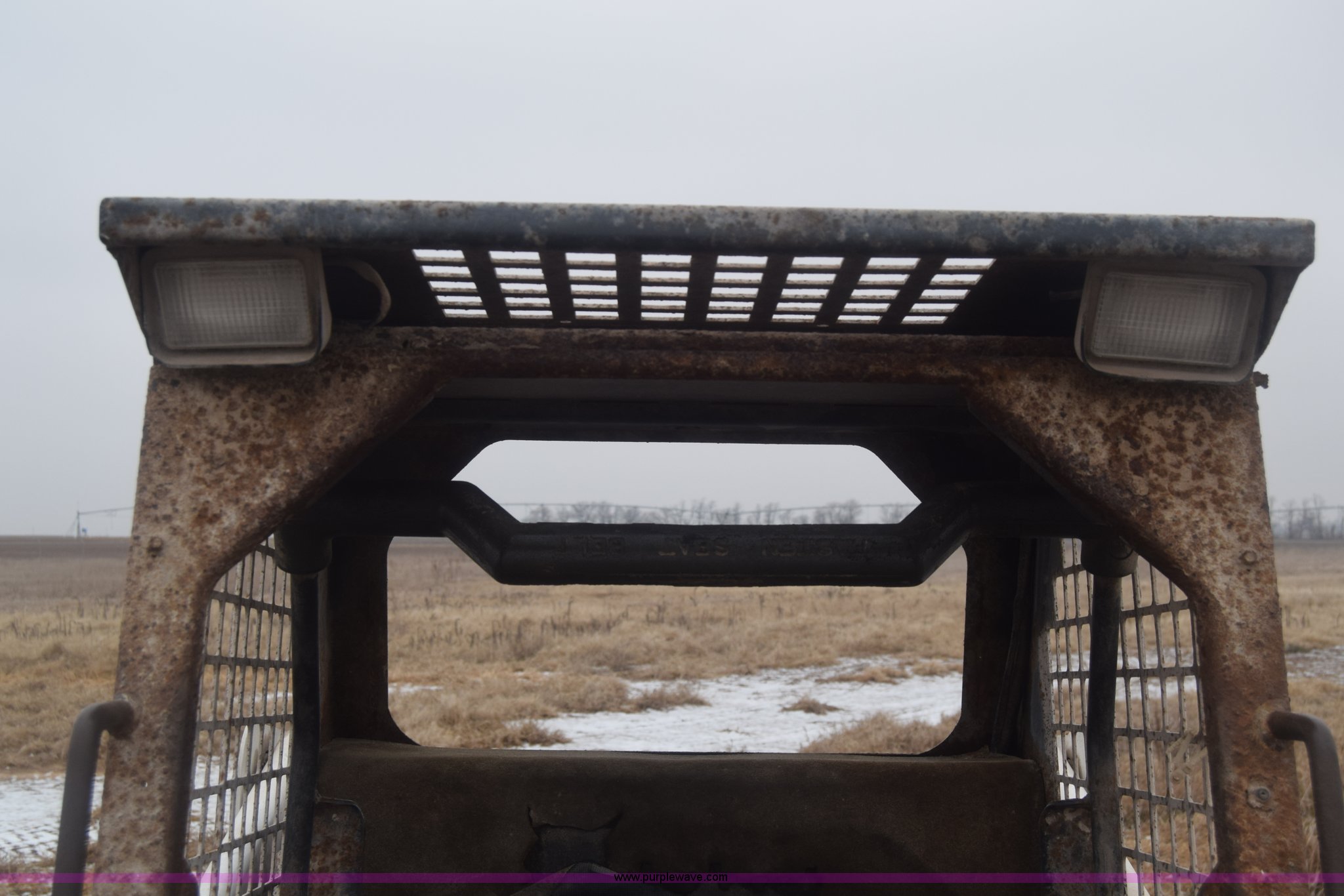 Purple Wave is selling a used Skid Steer Loader in Kansas. This item is a 1994 Bobcat 10 skid steer with the following: 1,488 hours on meter, Four cylinder diesel engine, Hydrostatic transmission, Open station/canopy, Hand and foot controls, Spring suspension seat, Front and rear work lights, Auxiliary hydraulics, 5'W bucket, Manual quick coupler, 10-16.5 tires, 4,777 lbs. base operating weight, Serial 7348514714903