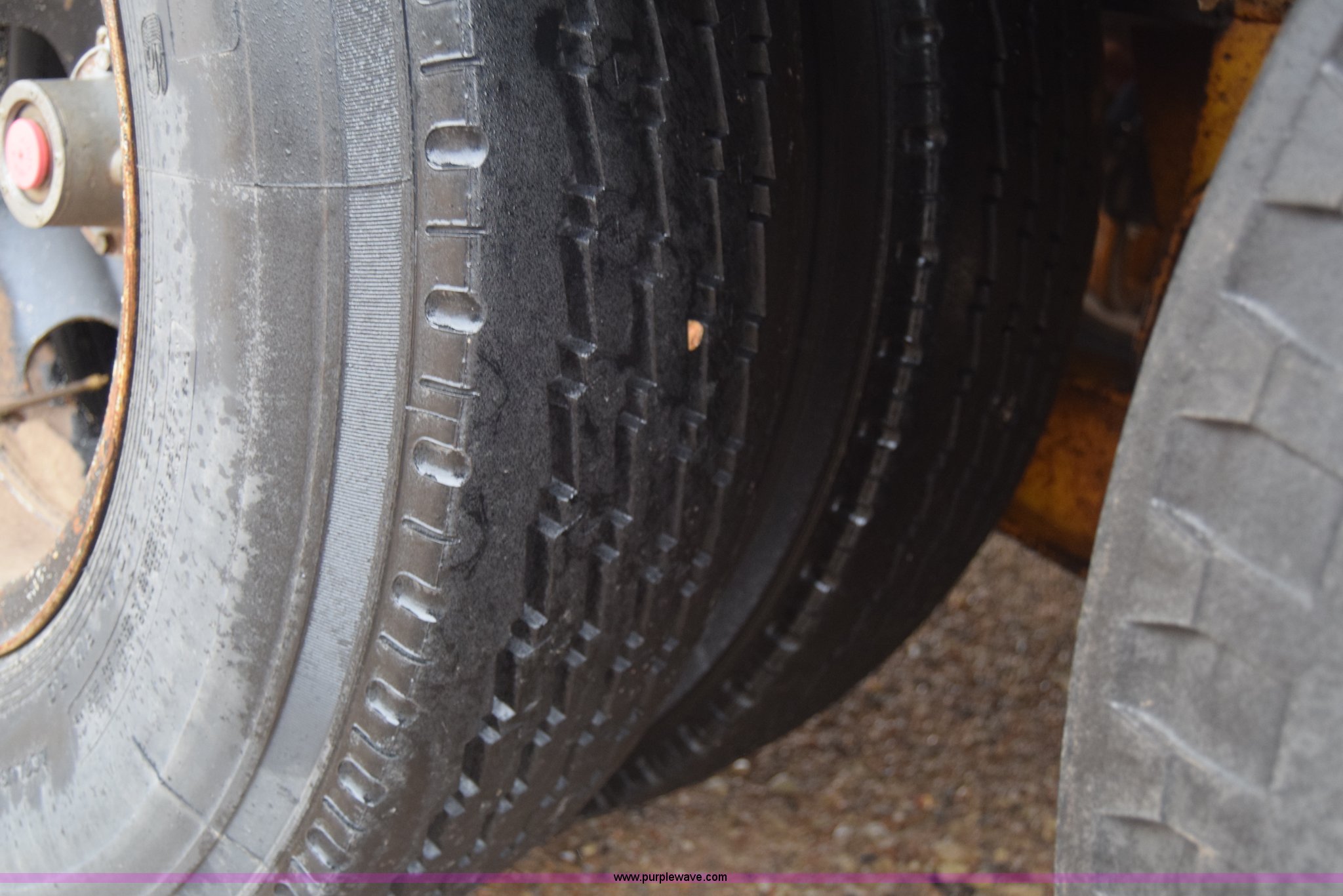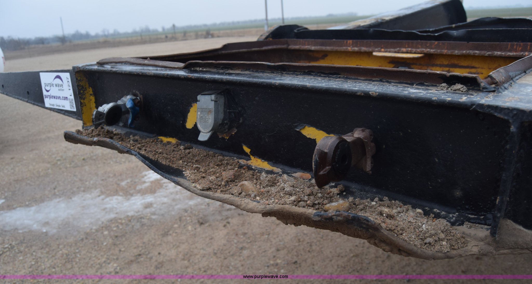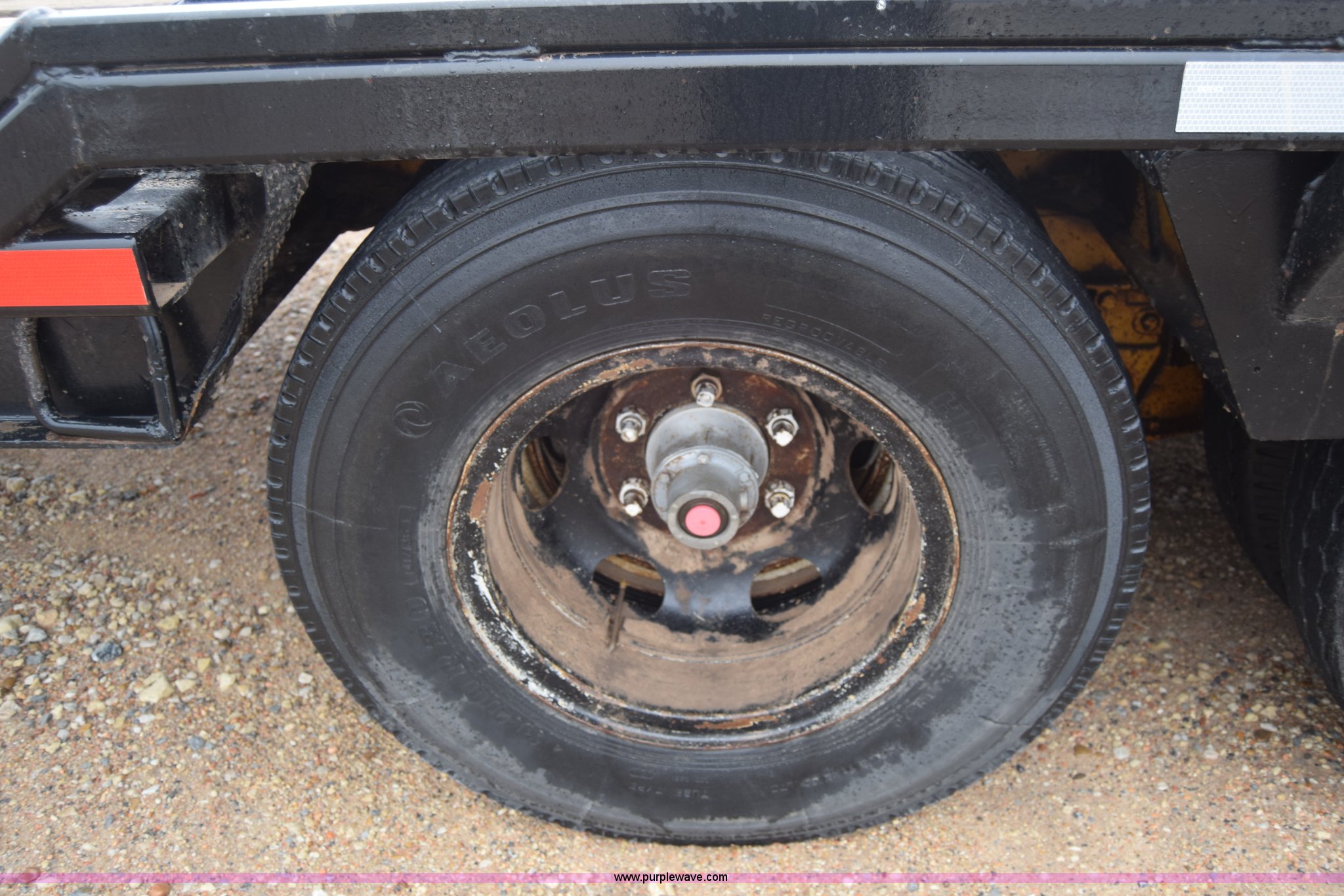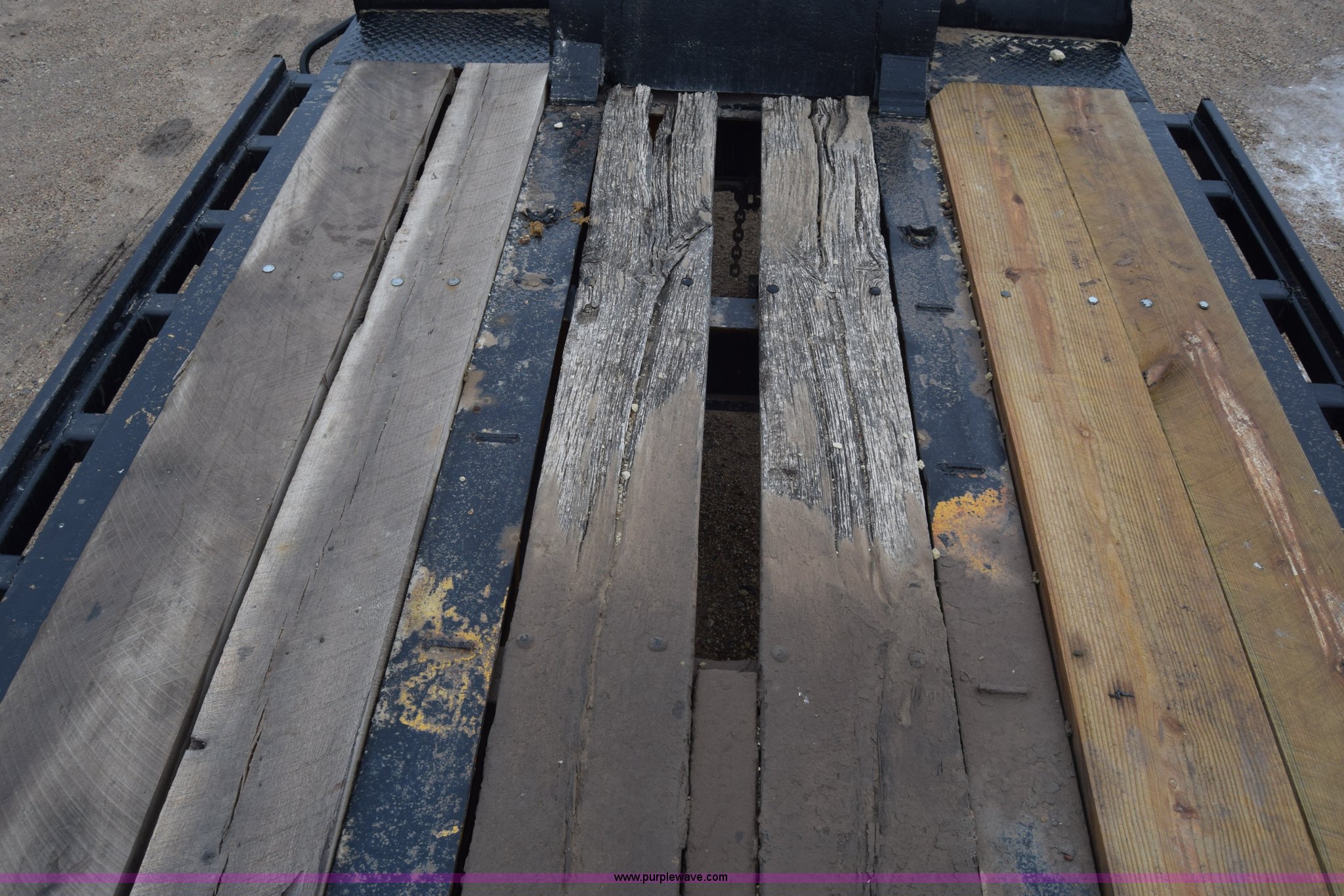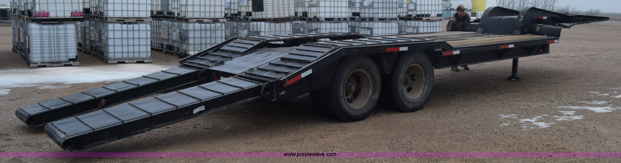 Purple Wave is selling a used Equip. Trailer in Kansas. This item is a 1955 Mart equipment trailer with the following: 35'L x 9'W overall, 25'L deck, D-ring tie downs, 8'L x 28" steel fold down ramps, Wood floor, Fifth wheel hitch, Air brakes, Tandem axle, 9.00-20 tires