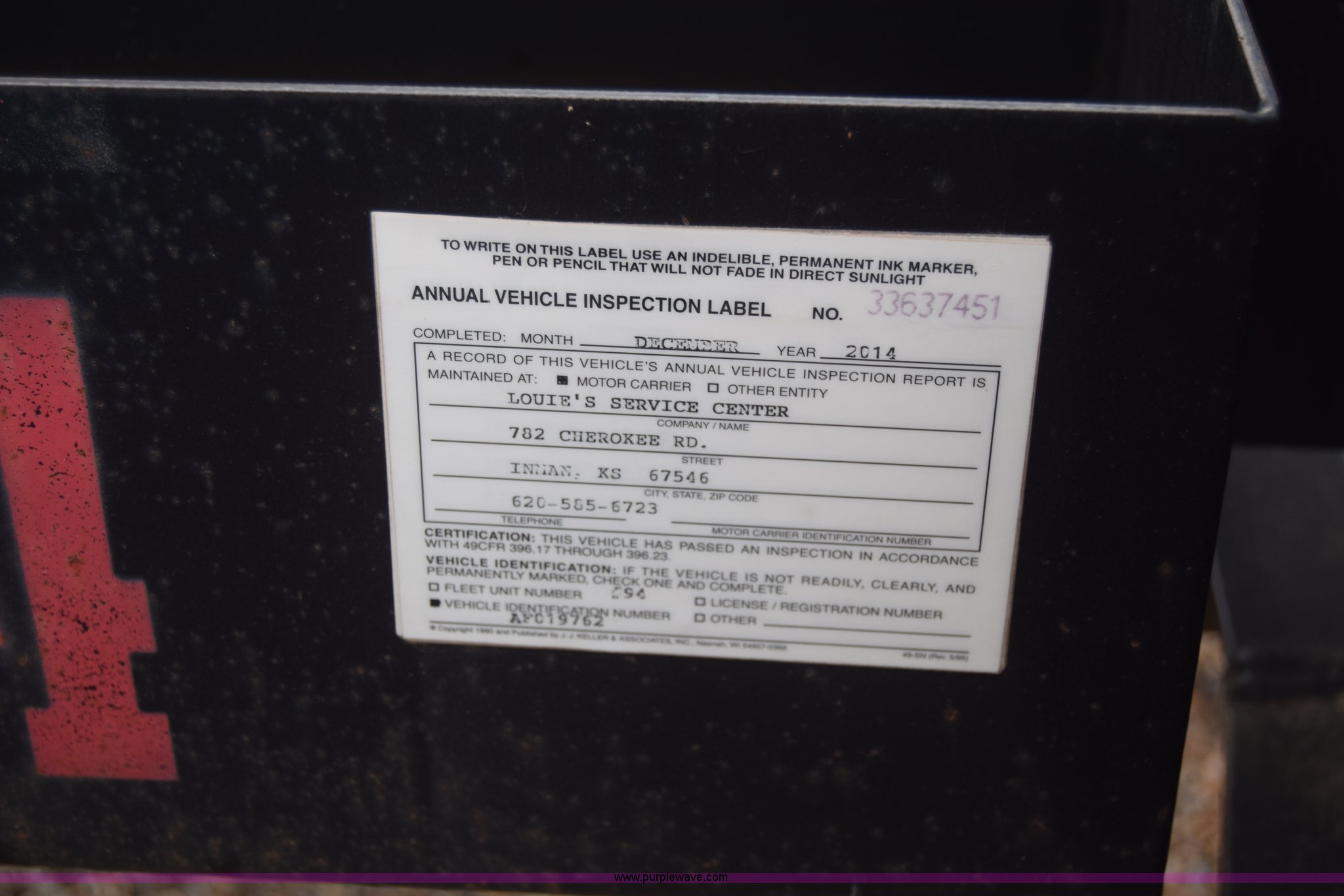 2010 Behnke sprayer trailer. 30'L x 103"W overall, 21'L deck, 43"L x 18"W rear loading ramps, 20"W flip down side ramps, Steel deck, Pintle hitch, Holland landing gear, Fenders, Safety chains, Air brakes, Tandem axle, Oil bath hubs, 255/70R22.5 tires, GVWR 45,000 lbs. 4L5AB452XAF019762. Central Prairie Coop. 1775 State Route 14. Sterling, KS 67579