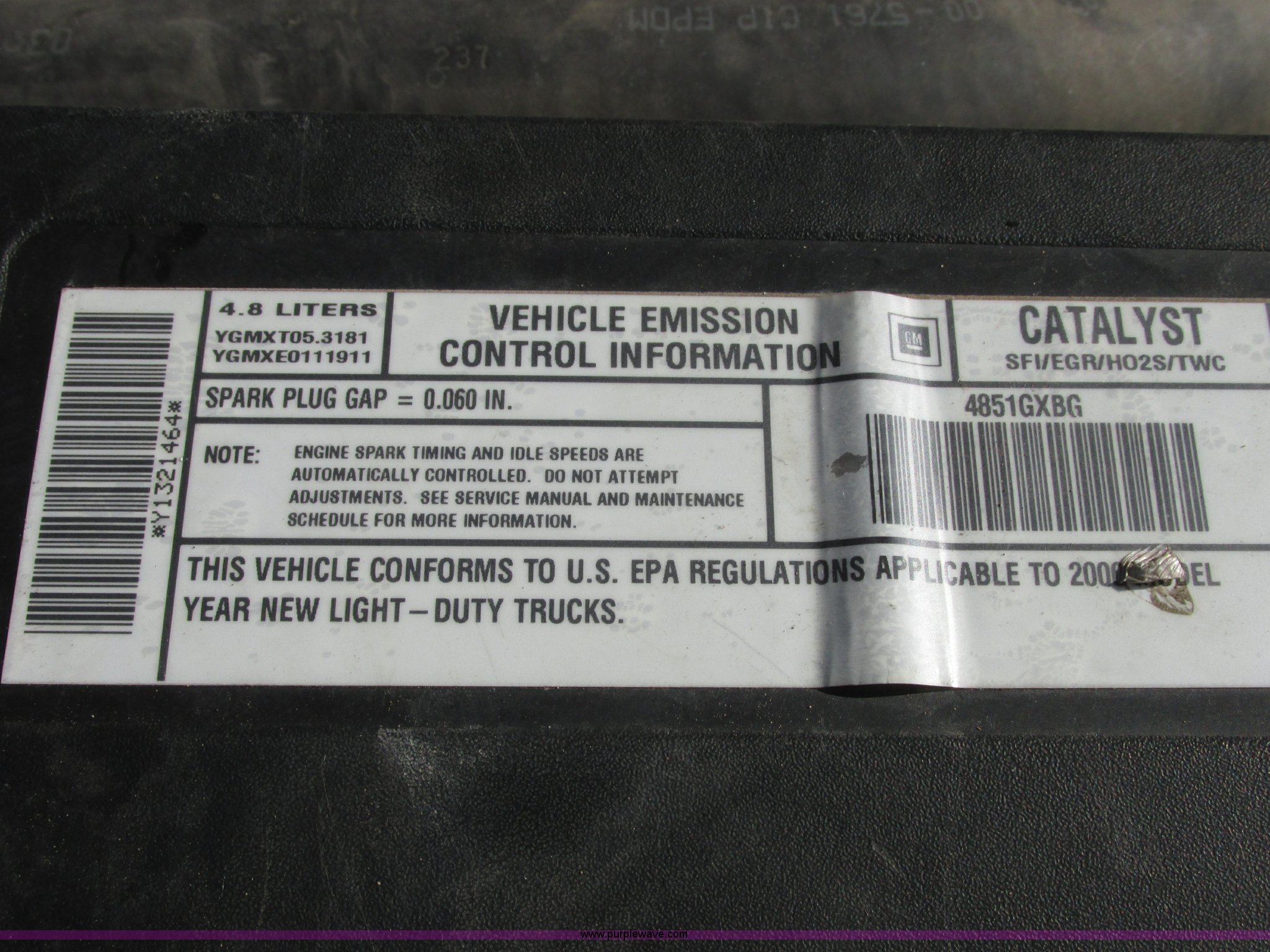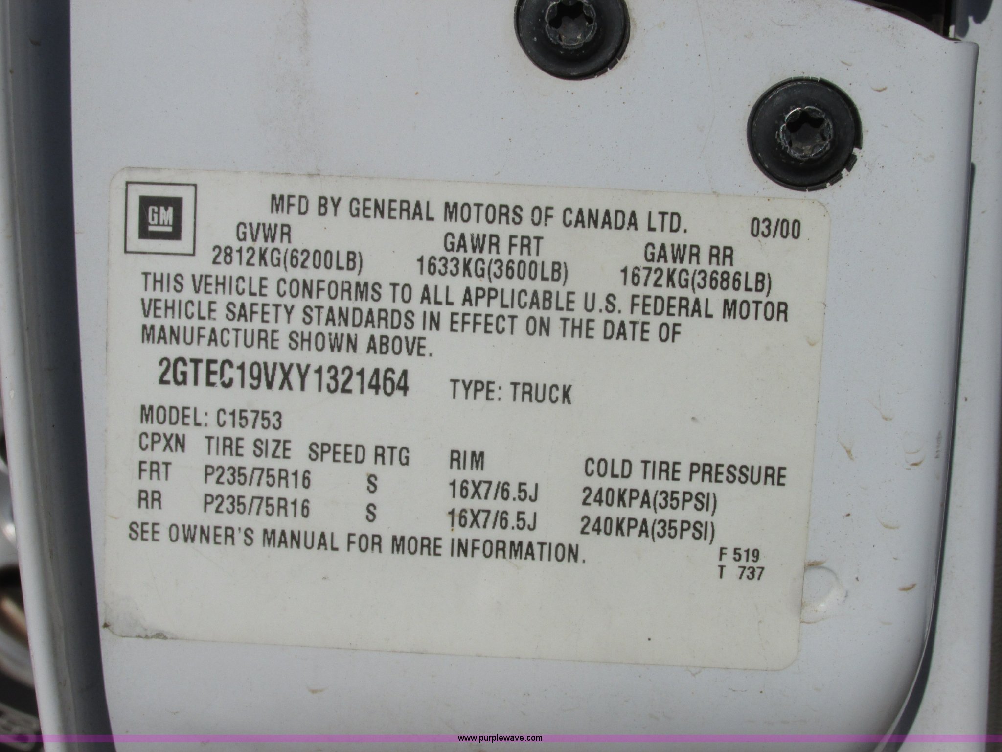 Purple Wave is selling a used 1/2 Ton Pickup or Van in Oklahoma. This item is a 2000 GMC Sierra 1500 Ext. Cab pickup truck with the following: 206,806 miles on odometer, 4.8L V8 OHV 16V gas engine, Automatic transmission, AC and heat, Tilt, Cruise, AM/FM/CD, Power windows, locks, and mirrors, Cloth interior, Receiver hitch, Trailer wiring, LT255/70R16 tires, Interior/exterior cosmetic damage, Paint chipping