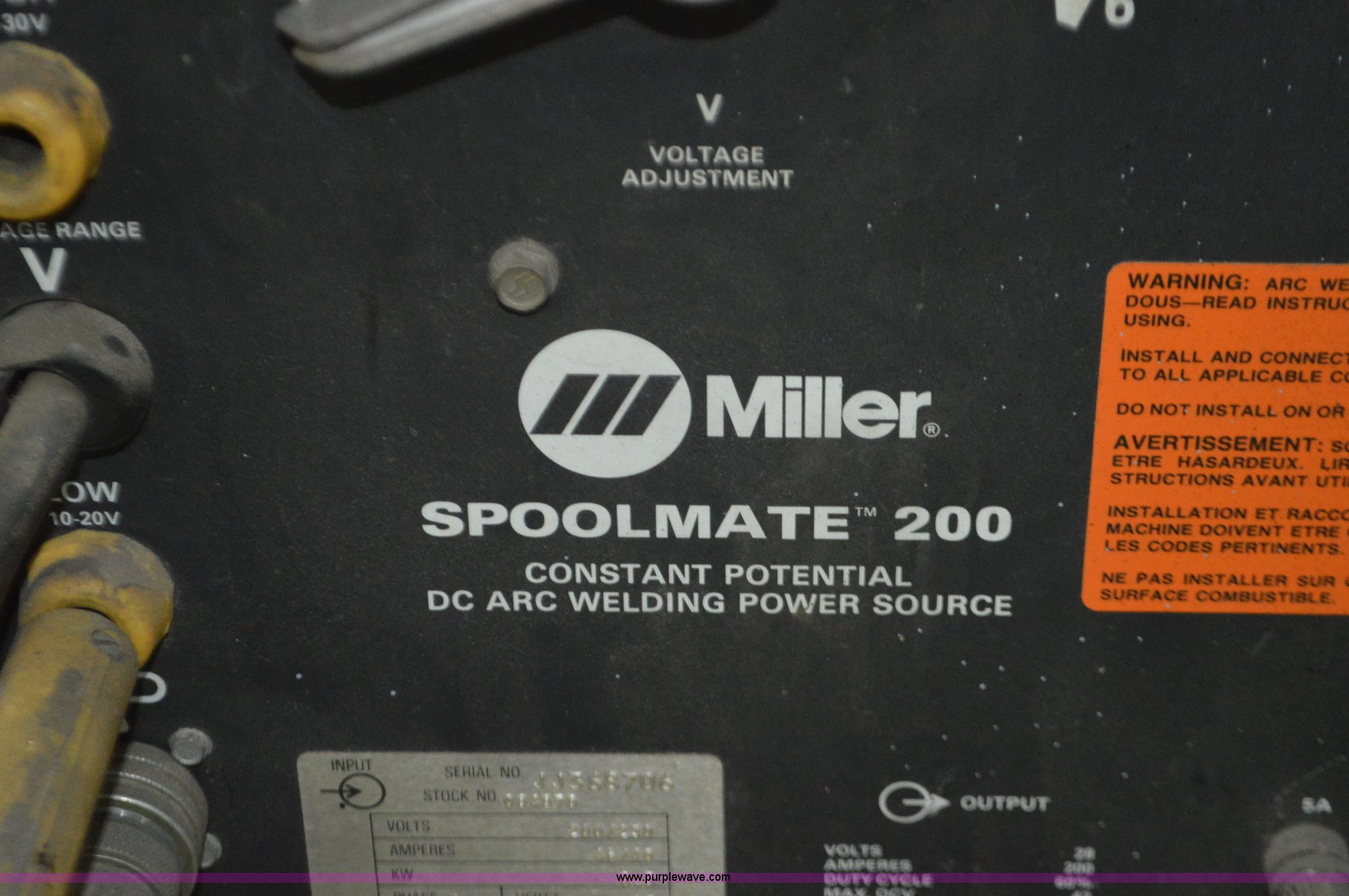 Purple Wave is selling a used Welder (Manual) in Missouri. This item is a Miller Spoolmate 200 welder with the following: 28V, 200 amps, 60 percent duty cycle, 200/230V, Single phase, Serial JJ368706