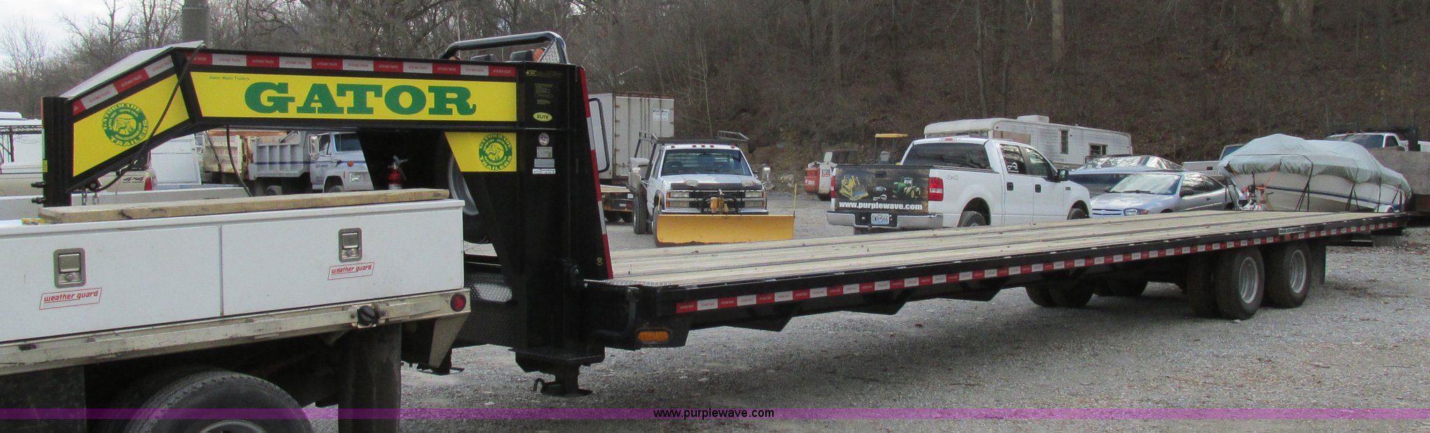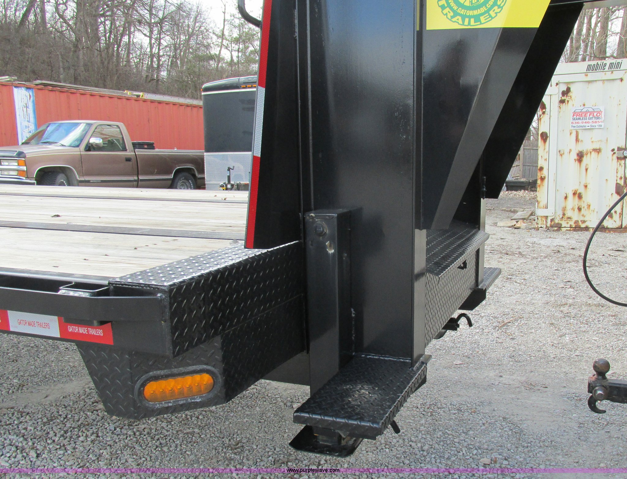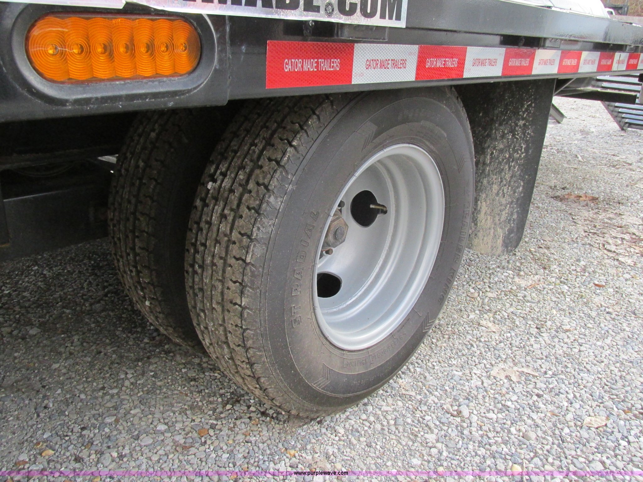 Purple Wave is selling a used Equip. Trailer in Missouri. This item is a 2015 Gatormade equipment trailer with the following: 40'L, 8'L x 20"W ramps, Wood deck, Stake side pockets, Rub rails, Toolbox, Dual leg landing gear, Trailer brake-away system, ST235/80R16 tires, GVWR 14,600 lbs, One owner