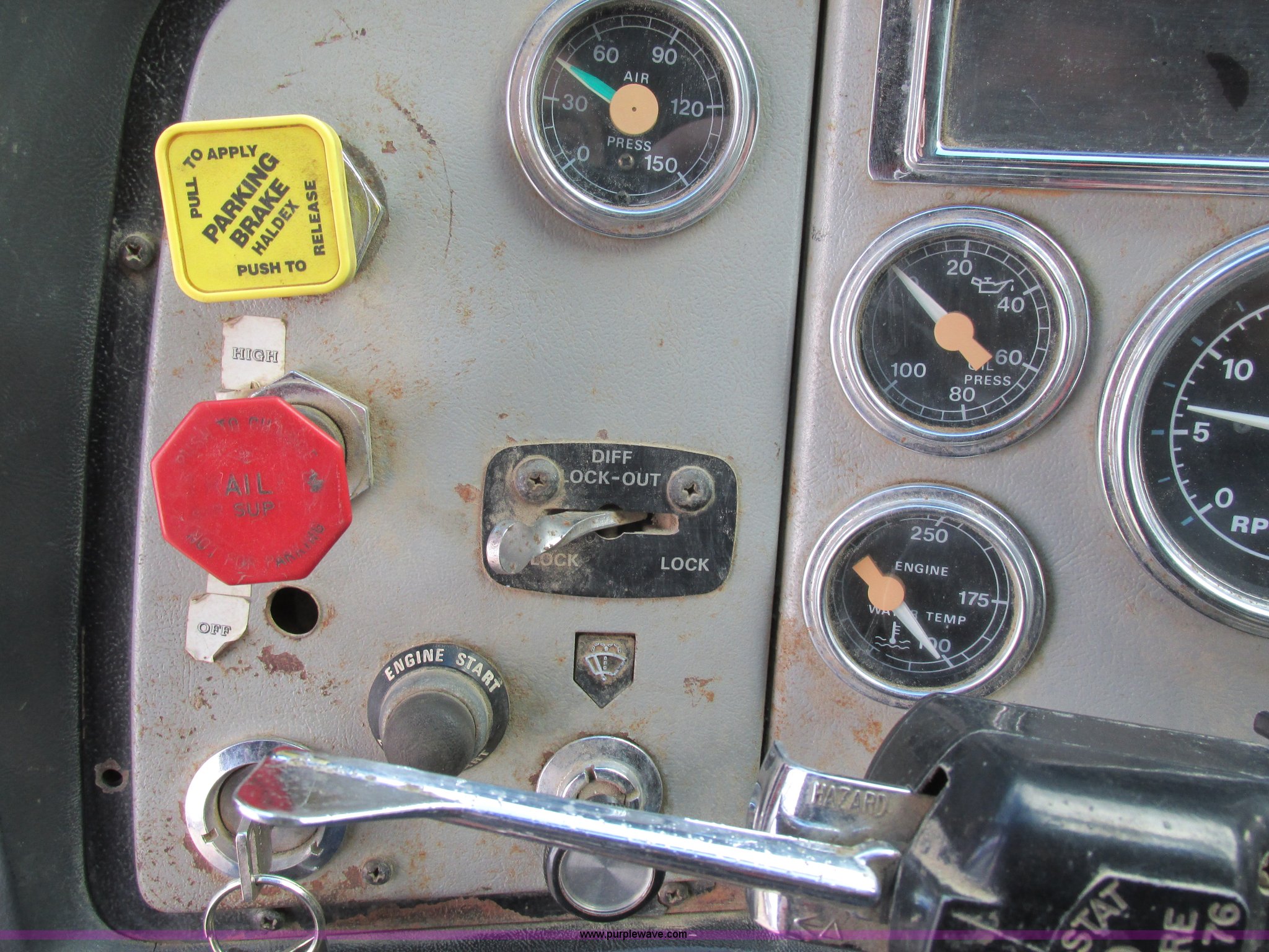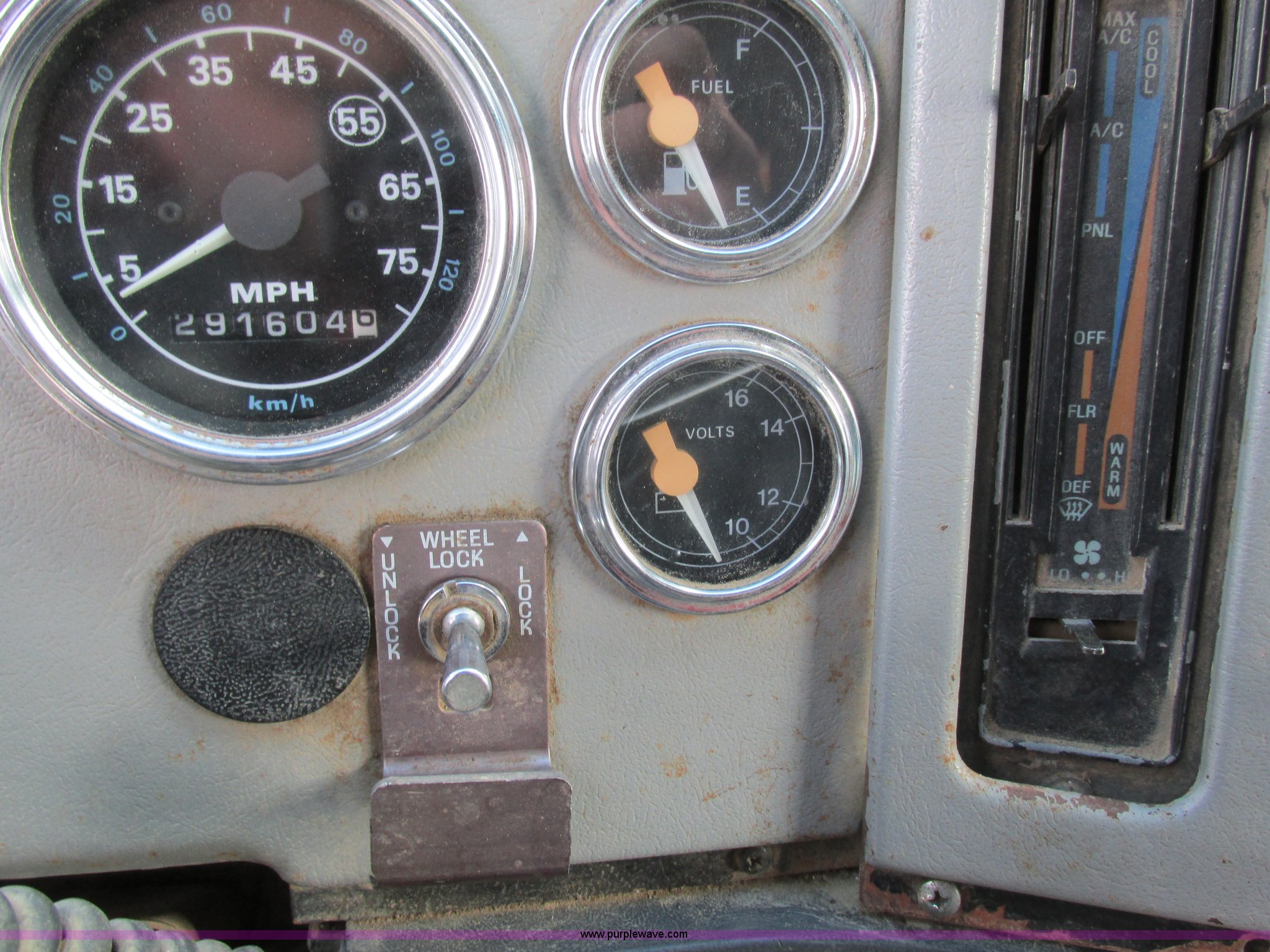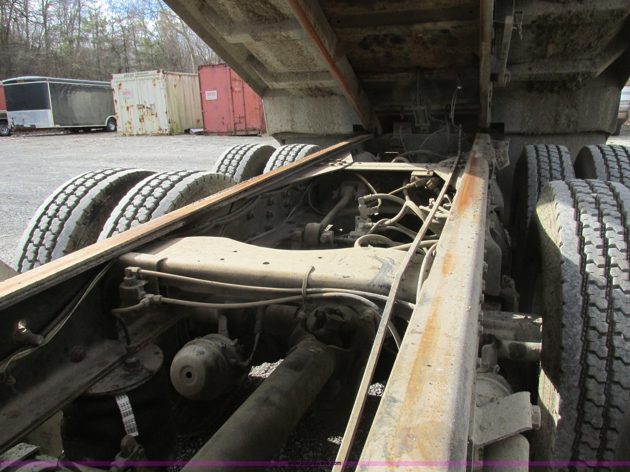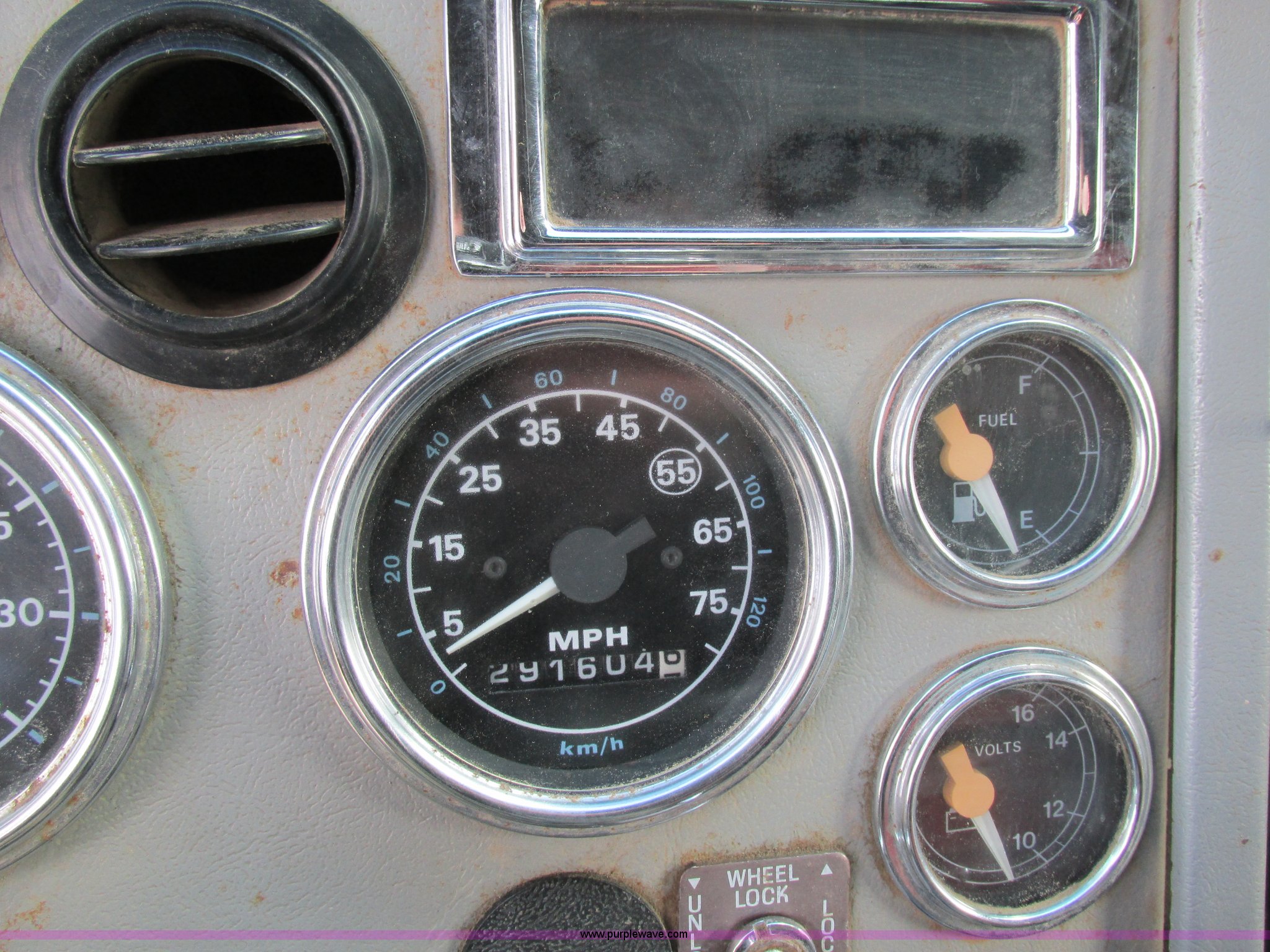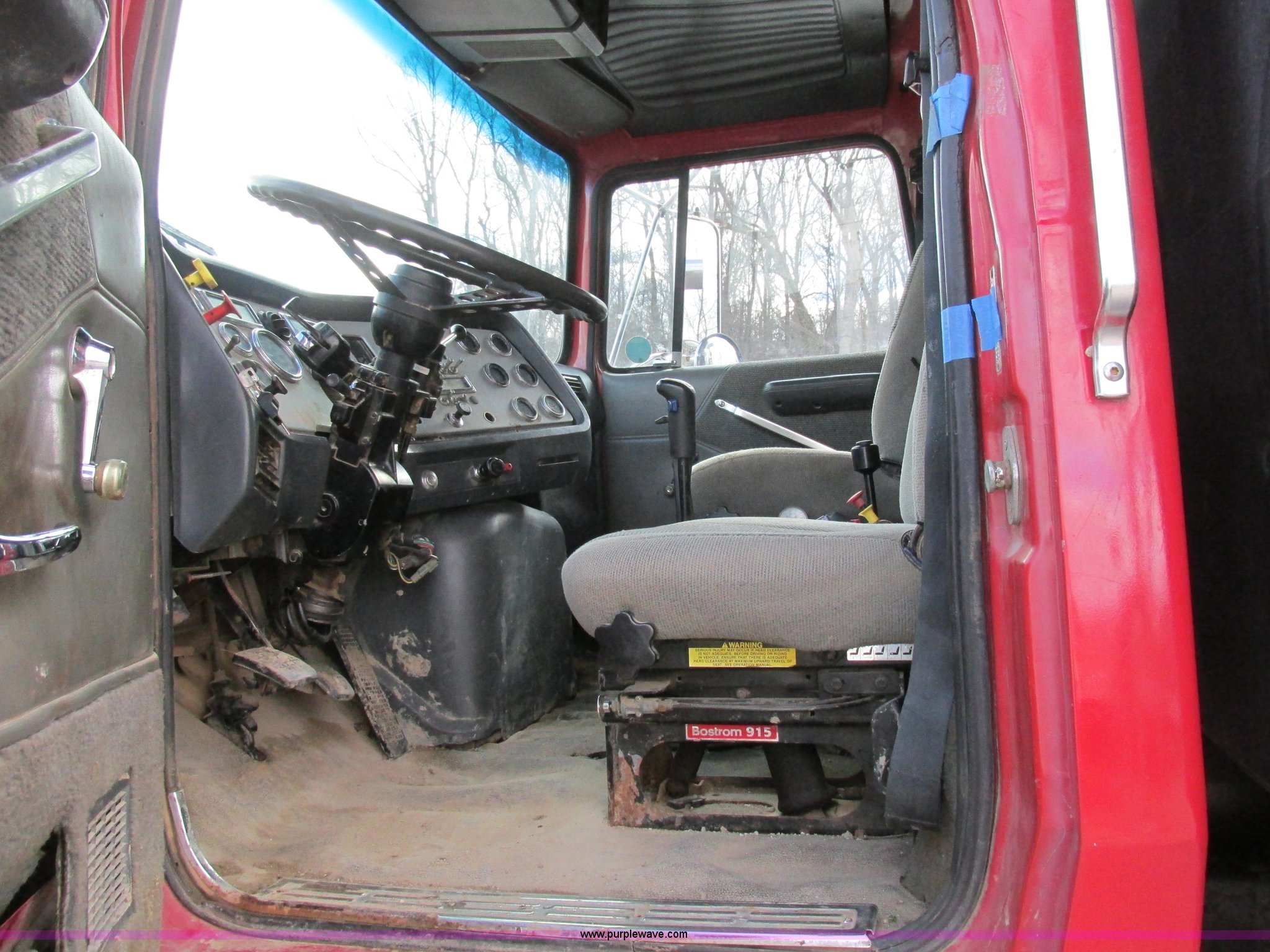 Purple Wave is selling a used Construction Dump Truck in Missouri. This item is a 1995 Ford LT9000 dump truck with the following: 291,604 miles on odometer, Miles may vary, vehicle is still in use, Caterpillar 3406 14.6L L6 turbo diesel engine, 358 HP, Serial 8PN04439, Eight speed manual transmission, Triple axle, AC and heat, PTO, 15.5'L steel dump bed, 46" side height, Single ram three stage hoist, Air operated end gate, Roll-over tarp, Single fuel tank, Double frame, Spring over walking beam suspension, Air brakes, Pusher lift axle, 385/65R22.5 tires