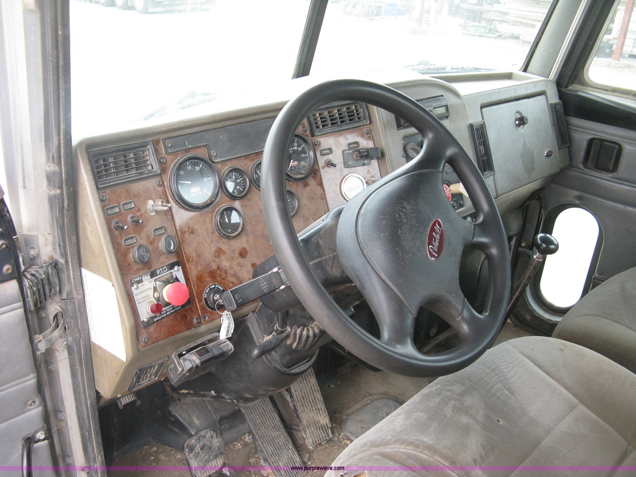 Purple Wave is selling a used Service Truck in Kansas. This item is a 2002 Peterbilt 330 service truck with the following: 220,496 miles on odometer, 7,252 hours on meter, Caterpillar 3126 7.2L L6 turbo diesel engine, 275 HP, Serial CKM22656, Eaton Fuller Mid-Range Synchro six speed manual transmission, Single axle, AC and heat, Tilt, Cruise, AM/FM, Air suspension seat, Heated mirrors, Brake controller, Passenger daylight door, Block heater, Front tow hooks, Single exhaust stack, PTO, Dump valves, 17' service bed, Shelving, Work lights, Torch bottle rack, Torch hose and reel, Step-up/work rear bumper, 20"W, (2) outriggers, Receiver hitch, Trailer wiring, 4:63 gear ratio, Air suspension, Air brakes, 11R22.5 tires, GVWR 31,000 lbs, Six injectors replaced in June 2013, Chassis has been lengthened to accommodate service bed, Seat cover damage, Unit# 19N