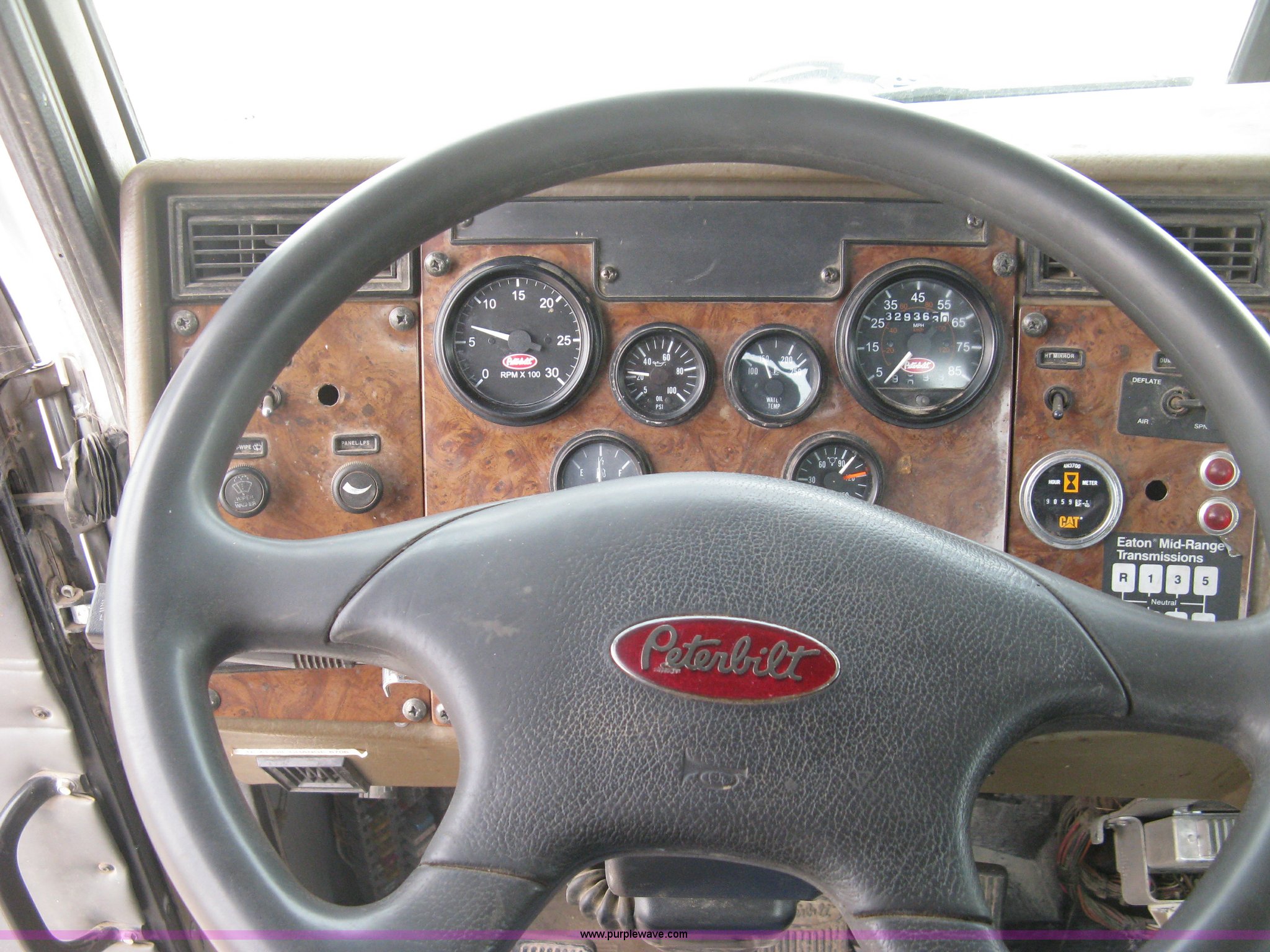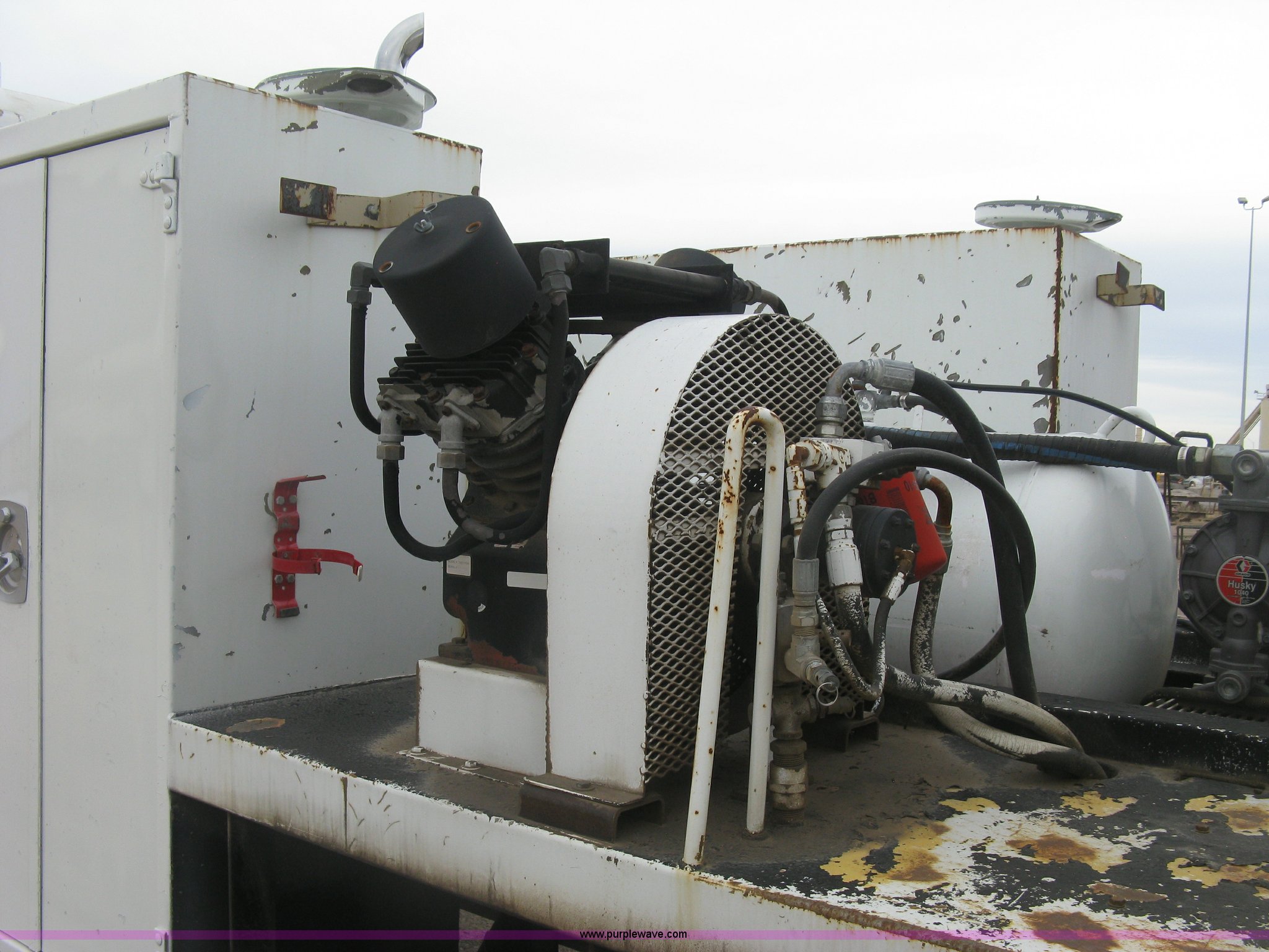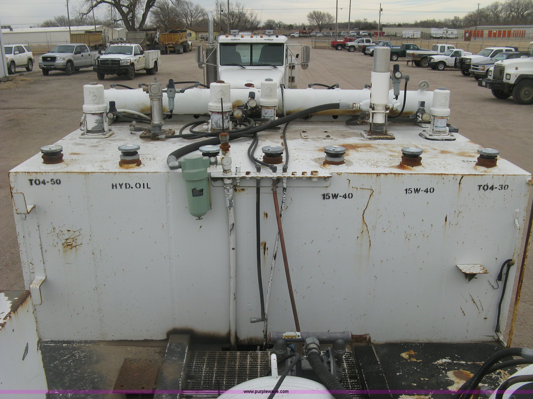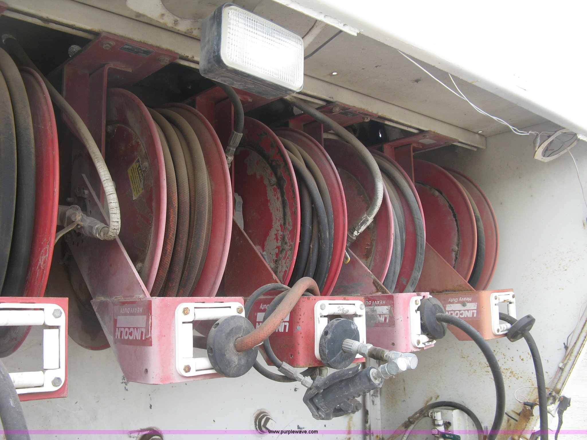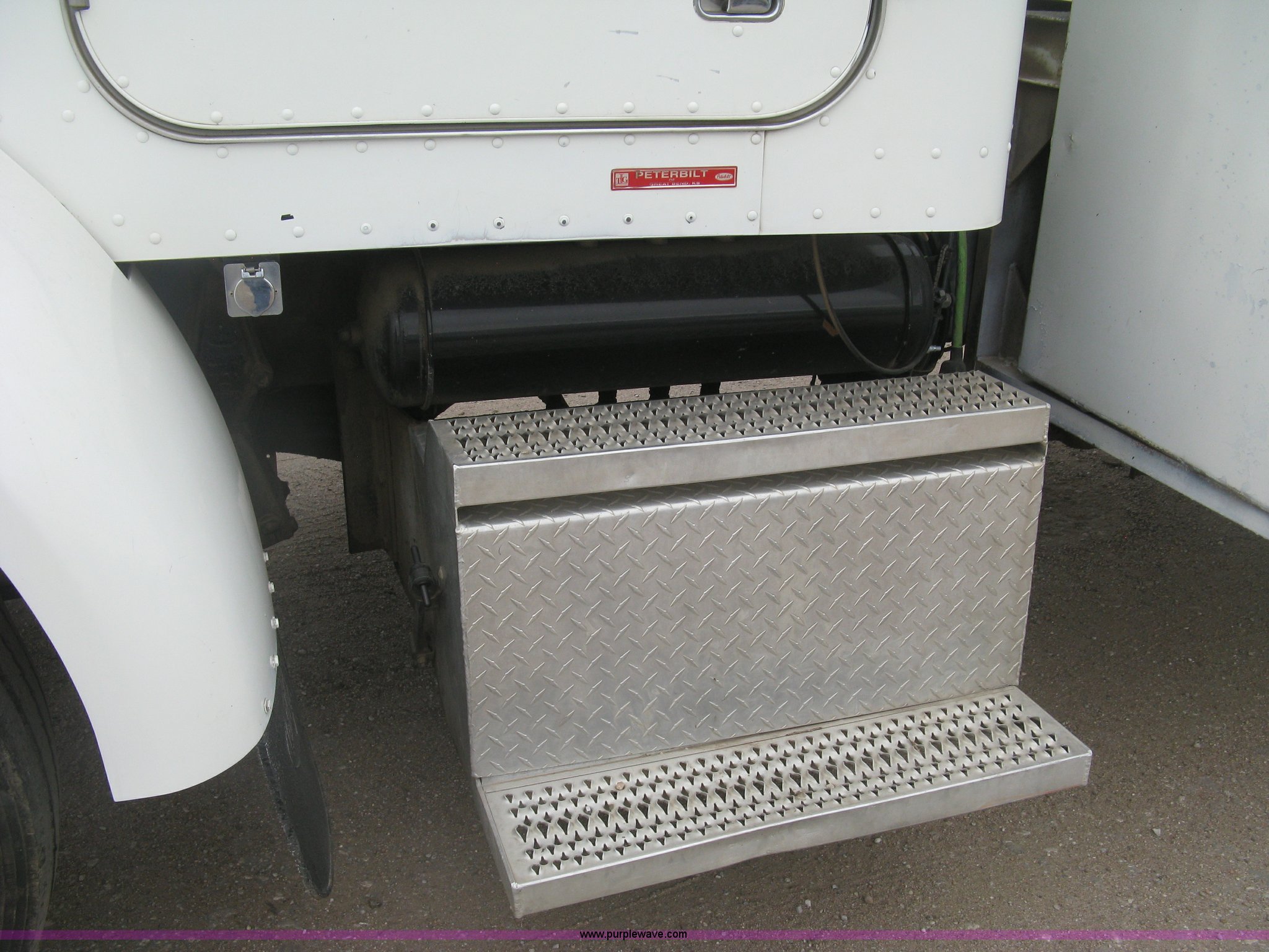 Purple Wave is selling a used Service Truck in Kansas. This item is a 2001 Peterbilt 330 service truck with the following: 329,363 miles on odometer, 9,059 hours on meter, Caterpillar 3126 7.2L L6 turbo diesel engine, 275 HP, Serial 8YL81582, Eaton Fuller Mid-Range Synchro six speed manual transmission, Single axle, AC and heat, Tilt, Cruise, AM/FM, Air suspension seat, Heated mirrors, Passenger daylight door, Block heater, Front tow hooks, Single exhaust stack, PTO, Dump valves, 18.6'L x 8'W service bed, Shelving, Air compressor, Model TX021100AV, Hose reel, Seven compartment oil/lube tank, Graco Husky 1040 waste oil pump, Hose reels, Nozzles, Hydraulic fluid, grease, motor oil, and used oil reservoirs, 4:33 gear ratio, Air suspension, Air brakes, 11R22.5 tires, GVWR 31,000 lbs, Chassis has been lengthened to accommodate service bed