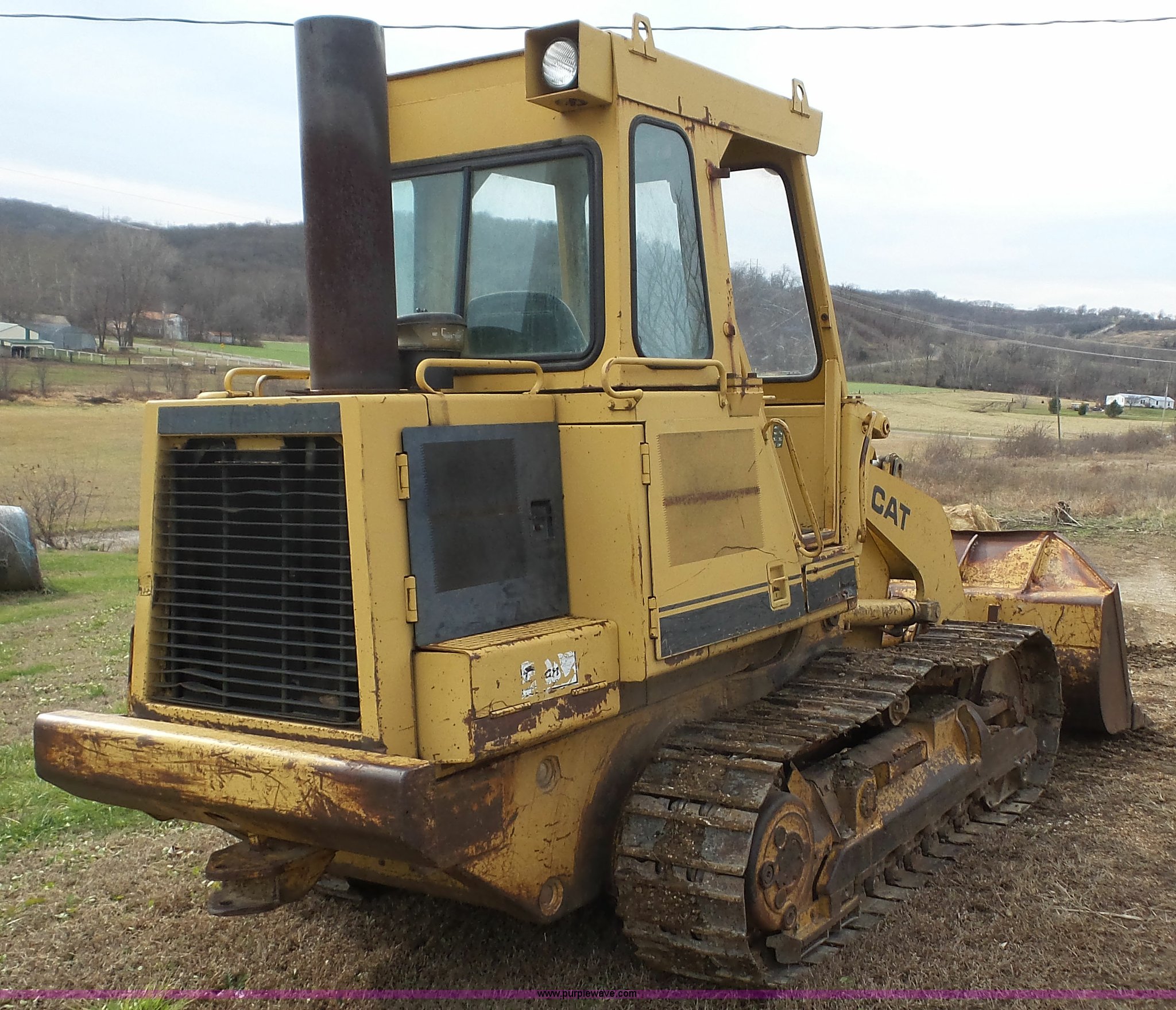 Purple Wave is selling a used Crawler Loader in Kansas. This item is a 1987 Caterpillar 943 track loader with the following: 10,833 hours on meter, Caterpillar 3204 5.2L four cylinder diesel engine, 80 HP, Hydrostatic transmission, Enclosed cab, Heat, Two-lever bucket controls, Front and rear work lights, 87"W bucket, Bolt-on cutting edge, (8) teeth, 18"W double grouser track pads, Unattached doors included, Serial 19Z00439