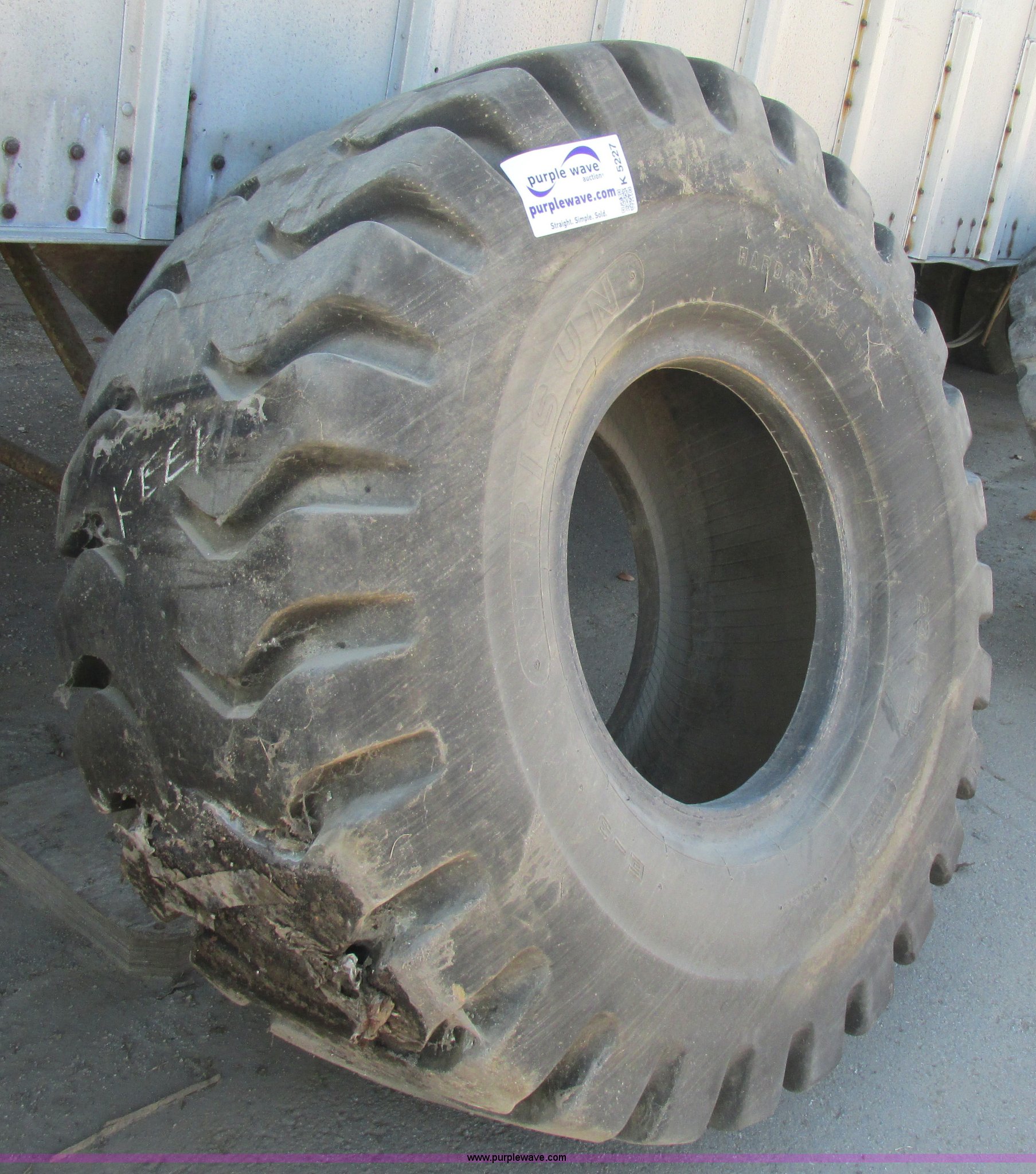 This 23.5-25 E-3 Trison tire will sell to the highest bidder regardless of price.