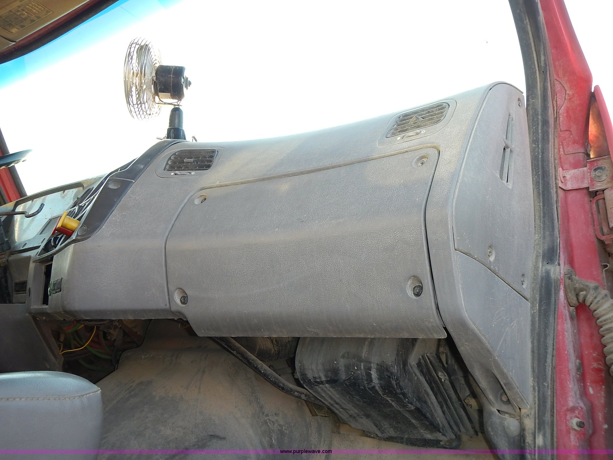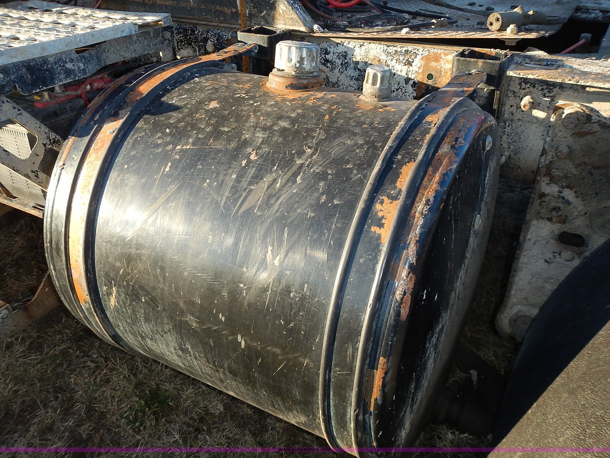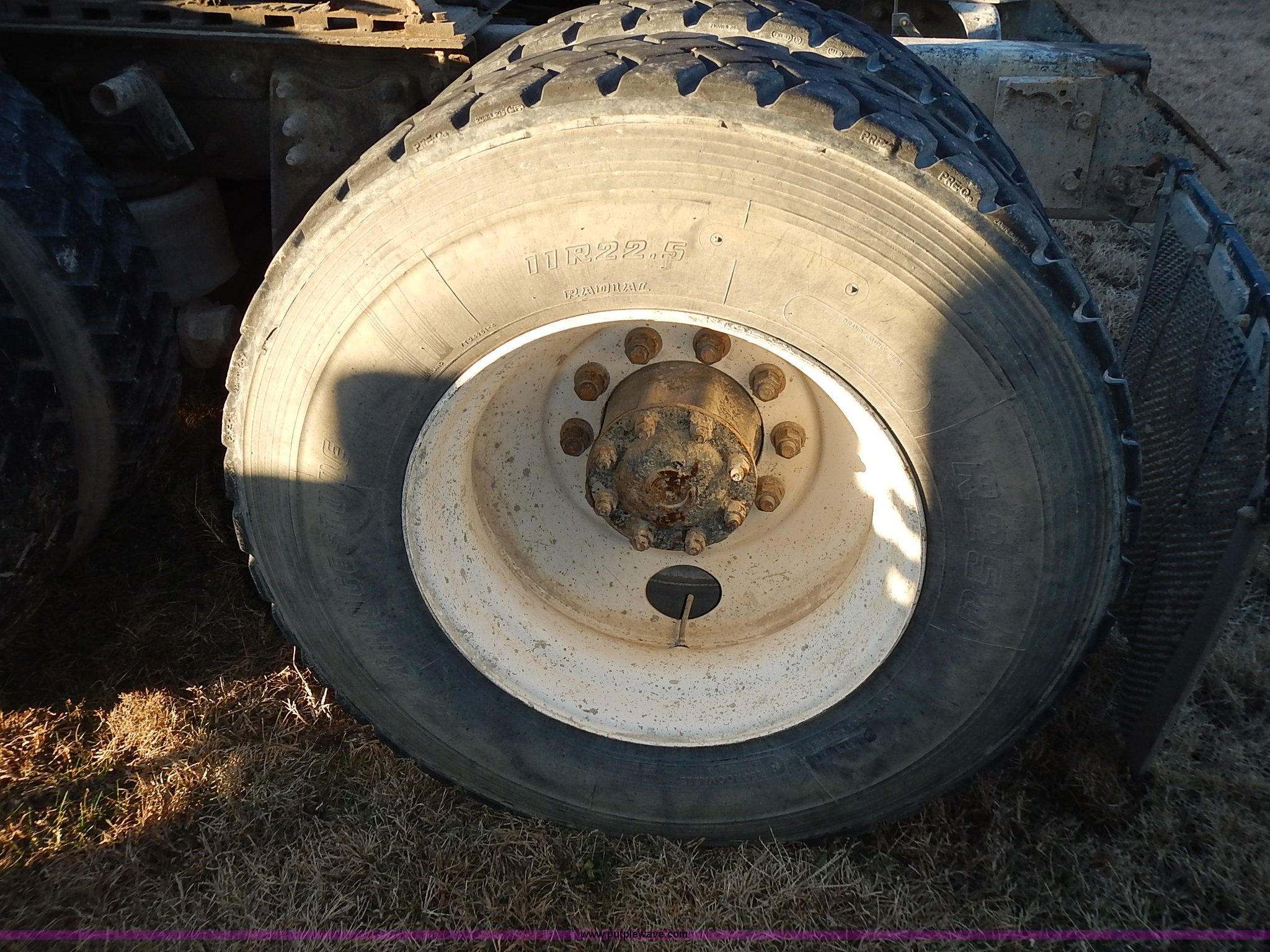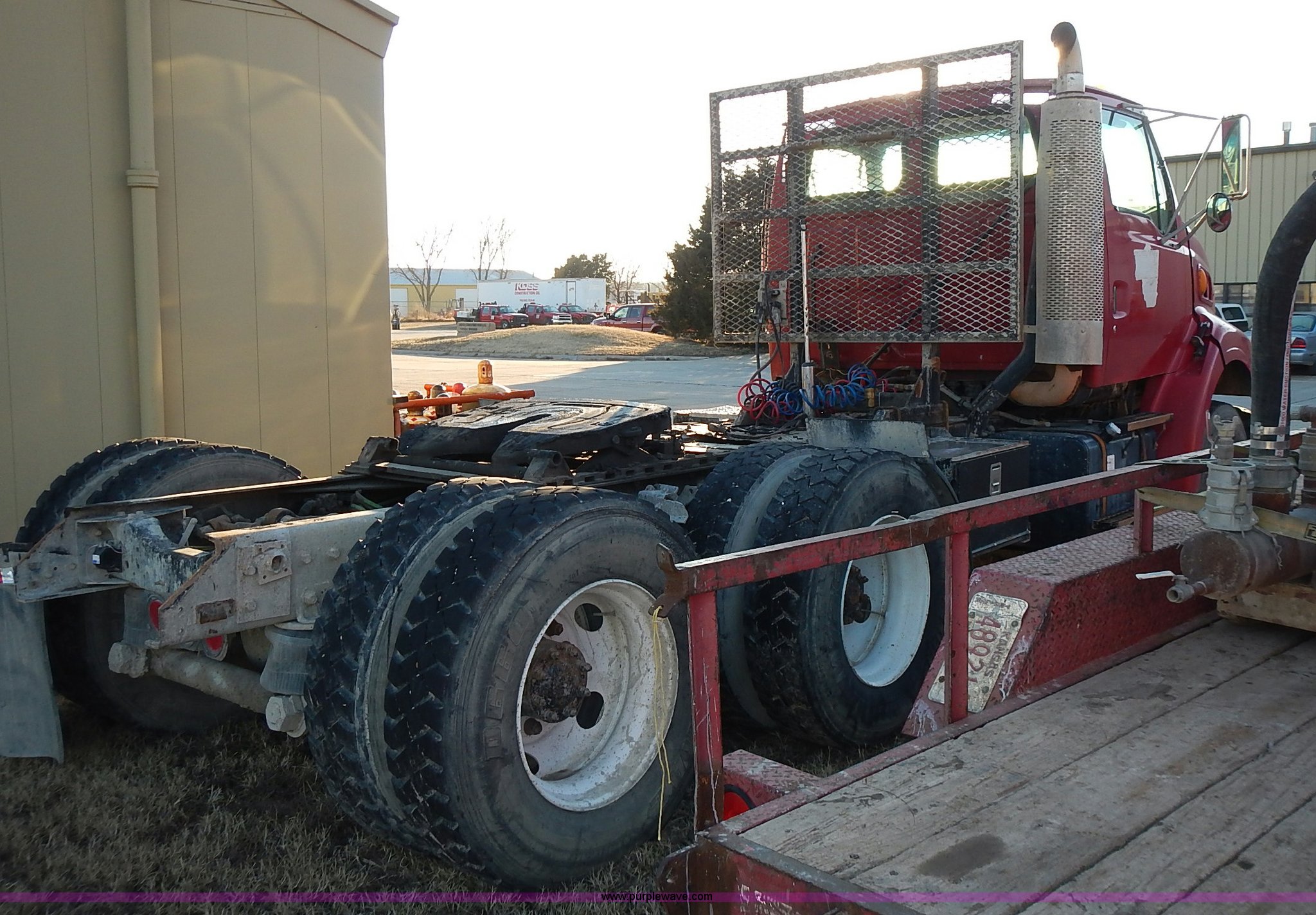 Purple Wave is selling a used Truck Tractor in Kansas. This item is a 1999 Sterling LT9500 semi truck with the following: Non-operational odometer, Approximately 290,000 miles, 5,590 hours on meter, Caterpillar C12 12.0L L6 diesel engine, Eaton Fuller Road Ranger 9 speed manual transmission, APSCO PTO, Heat, Cruise, Air suspension seat, Air ride cab, Air operated sliding fifth wheel plate, Single rear exhaust stack, Dual 75 gallon fuel tanks, Front tow hooks, Headache rack, Aluminum fenders, 4:56 gear ratio, Air suspension, Air brakes, 190" wheelbase, 11R22.5 tires, RAWR 46,000 lbs, Weak engine, Blow by, Seats damaged, One mud flap missing, Cosmetic damage to hood, Unit# 462