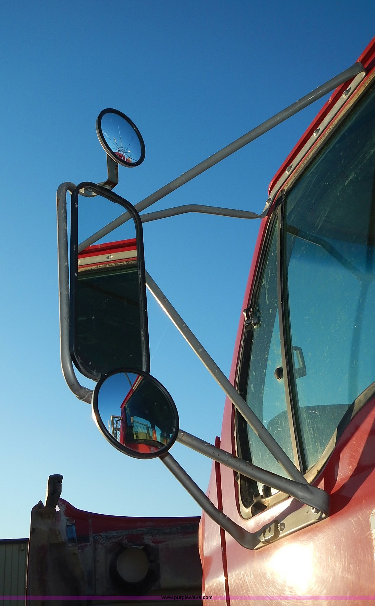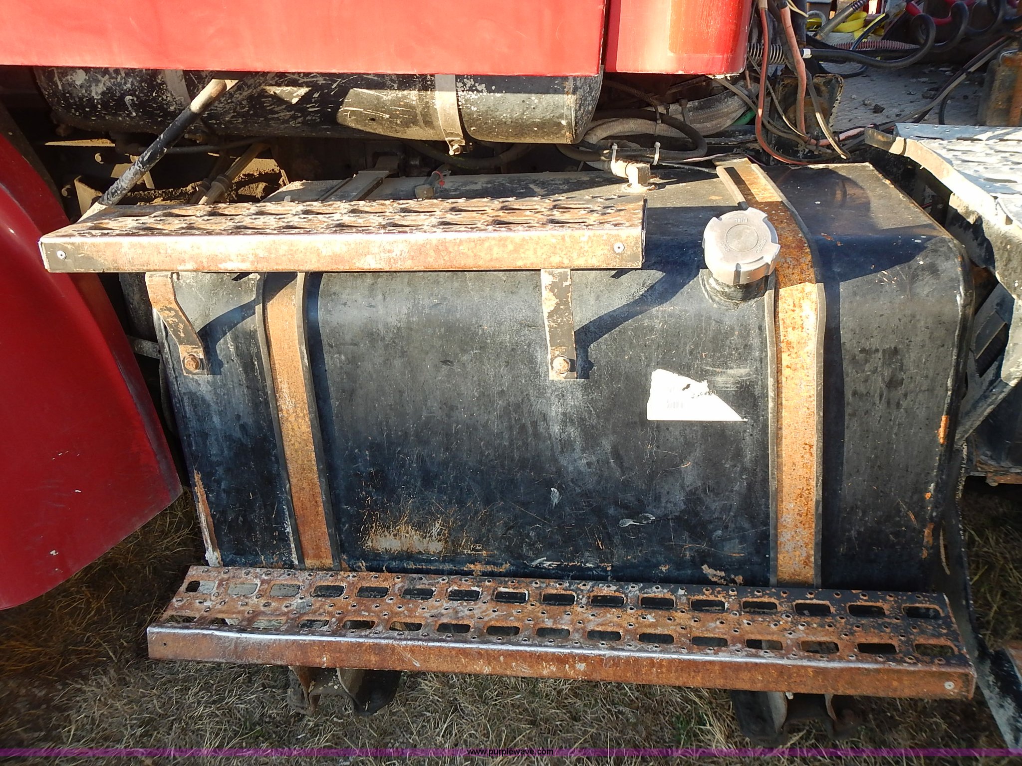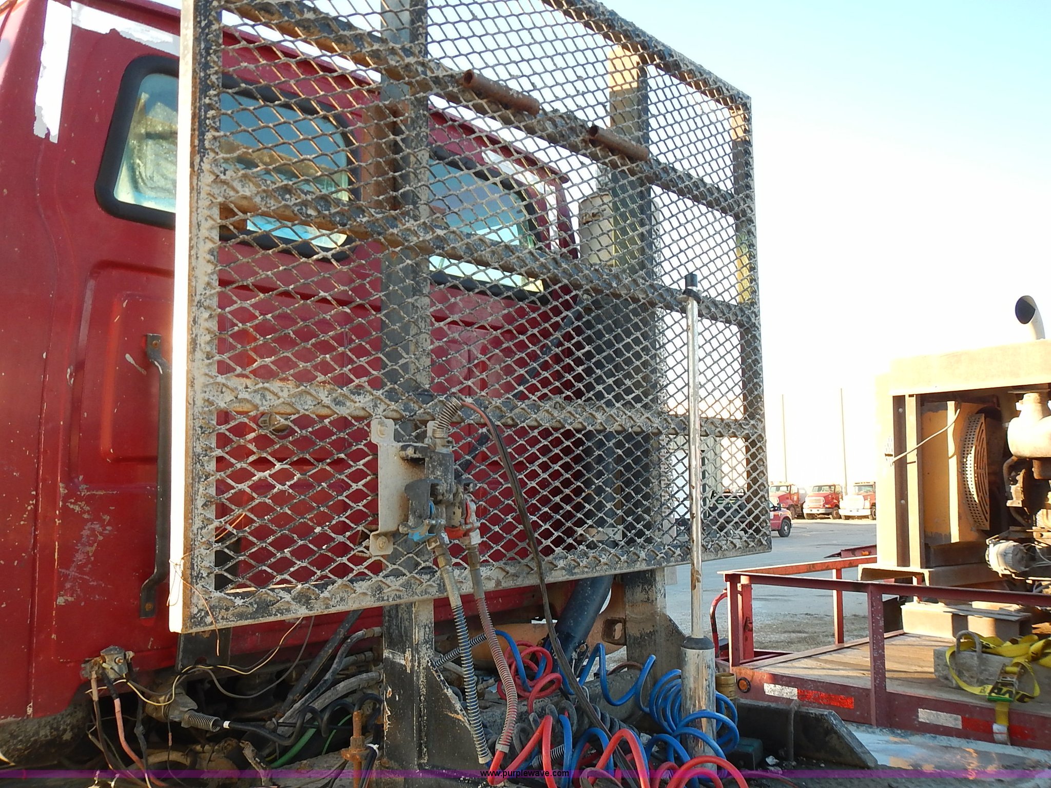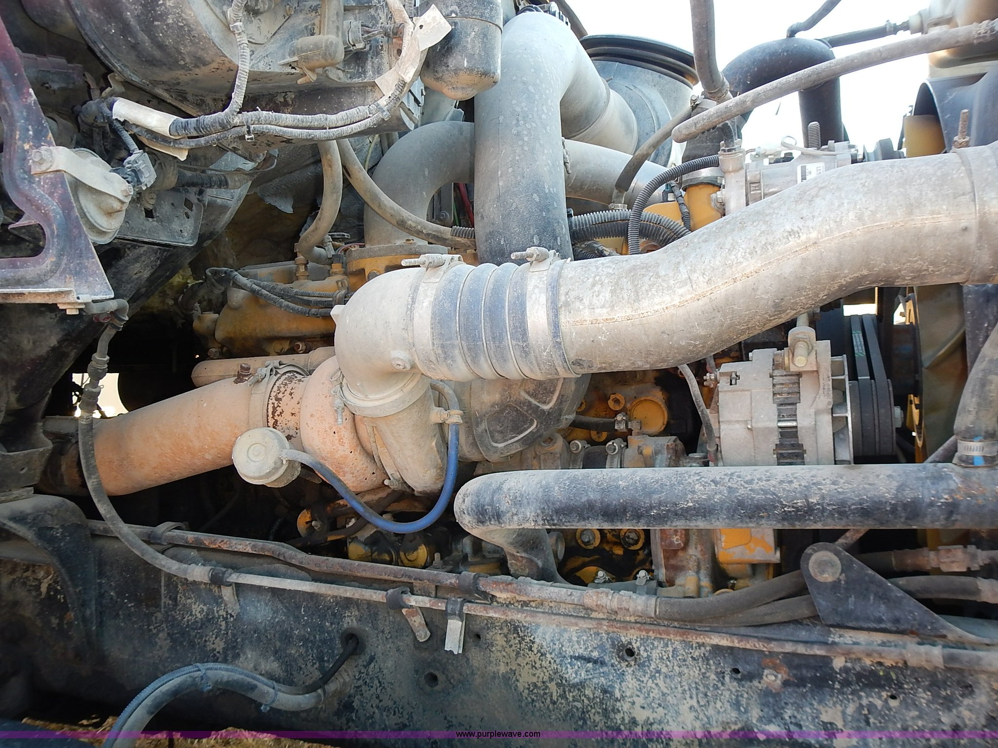 Purple Wave is selling a used Truck Tractor in Kansas. This item is a 1999 Sterling LT9500 semi truck with the following: Non-operational odometer, Approximately 290,000 miles, 5,590 hours on meter, Caterpillar C12 12.0L L6 diesel engine, Eaton Fuller Road Ranger 9 speed manual transmission, APSCO PTO, Heat, Cruise, Air suspension seat, Air ride cab, Air operated sliding fifth wheel plate, Single rear exhaust stack, Dual 75 gallon fuel tanks, Front tow hooks, Headache rack, Aluminum fenders, 4:56 gear ratio, Air suspension, Air brakes, 190" wheelbase, 11R22.5 tires, RAWR 46,000 lbs, Weak engine, Blow by, Seats damaged, One mud flap missing, Cosmetic damage to hood, Unit# 462