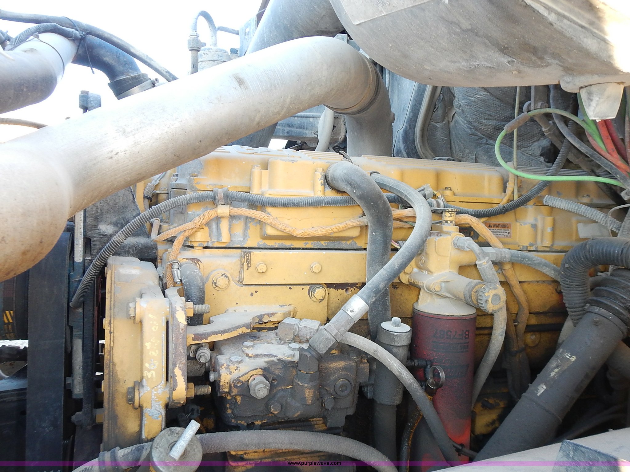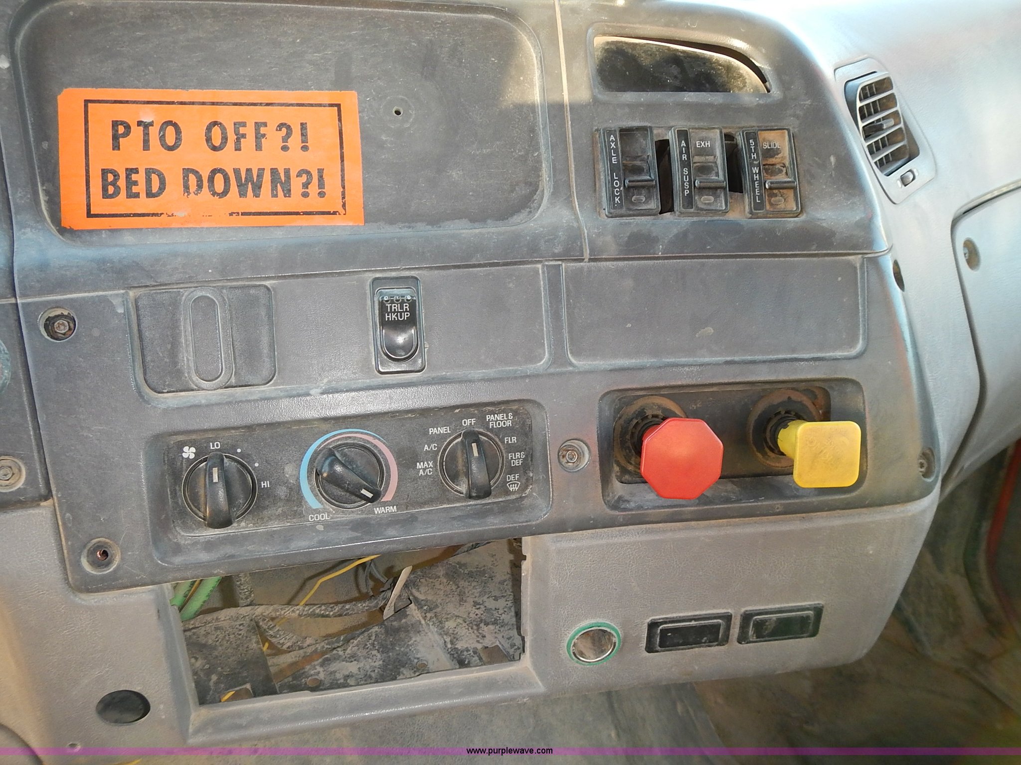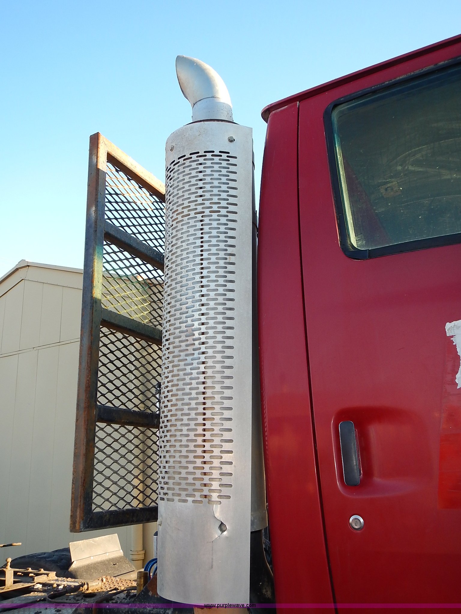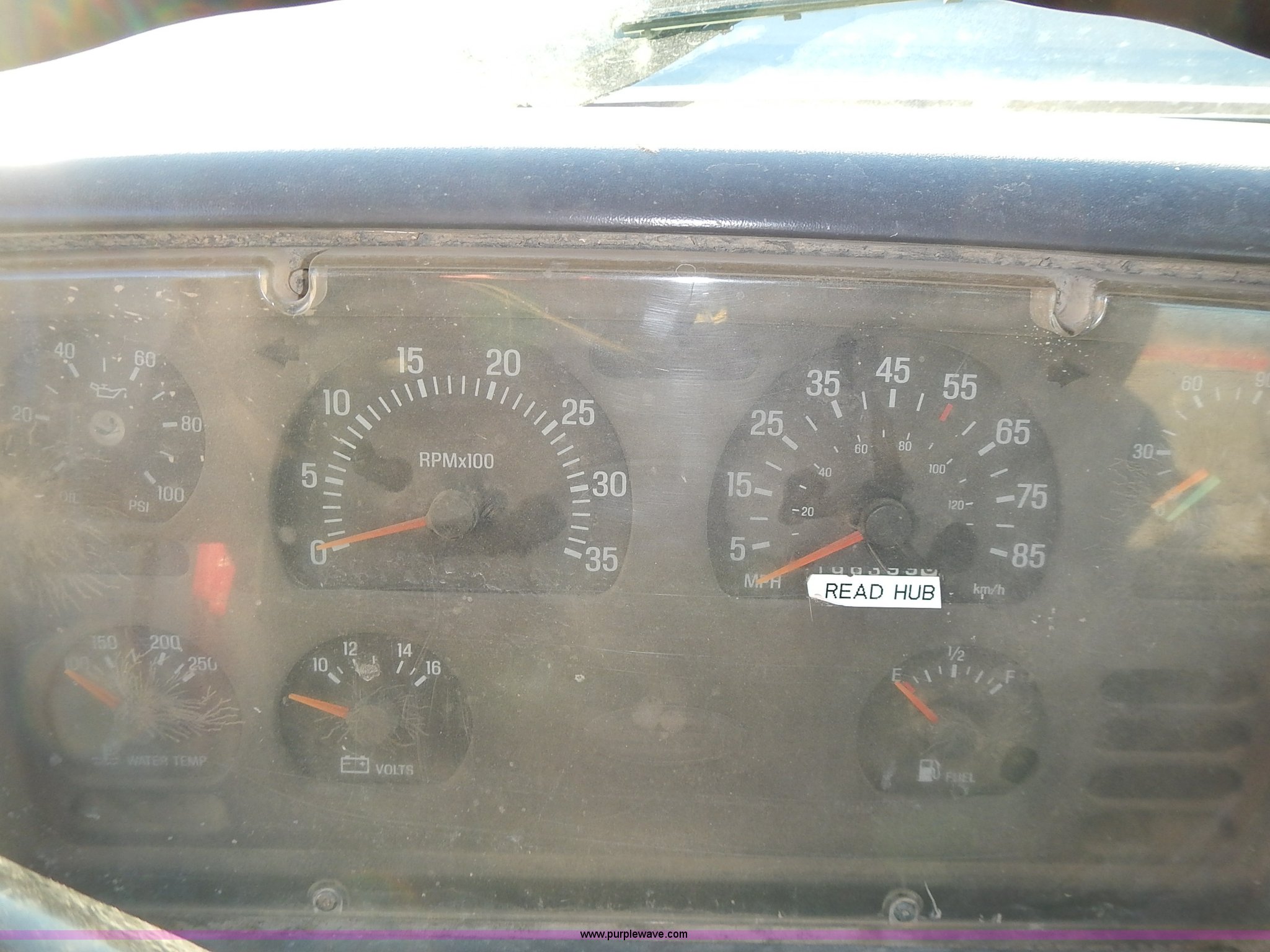 Purple Wave is selling a used Truck Tractor in Kansas. This item is a 1999 Sterling LT9500 semi truck with the following: Non-operational odometer, Approximately 290,000 miles, 5,590 hours on meter, Caterpillar C12 12.0L L6 diesel engine, Eaton Fuller Road Ranger 9 speed manual transmission, APSCO PTO, Heat, Cruise, Air suspension seat, Air ride cab, Air operated sliding fifth wheel plate, Single rear exhaust stack, Dual 75 gallon fuel tanks, Front tow hooks, Headache rack, Aluminum fenders, 4:56 gear ratio, Air suspension, Air brakes, 190" wheelbase, 11R22.5 tires, RAWR 46,000 lbs, Weak engine, Blow by, Seats damaged, One mud flap missing, Cosmetic damage to hood, Unit# 462