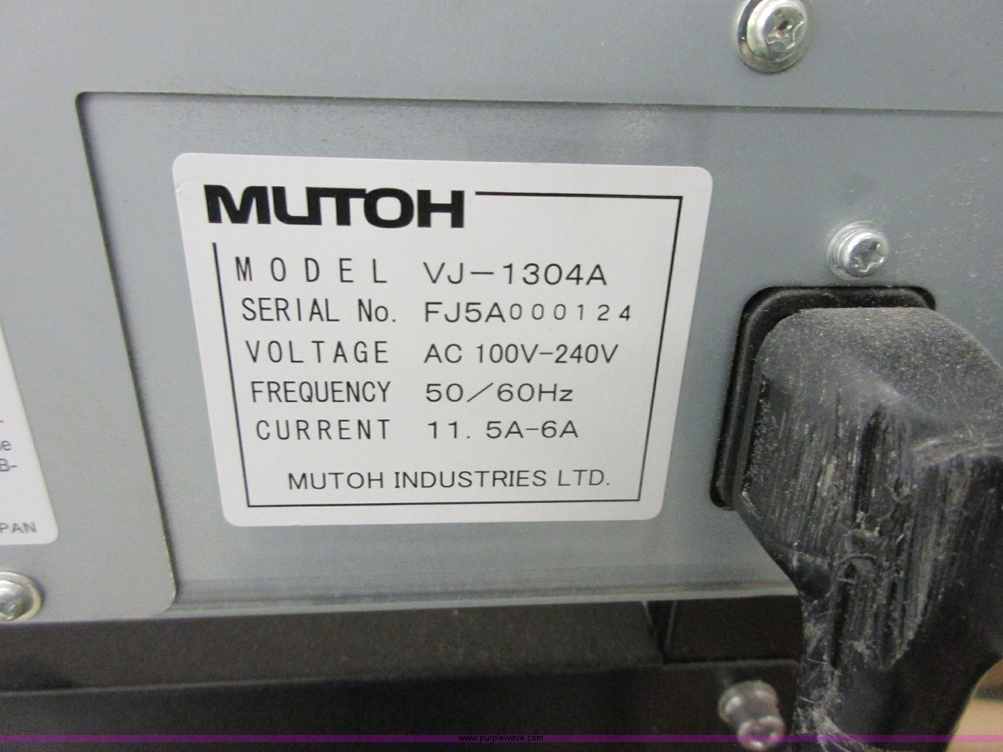 Purple Wave is selling a used Copy or Printing Machine in Kansas. This item is a Mutoh VJ-1304A valuejet printer with the following: Wide format printer, 54"W, Solvent based inkjet, Serial FJ5A000124
