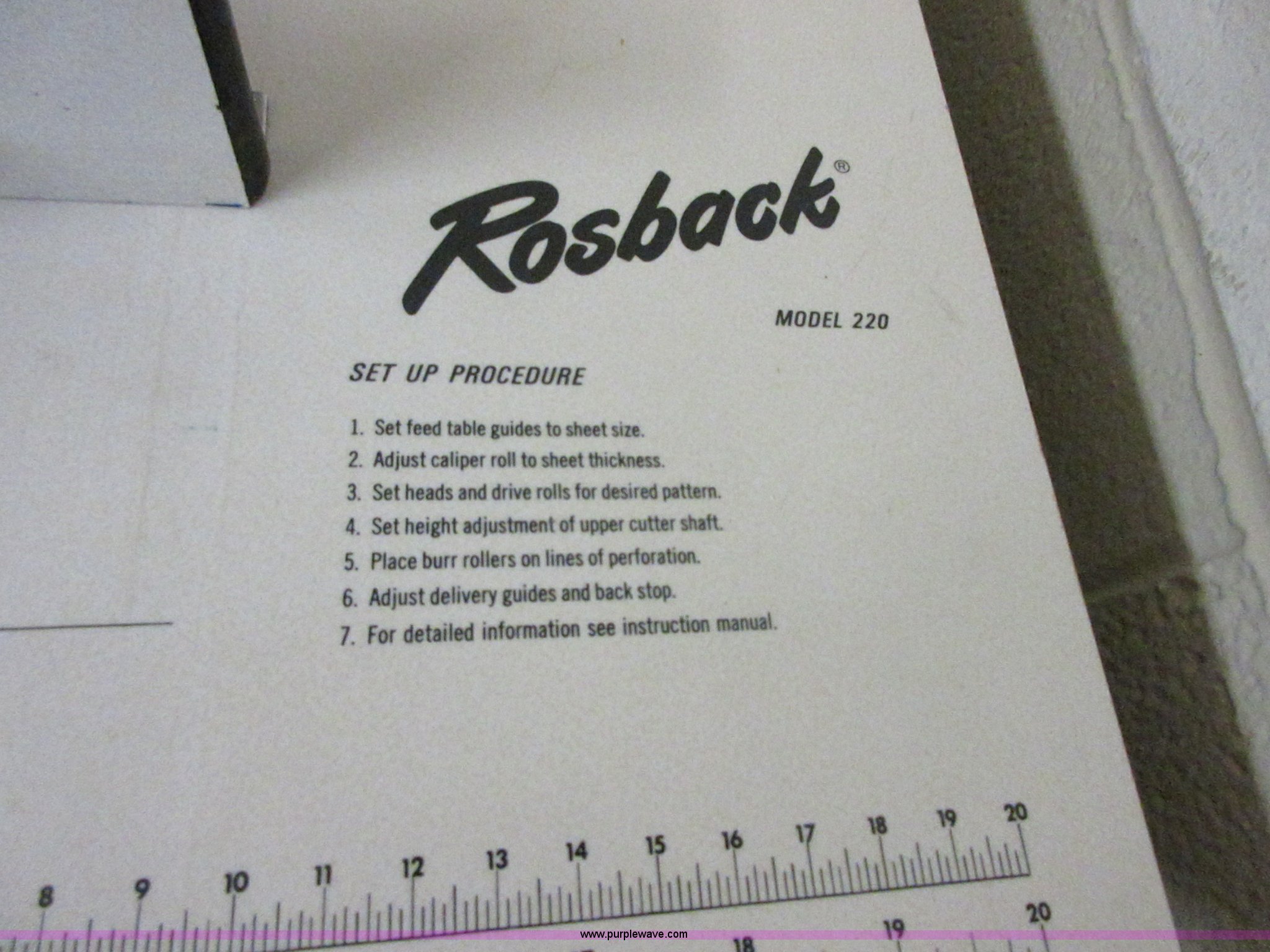 Rosback 220 paper scoring and perforating machine has sold in Pittsburg, Kansas for $797.50. Item BB9012 sold on February 2nd, 2016.