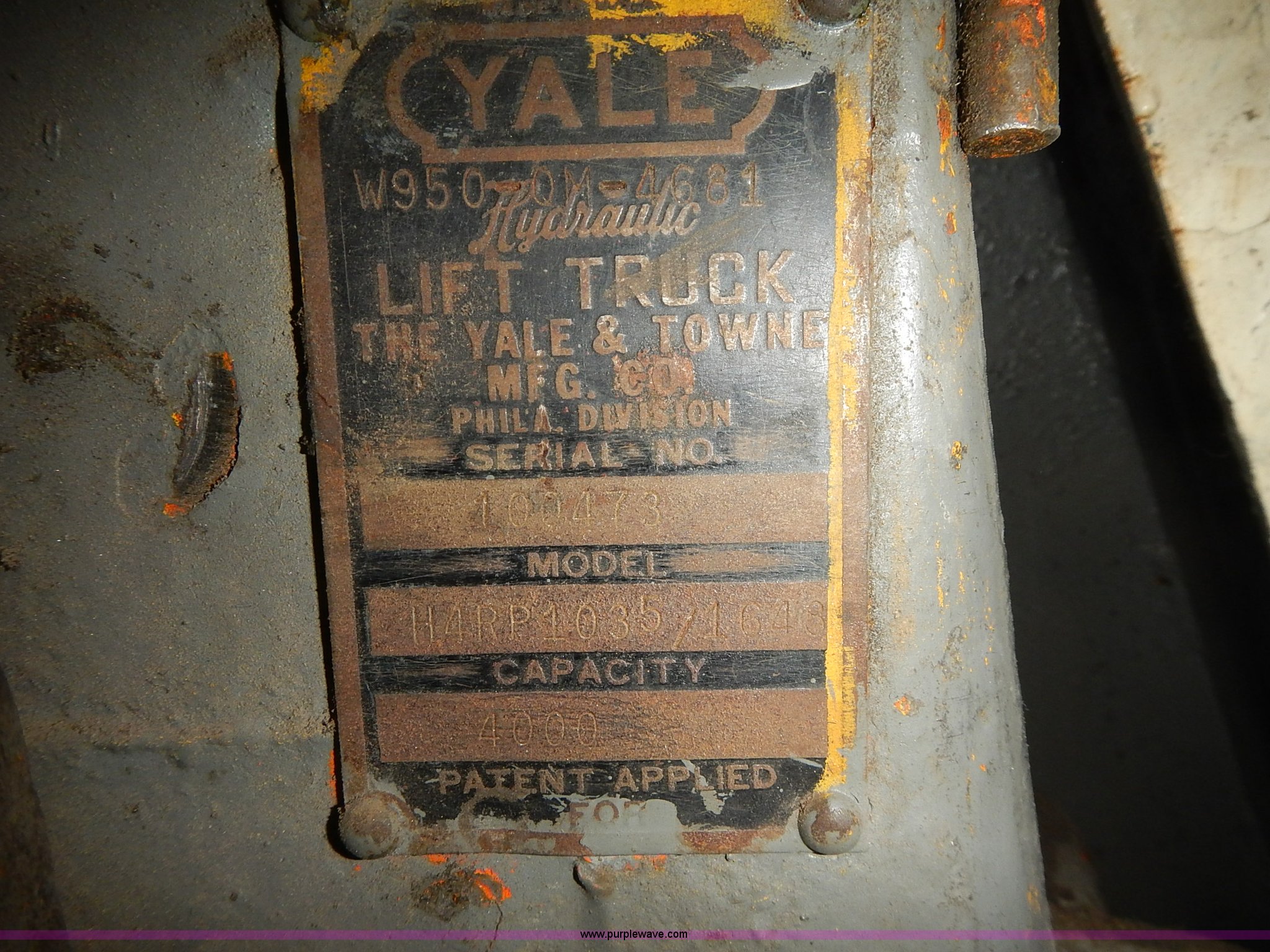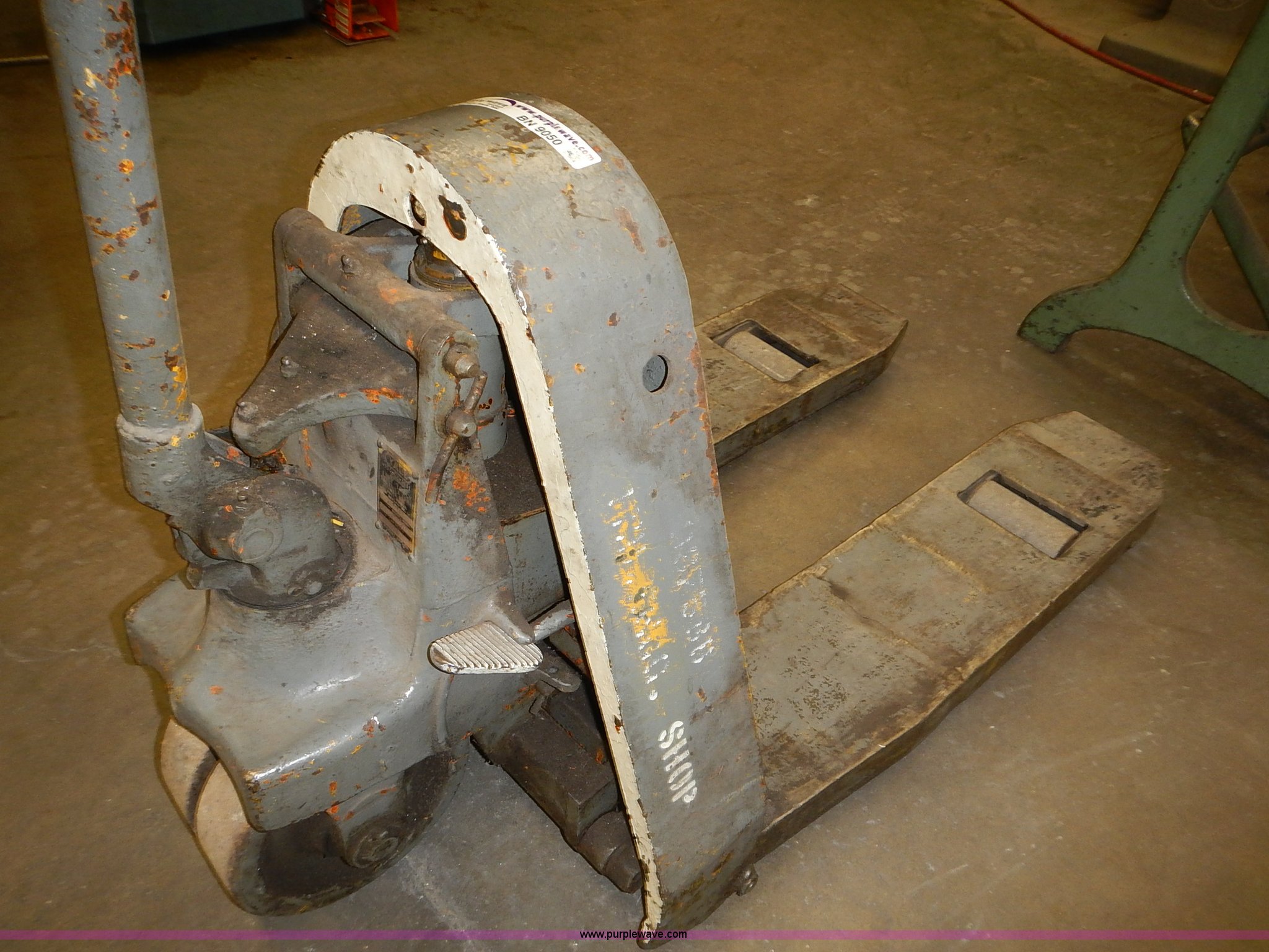 Purple Wave is selling a used Tools in Kansas. This item is a Yale pallet jack with the following: Model 00473, 4,000 lbs capacity, Serial H4RP103511648