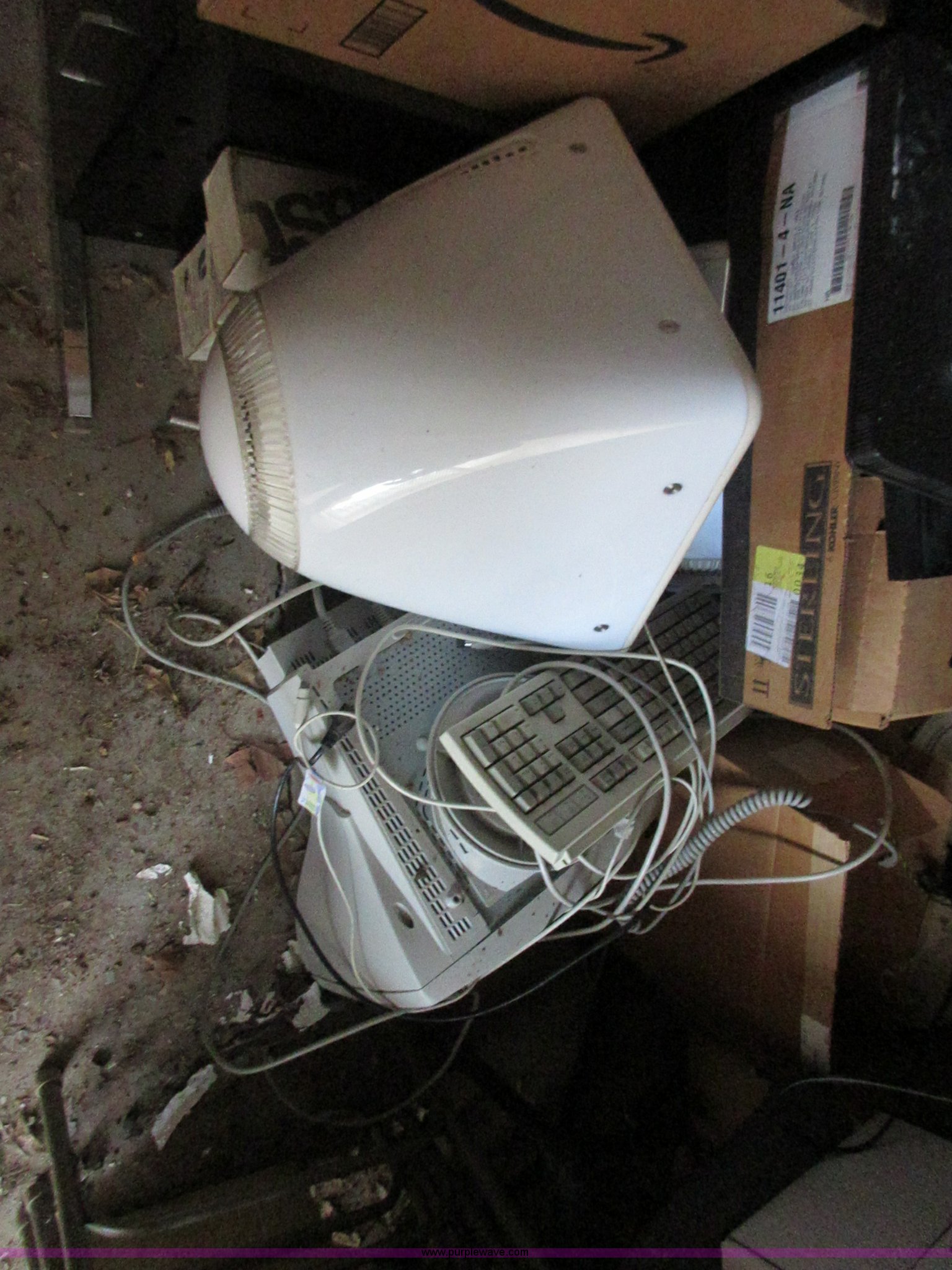 Assorted items. (2) televisions, Assorted clocks, Apple computers, Keyboards, Copy machines, Assorted monitors, Assorted CPUs, Hard drive have been removed from computers and CPUs. USD 436. 700 E Bullpap Blvd. Caney, KS 67333