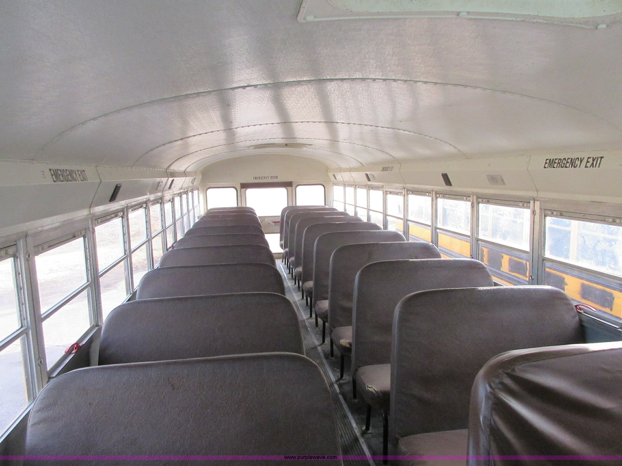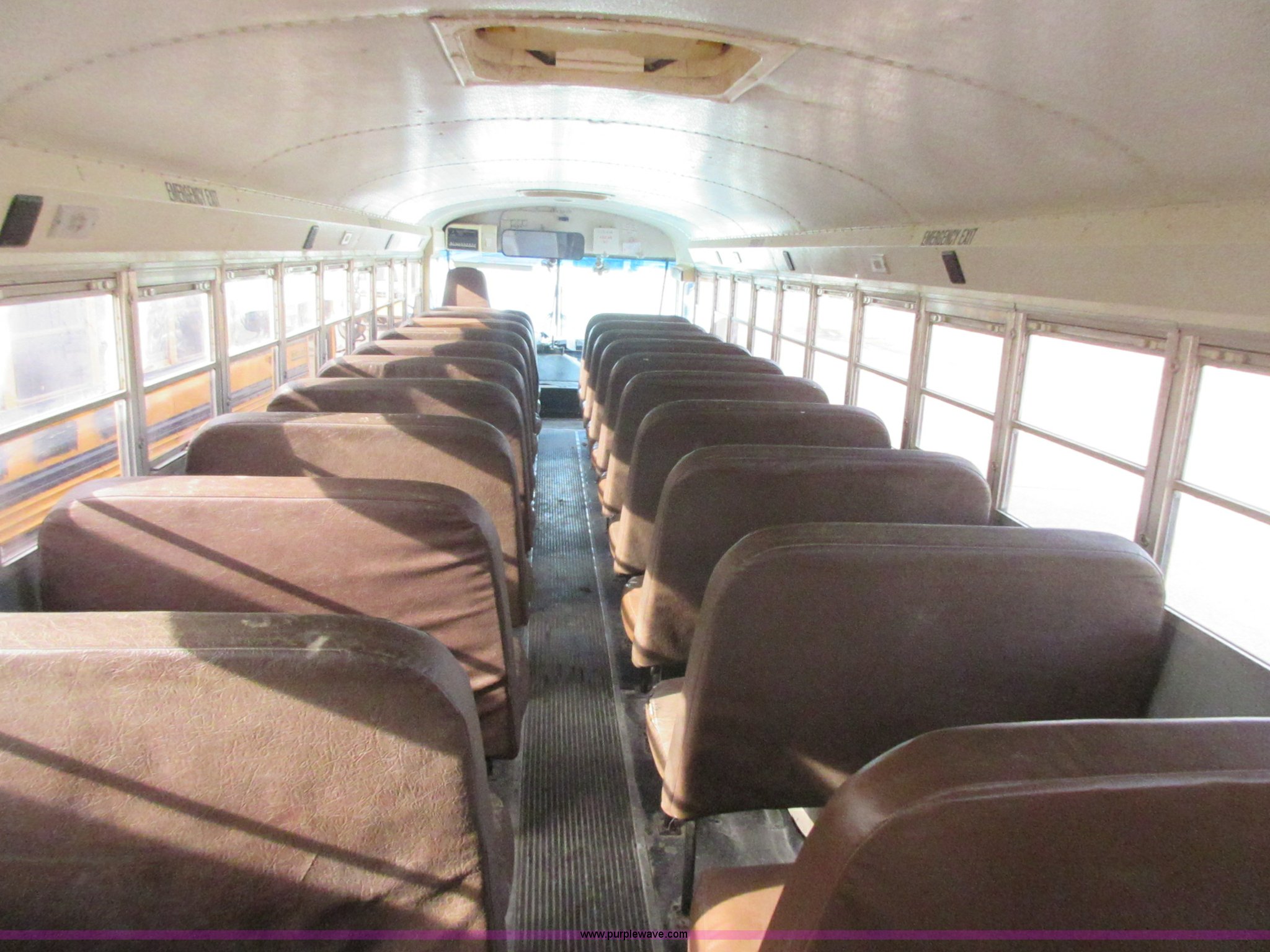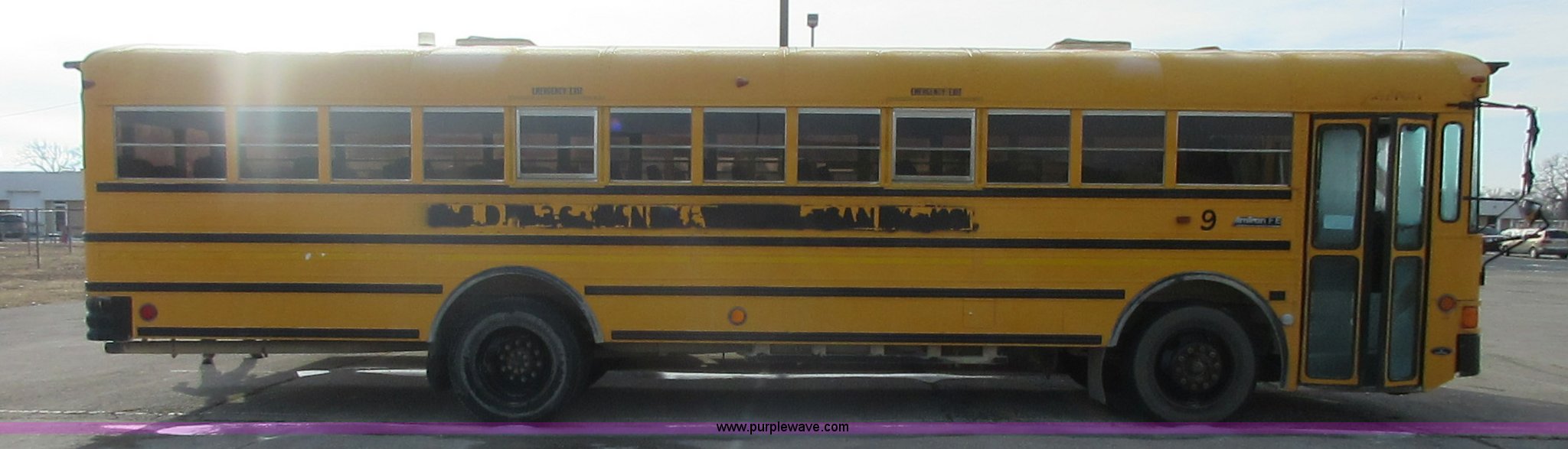 Purple Wave is selling a used Bus in Kansas. This item is a 2000 International Genesis school bus with the following: Unknown miles on odometer, International DT466 7.6L L6 turbo diesel engine, Allison automatic transmission, Heat, AM/FM, 66 passenger capacity, (2) ceiling emergency egress, Hydraulic brakes, 10R22.5 tires, GVWR 31,000 lbs, Oil leaks on engine, Transmission slips, Unit# 9