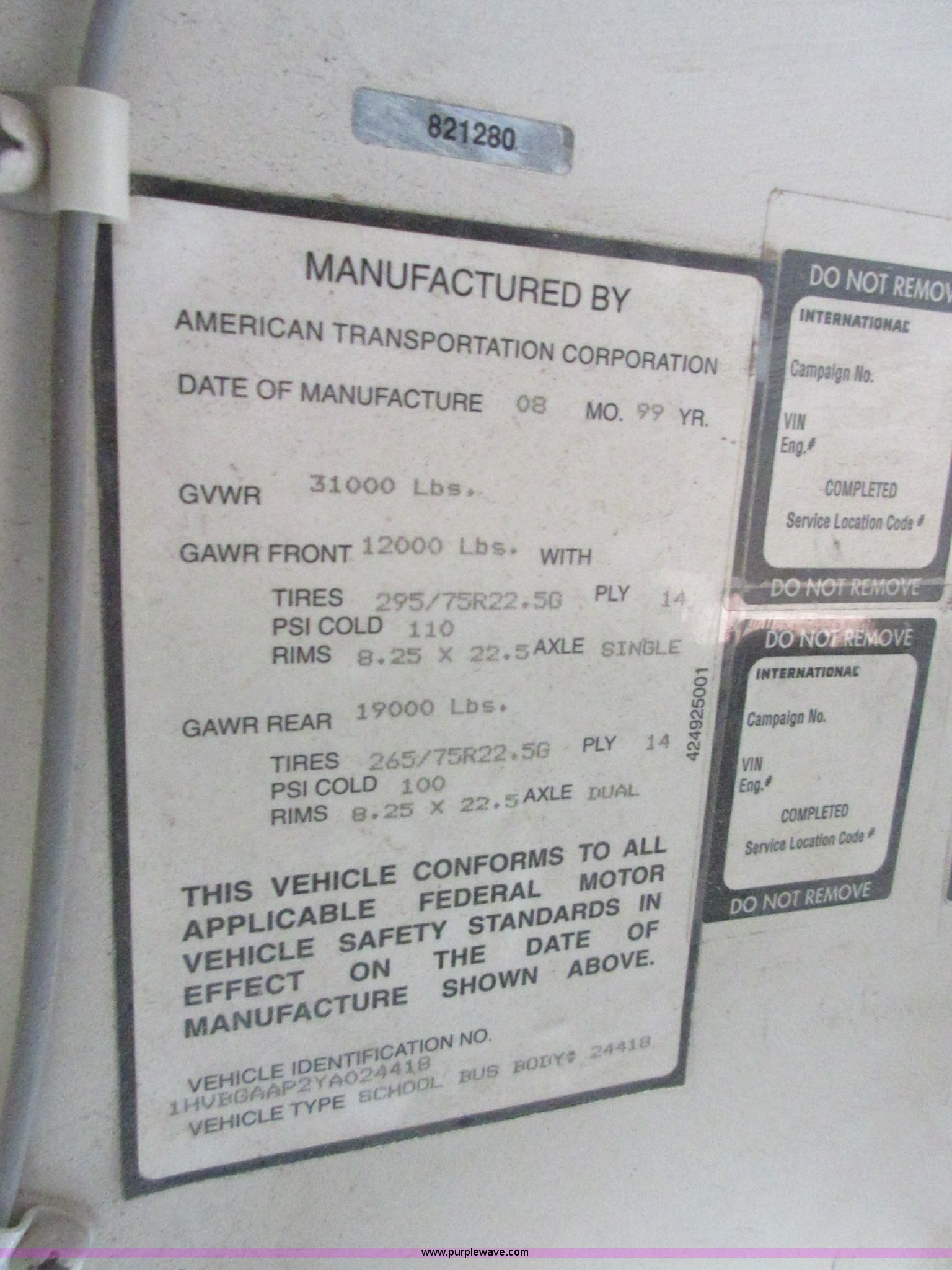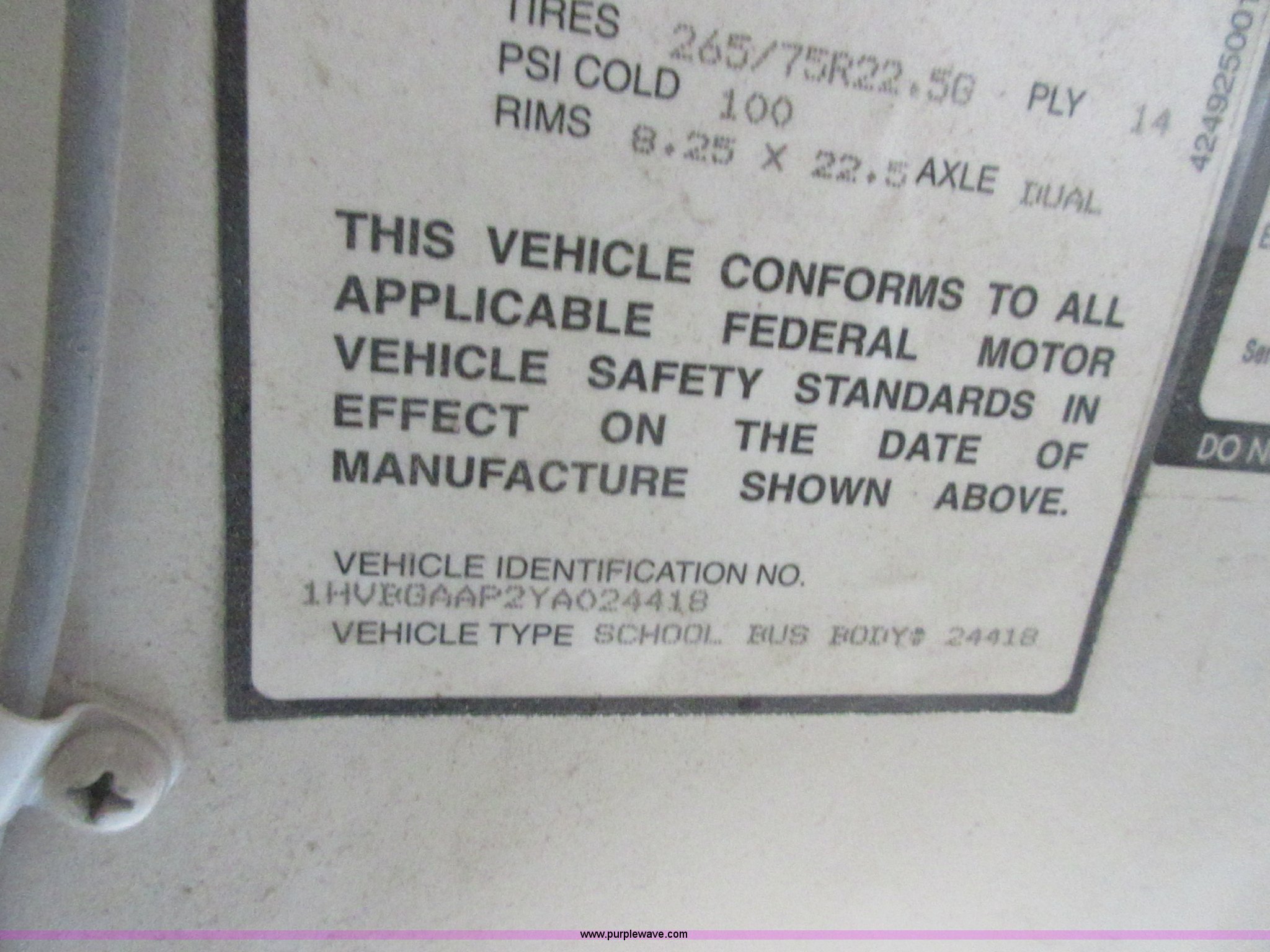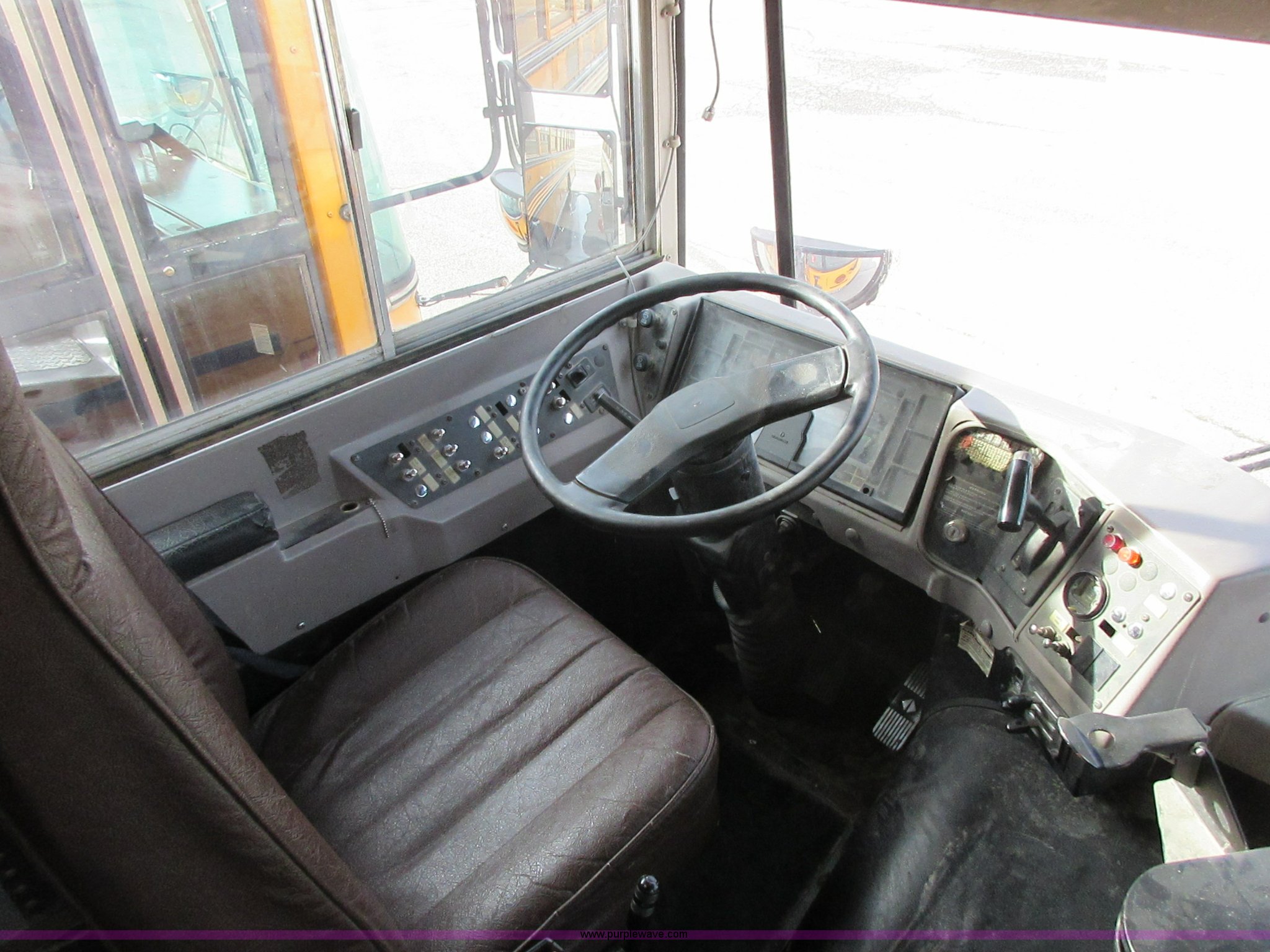 Purple Wave is selling a used Bus in Kansas. This item is a 2000 International Genesis school bus with the following: Unknown miles on odometer, International DT466 7.6L L6 turbo diesel engine, Allison automatic transmission, Heat, AM/FM, 66 passenger capacity, (2) ceiling emergency egress, Hydraulic brakes, 10R22.5 tires, GVWR 31,000 lbs, Oil leaks on engine, Transmission slips, Unit# 9