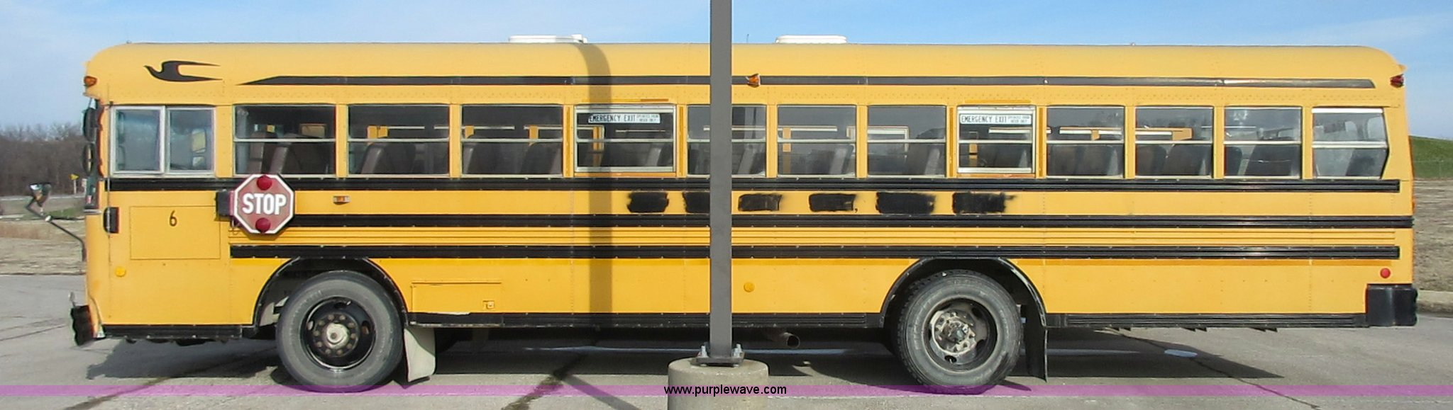 Purple Wave is selling a used Bus in Kansas. This item is a 2001 Blue Bird TC2000 school bus with the following: Unknown miles on odometer, Cummins ISB 5.9L L6 turbo diesel engine, Allison automatic transmission, Heat, Cruise, AM/FM/cassette, 71 passenger capacity, (2) ceiling emergency egress, Hydraulic brakes, 10R22.5 tires, Engine misfire, blows white smoke, Unit# 6