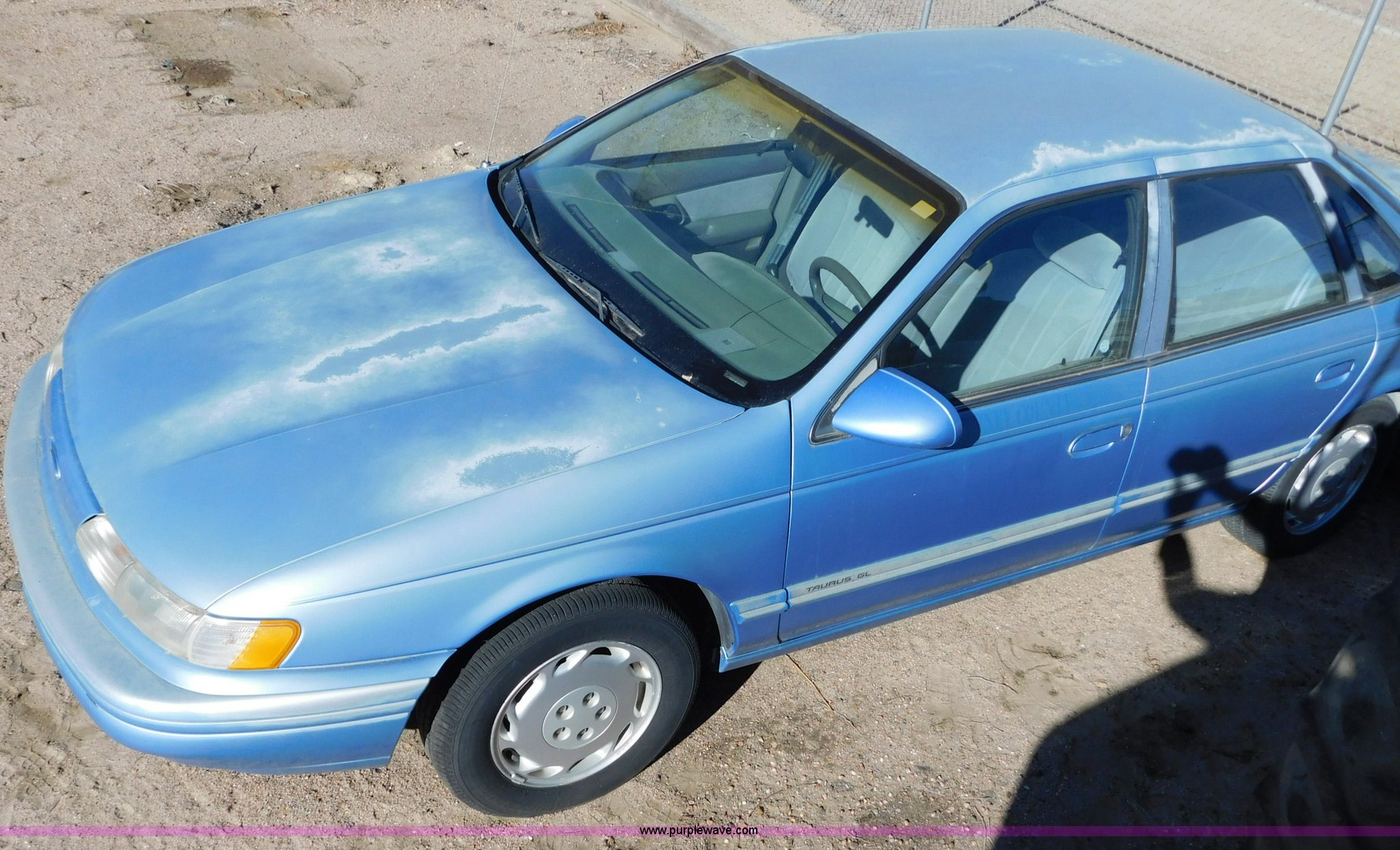 Purple Wave is selling a used Passenger Vehicle in Kansas. This item is a 1995 Ford Taurus GL with the following: 81,527 miles on odometer, 3.0L V6 OHV 12V gas engine, Automatic transmission, AC and heat, Tilt, Cruise, AM/FM/cassette, Power windows, locks, mirrors, and seats, Cloth interior, P205/65R15 tires, Battery dead, Headliner ripped, Dash cracked, Tires weathered, Dents and scratches, Paint faded