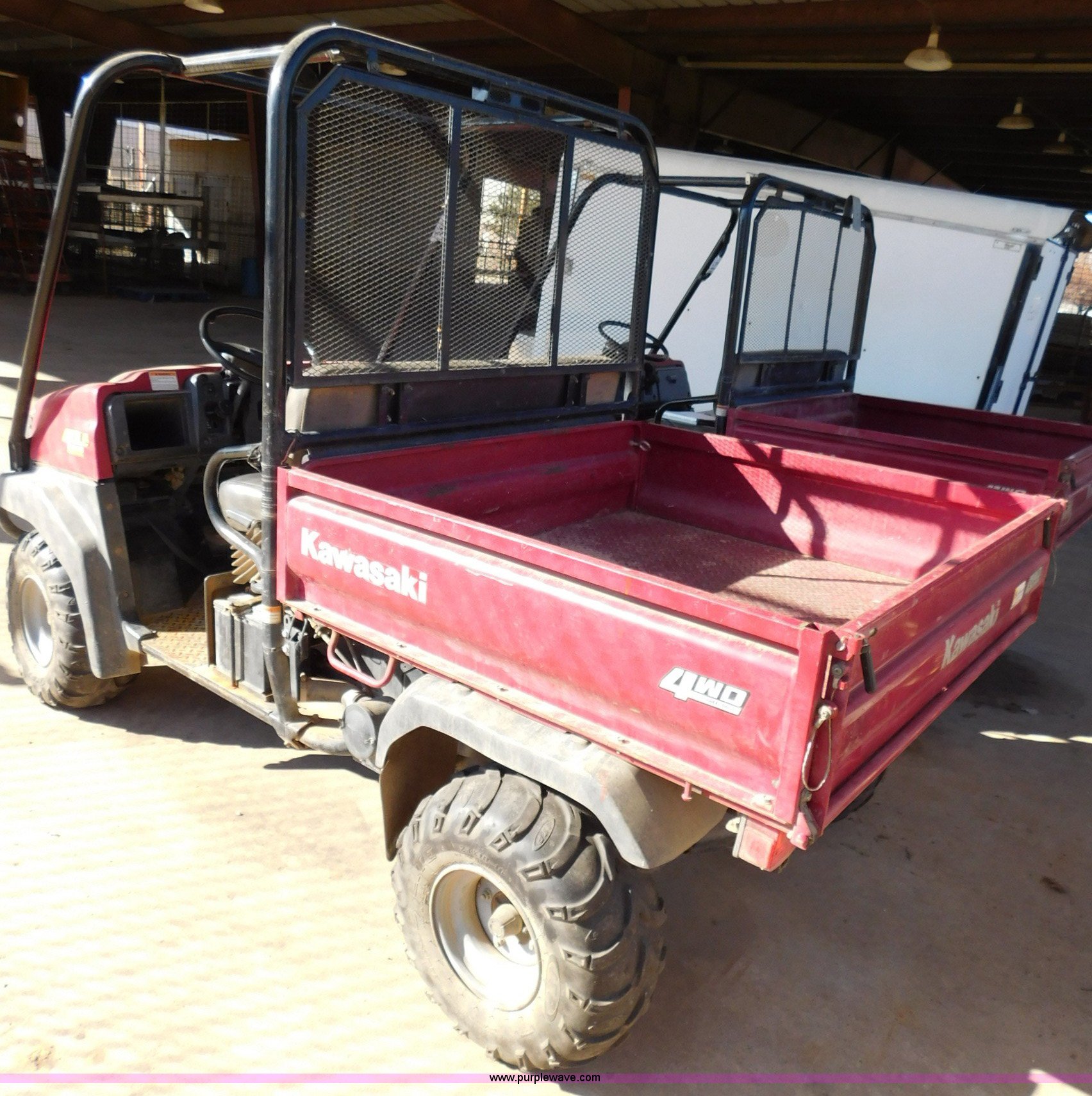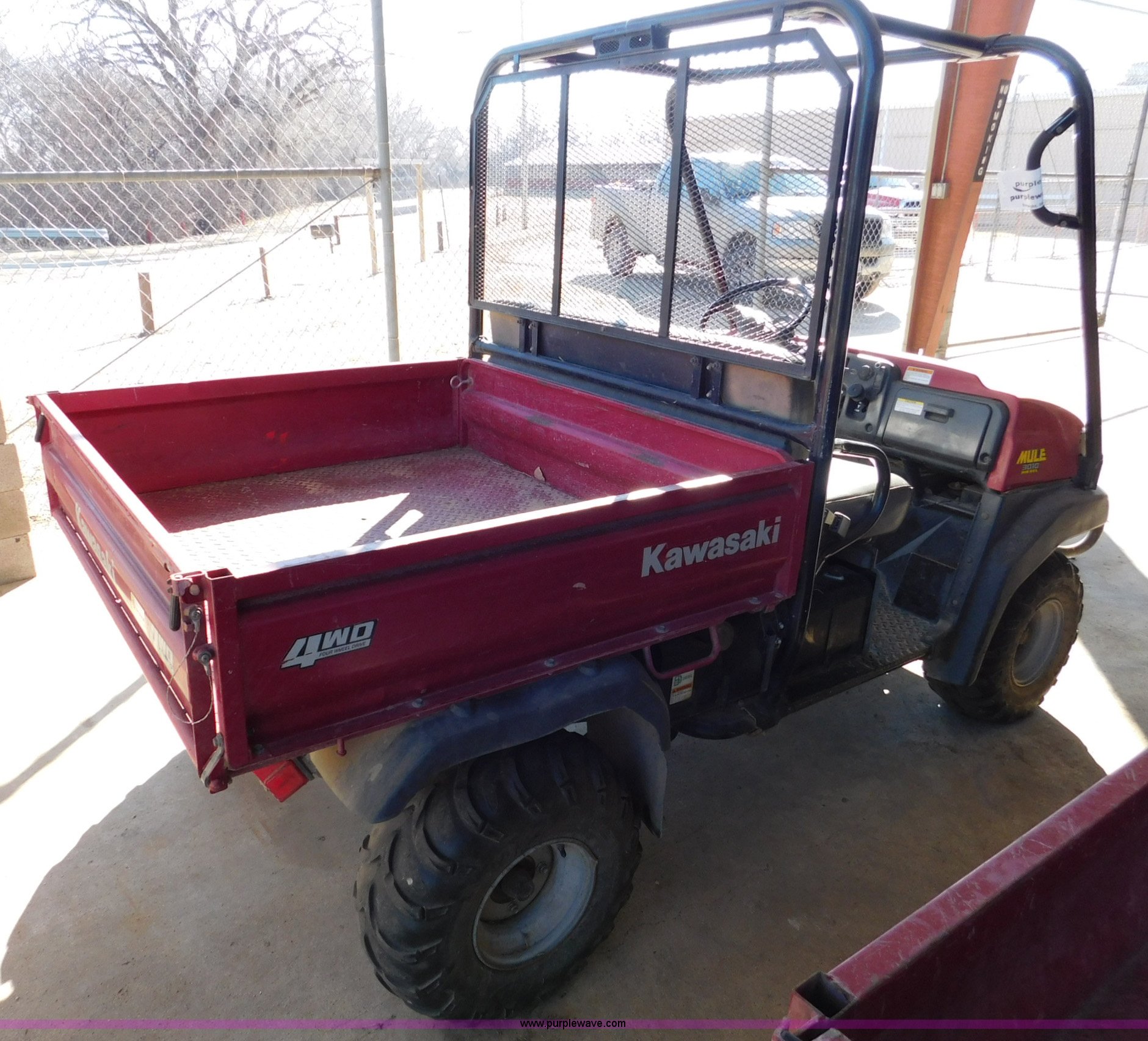 Purple Wave is selling a used Utility Vehicle in Kansas. This item is a 2005 Kawasaki Mule 3010 utility vehicle with the following: 3,692 miles on odometer, 1,028 hours on meter, Diesel engine, Four wheel drive, 3'11"L x 4.5'W bed, 23x10-10 tires, Electric dump inoperable