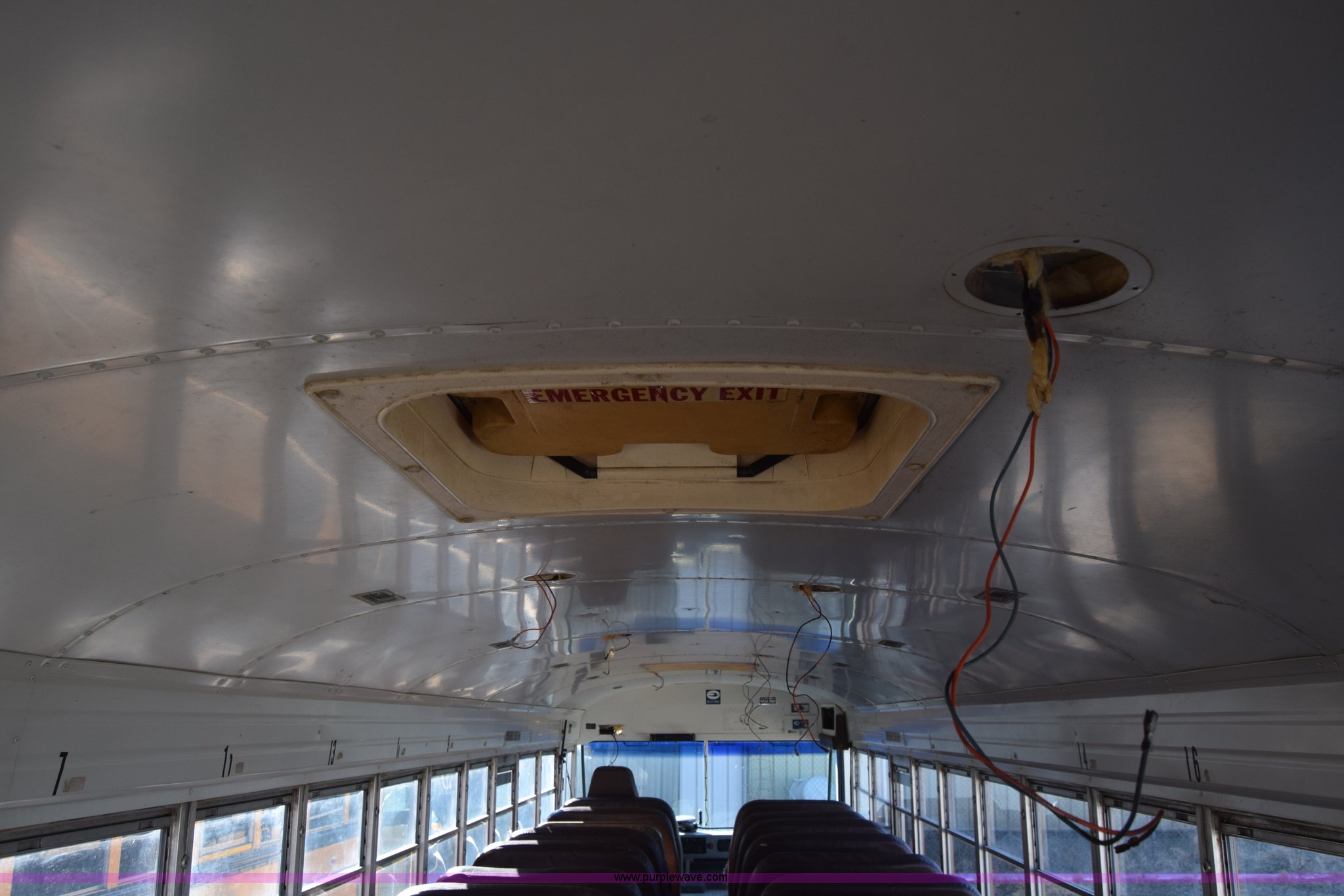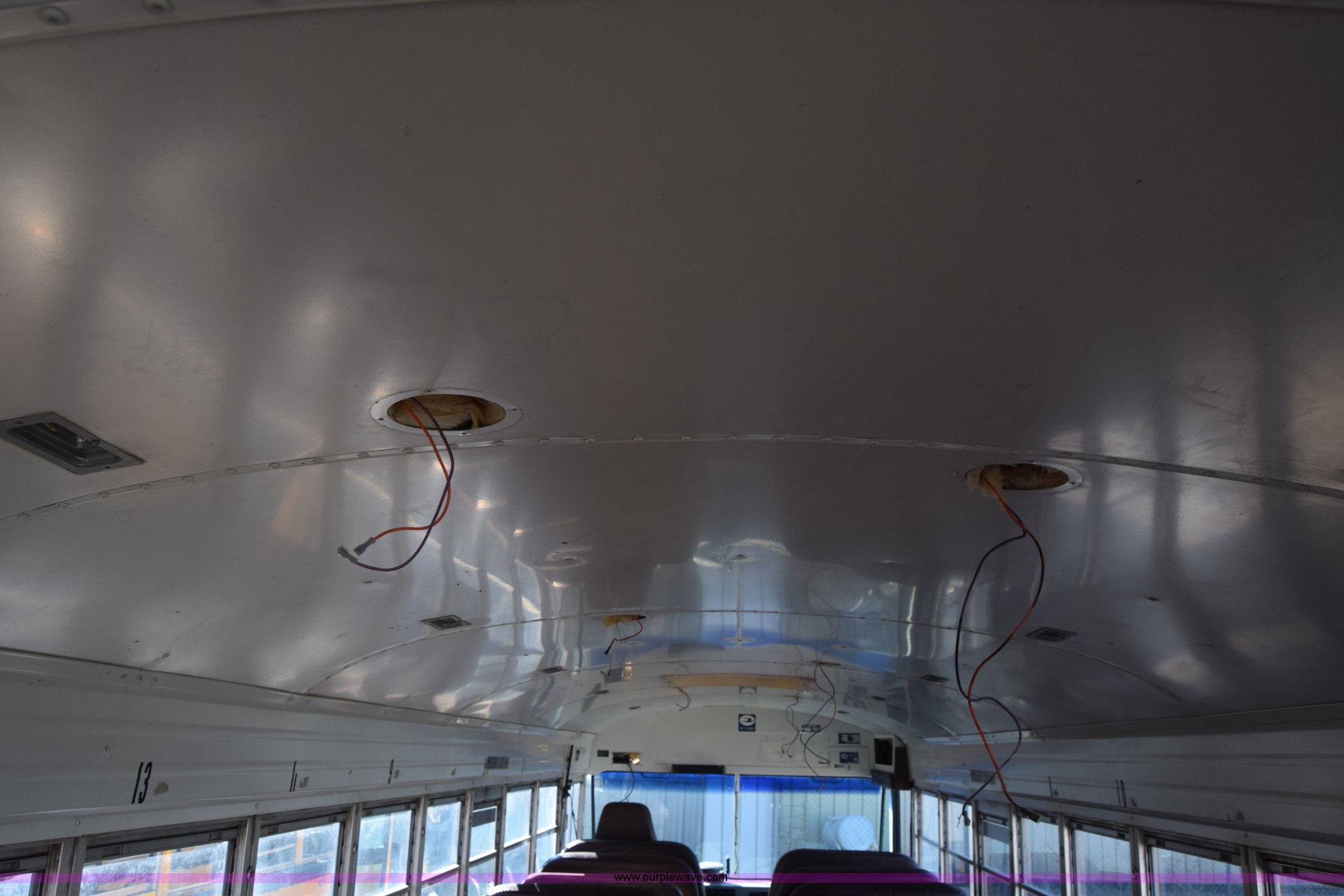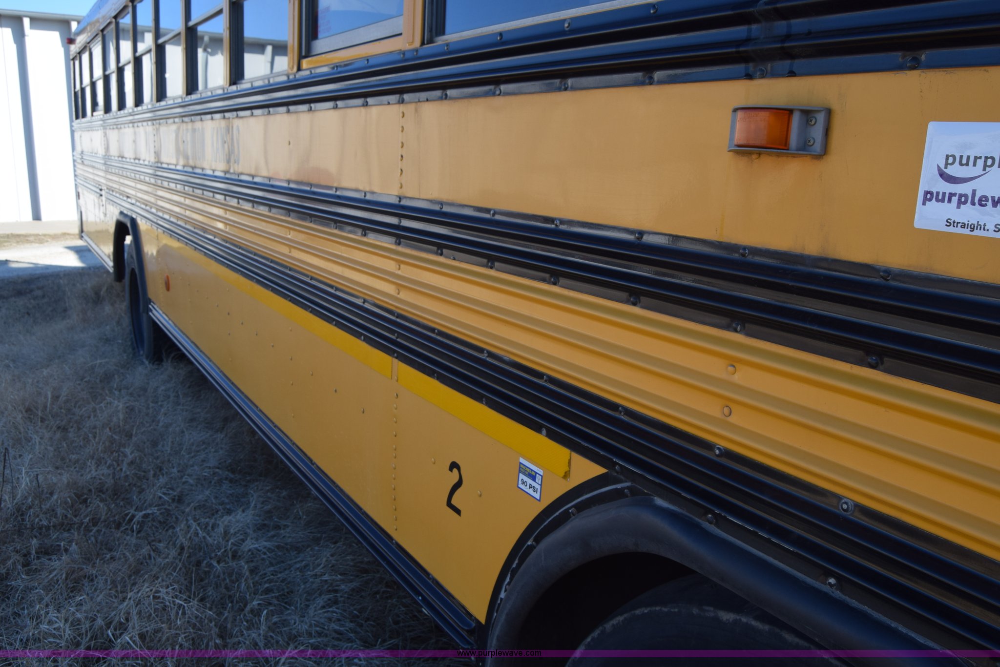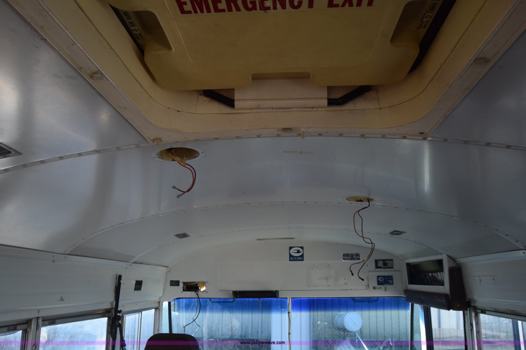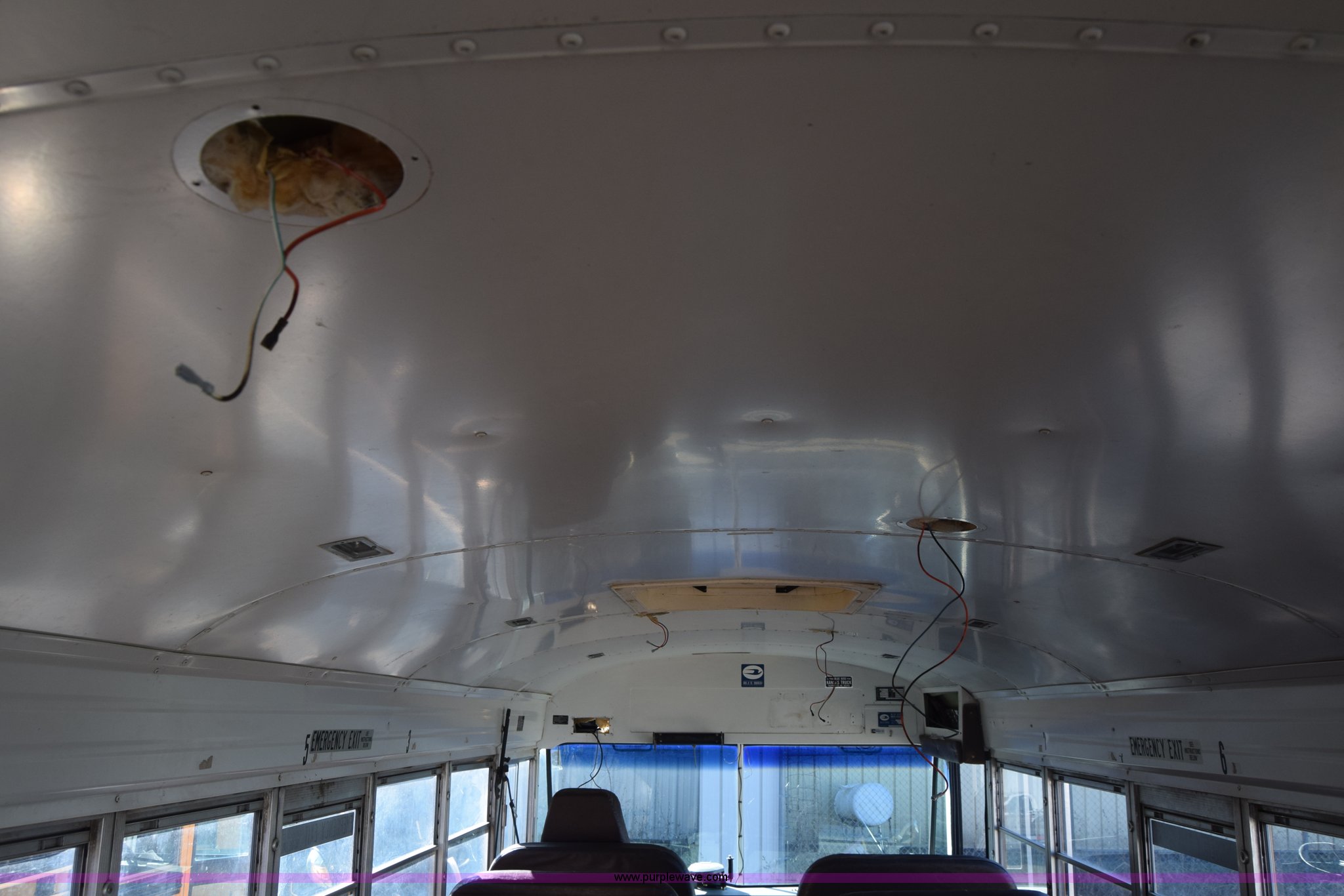 Purple Wave is selling a used Bus in Kansas. This item is a 2002 Blue Bird TC2000 school bus with the following: Unknown miles on odometer, Cummins 5.9L L6 diesel engine, Engine is blown, Automatic transmission, Heat, Cruise, 72 passenger capacity, 10R22.5 tires, GVWR 30,000 lbs, Dead battery, Seats, interior and exterior light have been removed, Dual tires have been removed, Stereo has been removed